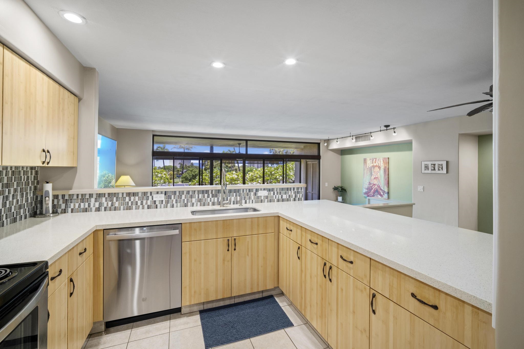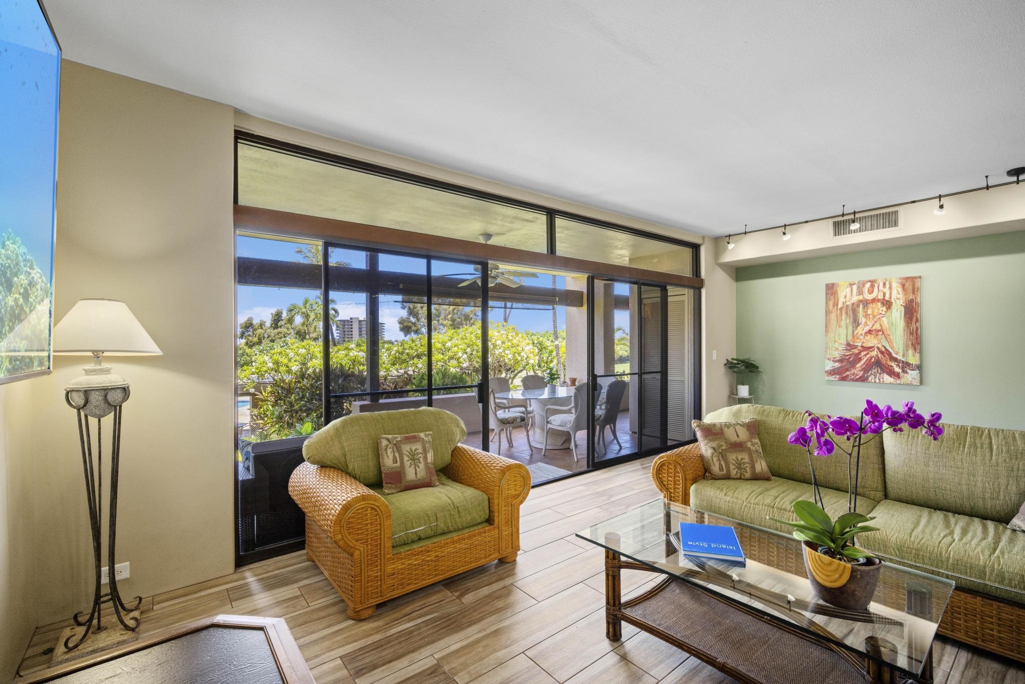 Ka'anapali Royal K101 enjoys what we feel is the most liveable floor plan in Ka'anapali, overlooking the golf course with the ocean in the distance. This spacious and unique ground floor 2 bedroom, 2 bath unit features a gourmet kitchen open to the generous living area, with ensuite bedrooms and laundry closet separated by the entry area. It has been tastefully remodeled, including a beautifully tiled master bath in 2022. The extra large covered lanai includes a sink and portable BBQ-perfect for entertaining, and also offering quick access to the pool area. You'll love the close proximity to world famous Ka’anapali Beach and 2 golf courses, as well as the fine dining restaurants and shops at Whalers Village. On site amenities include large storage closet next to the entry door, central AC, pool, spa, BBQ with covered outdoor dining area, and tennis courts. Though currently approved for short term rentals, this unit has been lovingly occupied by the owners. Call your favorite agent soon for a showing and recent County info regarding short term rentals.