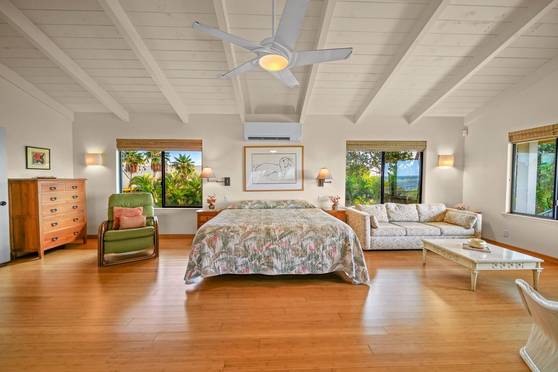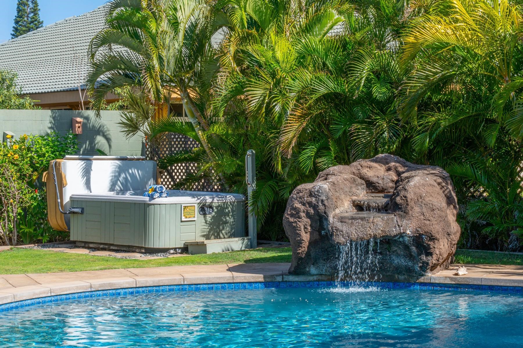 Set at the end of a quiet cul-de-sac, 1821 Halama Street enjoys a truly special position overlooking the expansive 36 acre Kalama Park, offering sweeping ocean views, whale watching in season, and unforgettable sunsets. The sense of openness created by the park’s vast green space is rare in Kihei and provides a front row seat to one of South Maui’s most vibrant outdoor settings. The main residence offers 4 bedrooms, 3 bathrooms, and 2,783 square feet of living space, complemented by a detached 2 bedroom, 2 bathroom ohana with 568 square feet, ideal for extended family, guests, or flexible rental options. Split air conditioning units are thoughtfully placed throughout the home for year round comfort, and a photovoltaic solar system supports efficient, sustainable living. Upstairs features vaulted ceilings, a spacious game room with pool table, and 788 square feet of lanai space designed to maximize views and seamless indoor outdoor living. Off the kitchen, a covered lanai opens to a very private backyard with ample room for entertaining, activities, a hot tub, and an outdoor shower. The recently resurfaced pool and waterfall are surrounded by fully irrigated and professionally landscaped grounds with lighting, creating a welcoming retreat day or night. Multiple storage rooms, a dedicated laundry room, and a surfboard storage area provide space for all your beach and recreational gear. Flooring throughout includes a mix of tile, oak, and bamboo, paired with Corian countertops for a clean and functional aesthetic. From coffee at sunrise to sunset gatherings, surf checks, or unwinding after a full Maui day, this property offers countless places to enjoy ocean views and island living. Bordering the Kihei Public Library and within easy walking distance to coffee shops, the cinema, grocery stores, beaches, and shops, this property offers a unique mix of lifestyle, location, and versatility in the heart of South Maui.