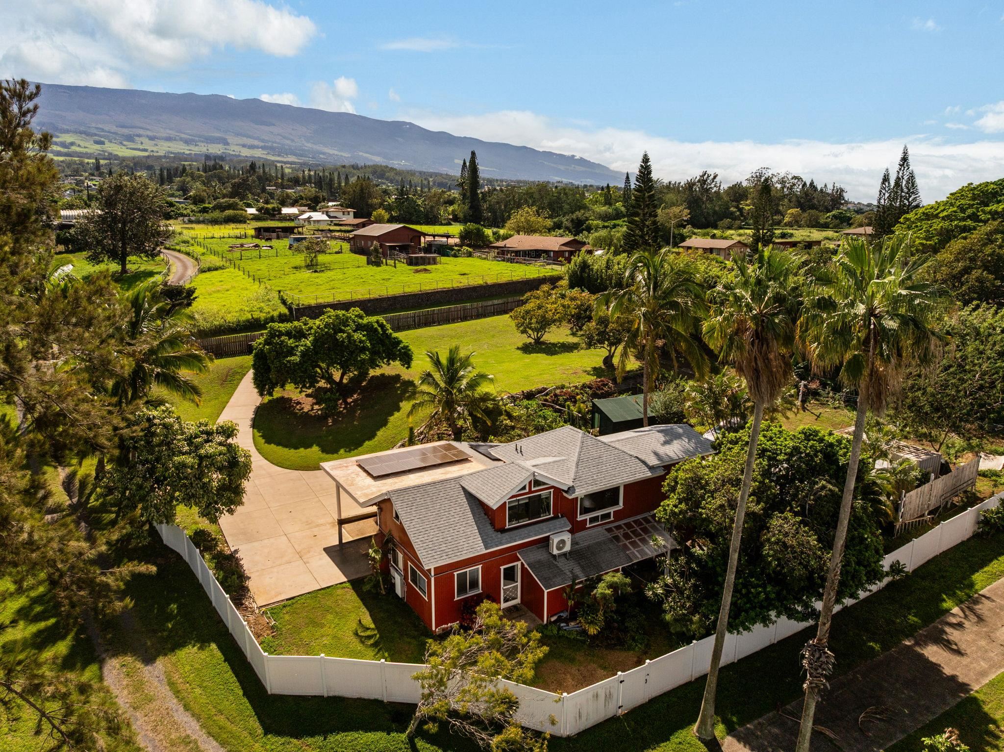 Multi-unit flexible floor plan with up to 4 bedrooms/2 bathrooms and a studio. Per CPR developer report, upstairs living area is 782 sq. ft. (possible 2 bd/1 ba) and downstairs is a 670 sq. ft. shop with bathroom (possible 2bd /1 ba) plus a studio and a 872 sq. ft carport. All located on a gorgeous .70 acres. This highly coveted neighborhood provides quick access to Makawao and Pukalani while still enjoying the "country life" with majestic views of Haleakala and the idlyllic North Shore. This is a residential CPR. Owner currently lives upstairs and rents out both the downstairs and studio for $2800/$1800. That's $55,200 a year! The owner has constant projects and upgrades going on including new Solar Panels with a Tesla Backup Battery that is net metered. Please see Assoc. Docs for FULL LIST. Whether looking for an investment property or something for a large family, this is a MUST SEE! Call and schedule your showing today!