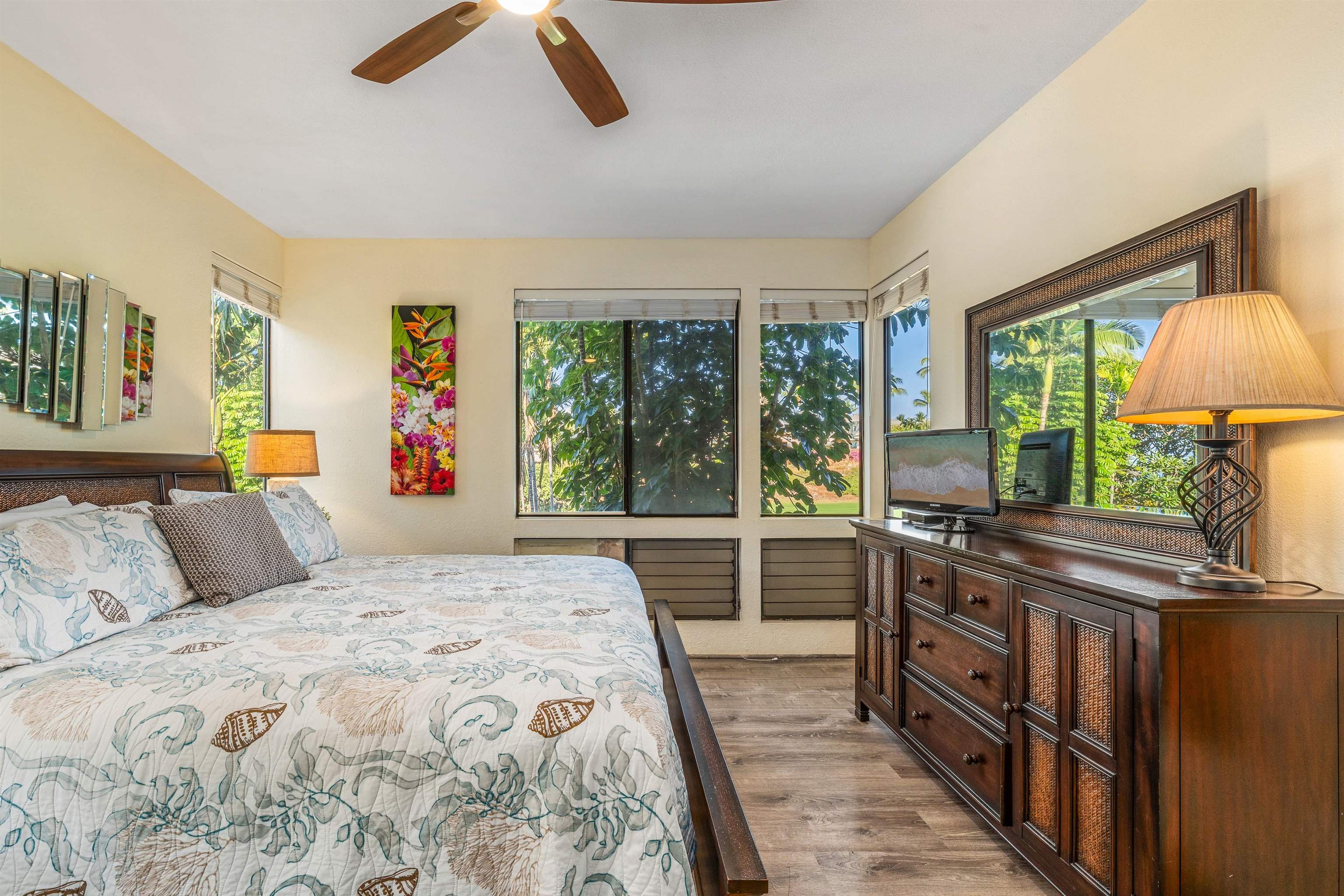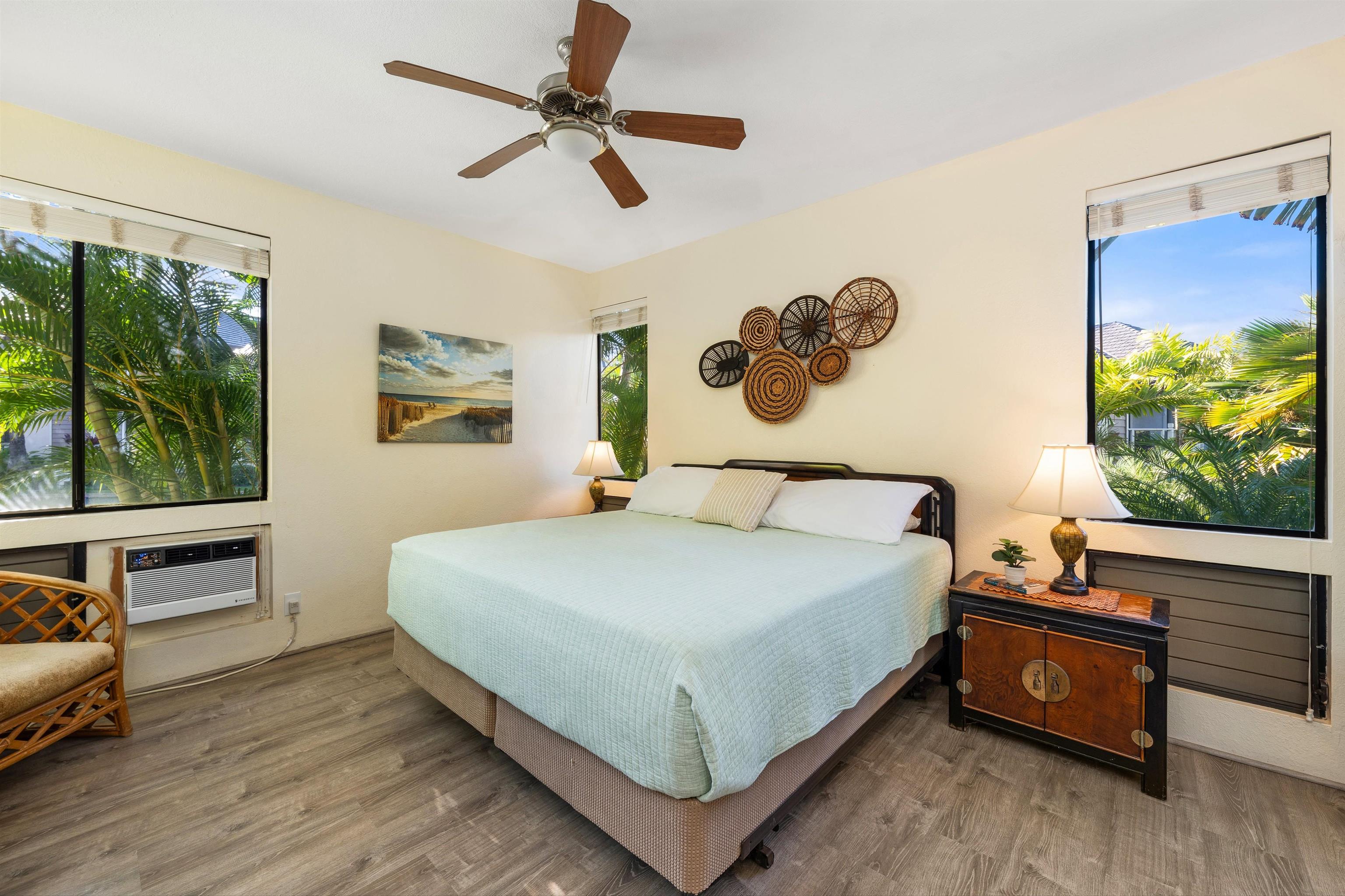 Grand Champions Unit 65 offers the perfect blend of comfort, views, and Wailea lifestyle. This updated 2 bedroom, 2 bathroom corner unit spans 1,056 square feet and overlooks the 7th fairway of the Wailea Blue Golf Course, with lush greenery and golf course views from nearly every window. The open kitchen and living area create an inviting flow, featuring granite countertops and an eat in kitchen ideal for everyday living or entertaining. As a corner unit, the home enjoys an expanded lanai that looks out over the pool area, extending your living space outdoors and providing a peaceful setting to relax or dine al fresco. The primary suite is generously sized with a walk in closet and an ensuite bathroom complete with a tiled shower. Three Friedrich wall air conditioning units ensure comfort throughout the year, while a washer and dryer are conveniently located in the lanai closet. Reserved parking is located directly in front of the unit, with ample guest parking nearby. Grand Champions is known for its resort style amenities, including two swimming pools, spas, and barbecue areas, all set within beautifully maintained grounds. Located moments from world class beaches, premier shopping and dining at The Shops at Wailea, and neighboring the Wailea Tennis Club, this home is ideally positioned to enjoy the very best of South Maui living. At the time of listing, this is the lowest priced 2 bedroom condo available in Wailea.
