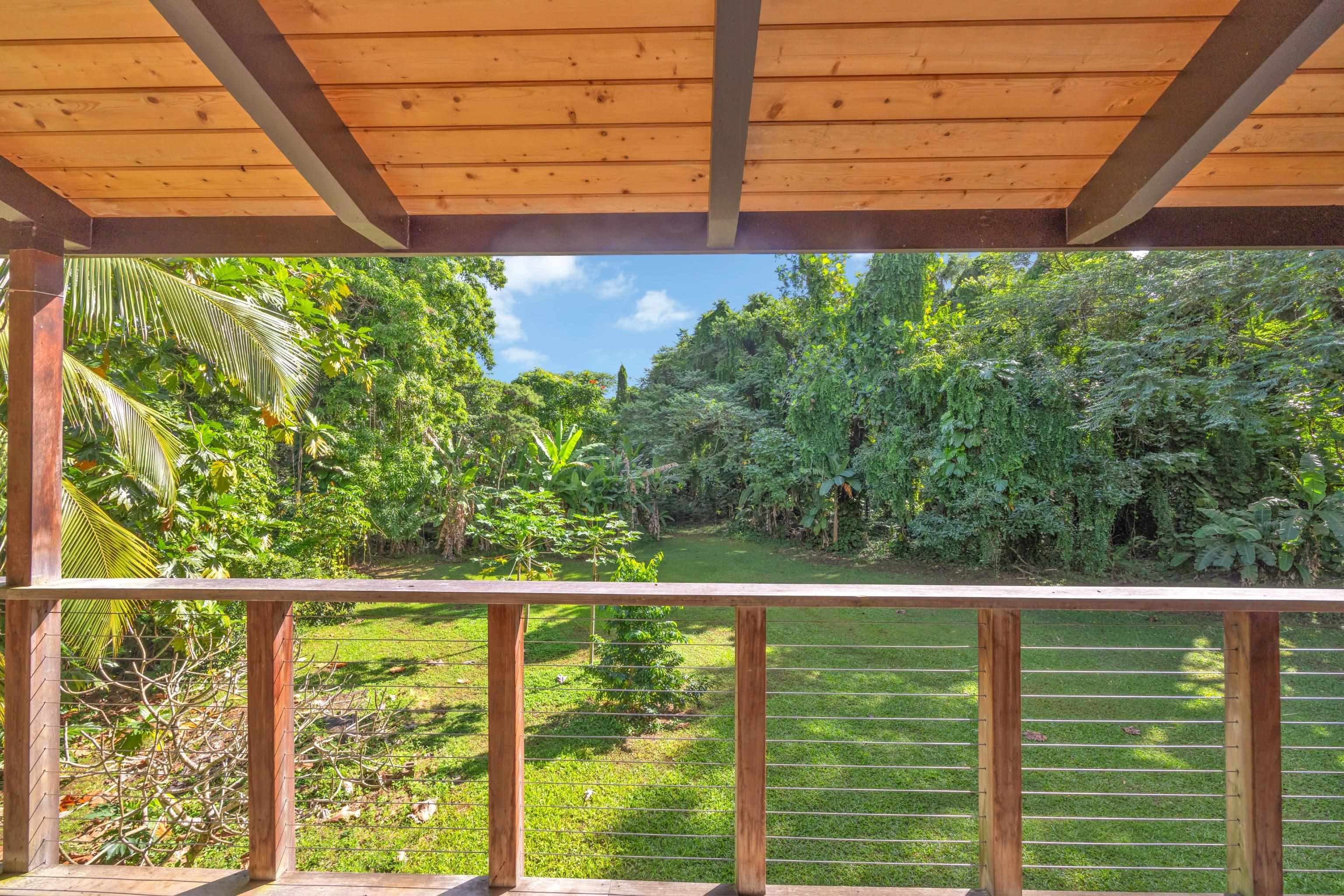 Unmatched Value in Heavenly Hana! Discover the ultimate live, work, play lifestyle at this rare 5BD/5BA estate on nearly 2 acres of lush tropical beauty–just moments from Hana Bay, Hamoa Beach, and the iconic coastline. This is your chance to own one of Hana’s most flexible and inspiring properties. The 3BD/3BA main home showcases open-beam ceilings, rich natural light, and private entrances for each room–perfect for multi-generational living or flexible use. Upstairs, the wraparound Ipe wood deck invites relaxation in a tranquil setting. A detached 2BD/2BA cottage with its own expansive Ipe deck offers space for loved ones, guests, or rental income. Interim zoning opens the door to endless possibilities -perhaps an artist’s retreat, yoga/wellness sanctuary, clinic, farm, or multi-generational compound. With 29 leased solar panels, 2 Tesla batteries, 2 septic systems, and multiple outbuildings, this property is full of Paradise, productivity, and potential all in one–don’t let this opportunity slip away!