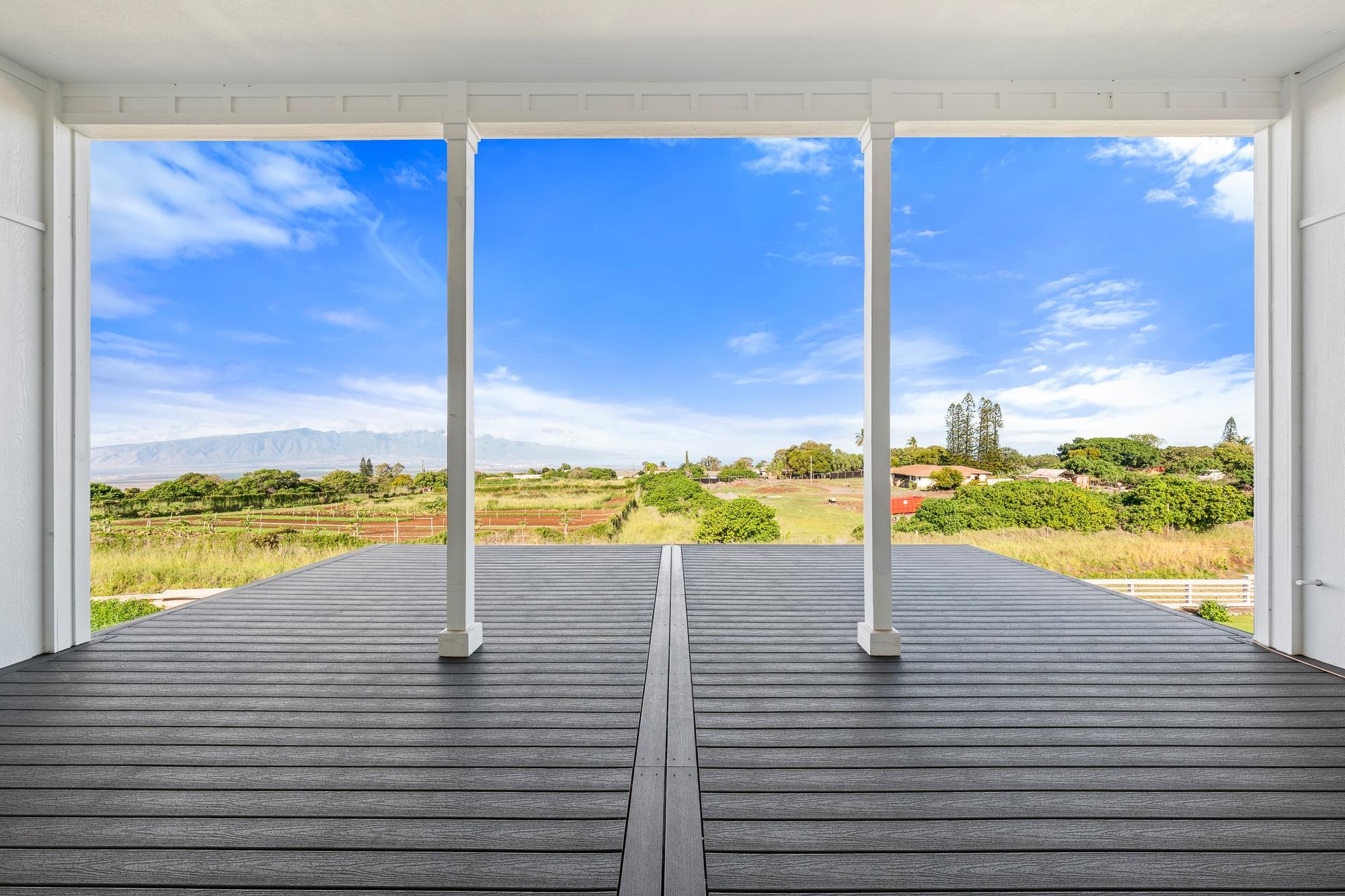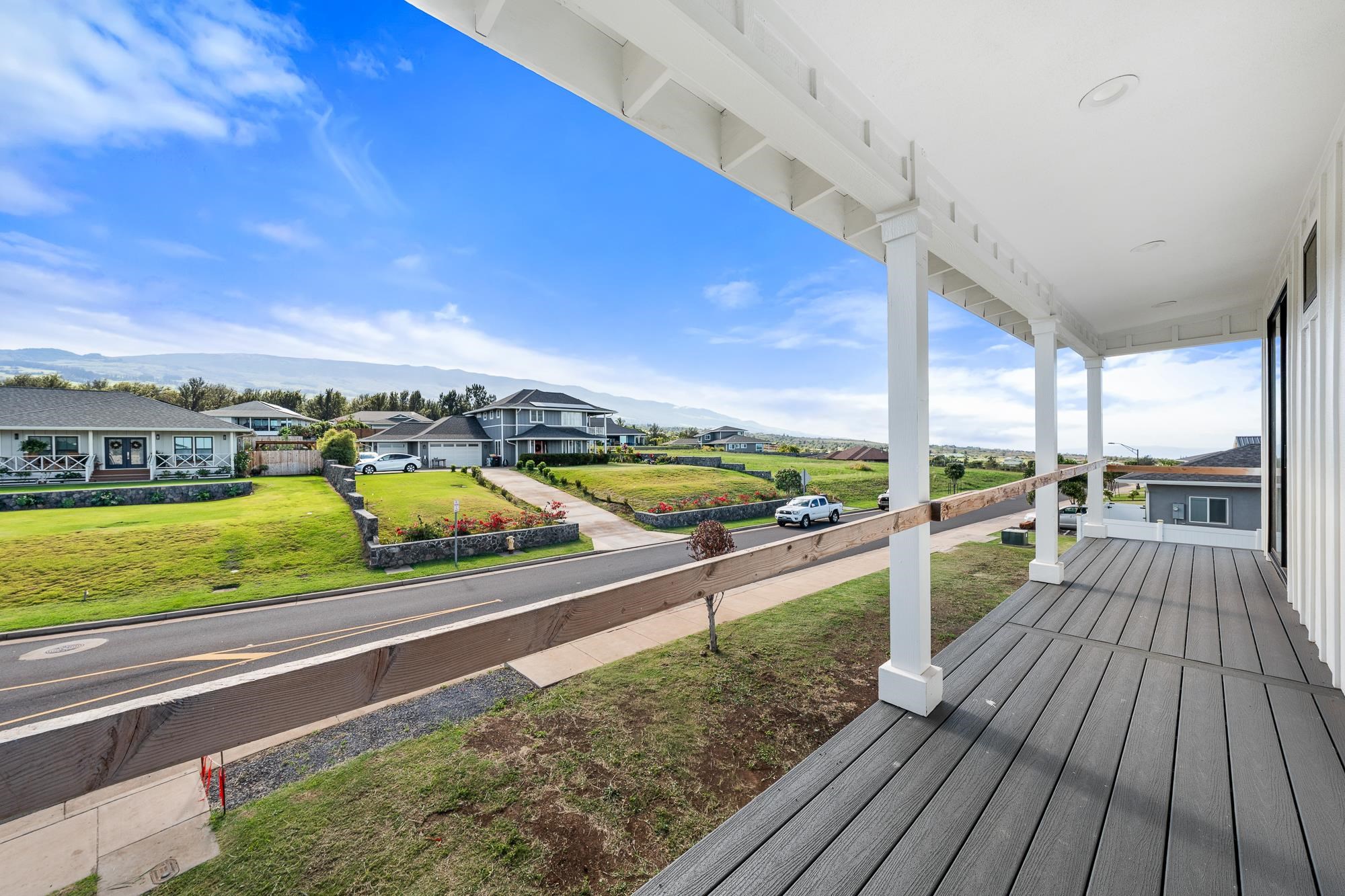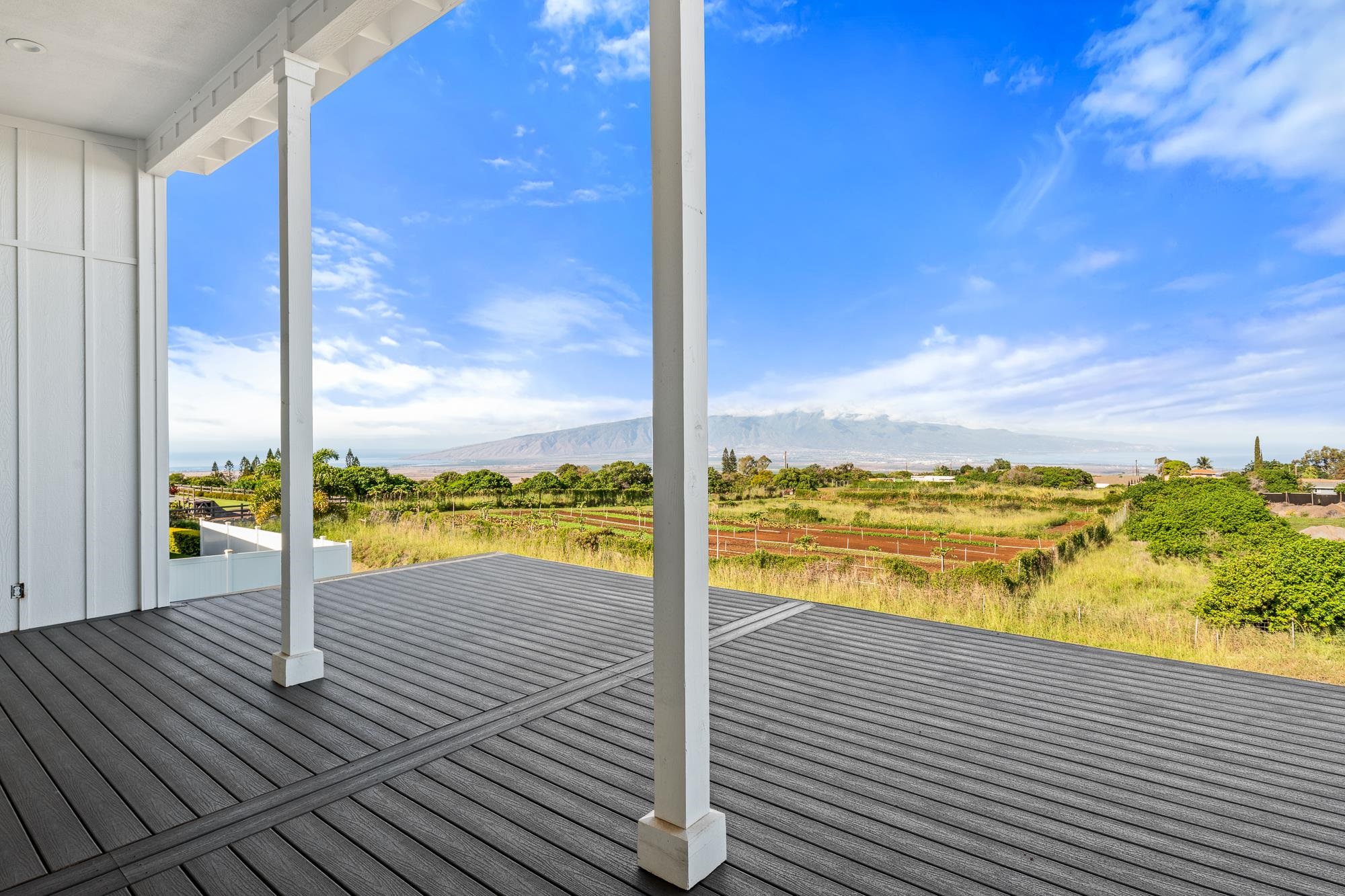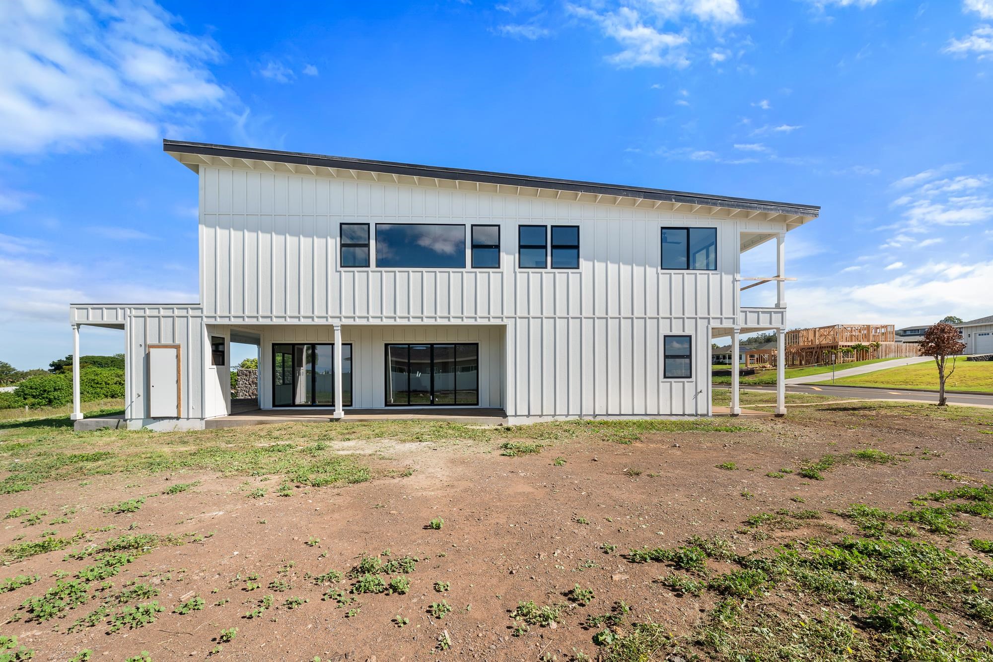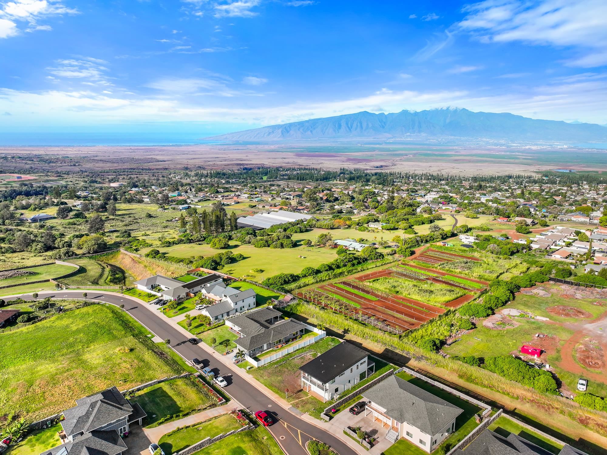 Introducing a contemporary two-story residence located within the desirable Kualono Subdivision in Pukalani, set on an expansive 18,208 sq. ft. lot in the heart of Upcountry Maui. Built in 2025, this thoughtfully designed home offers approximately 1,995 sq. ft. of living space with 3 bedrooms and 3.5 bathrooms, featuring a modern layout with abundant natural light and seamless indoor-outdoor living. Multiple covered and open lanais extend the living areas, creating ideal spaces to enjoy cool Upcountry breezes and scenic surroundings. The home showcases quality construction, double-wall framing, and a contemporary aesthetic throughout. Located in a quiet residential enclave just minutes from Makawao town, schools, and shopping, this property offers a rare opportunity to personalize a nearly completed home in one of Maui’s most sought-after climates.