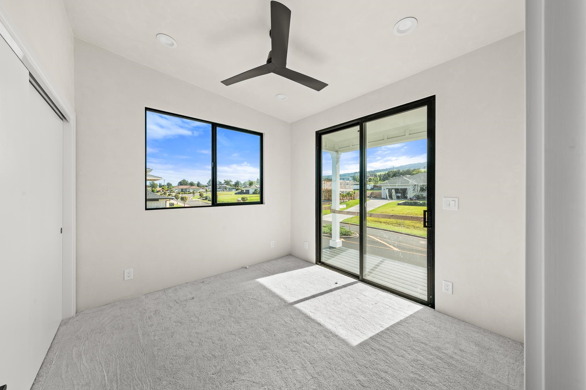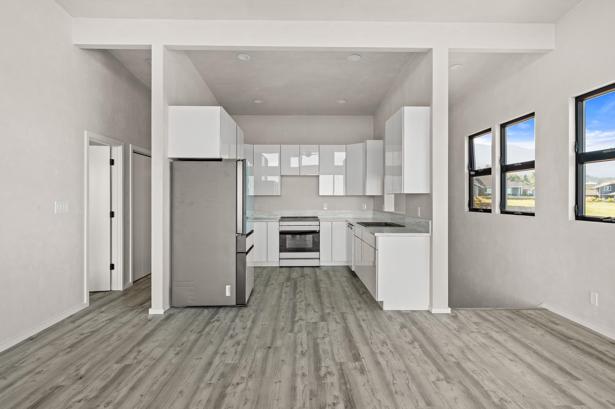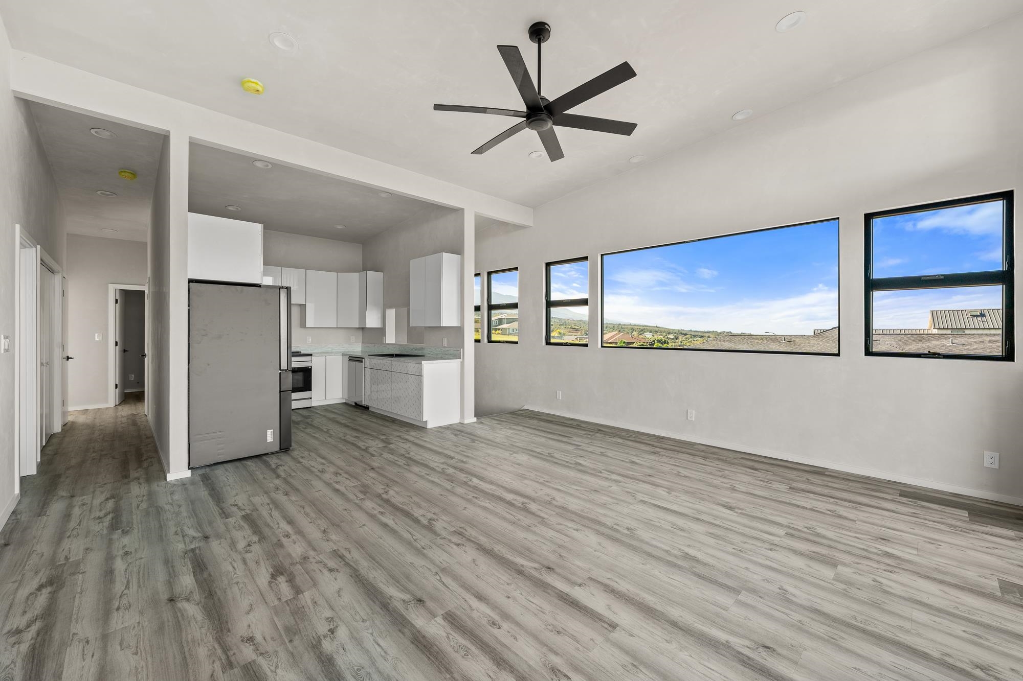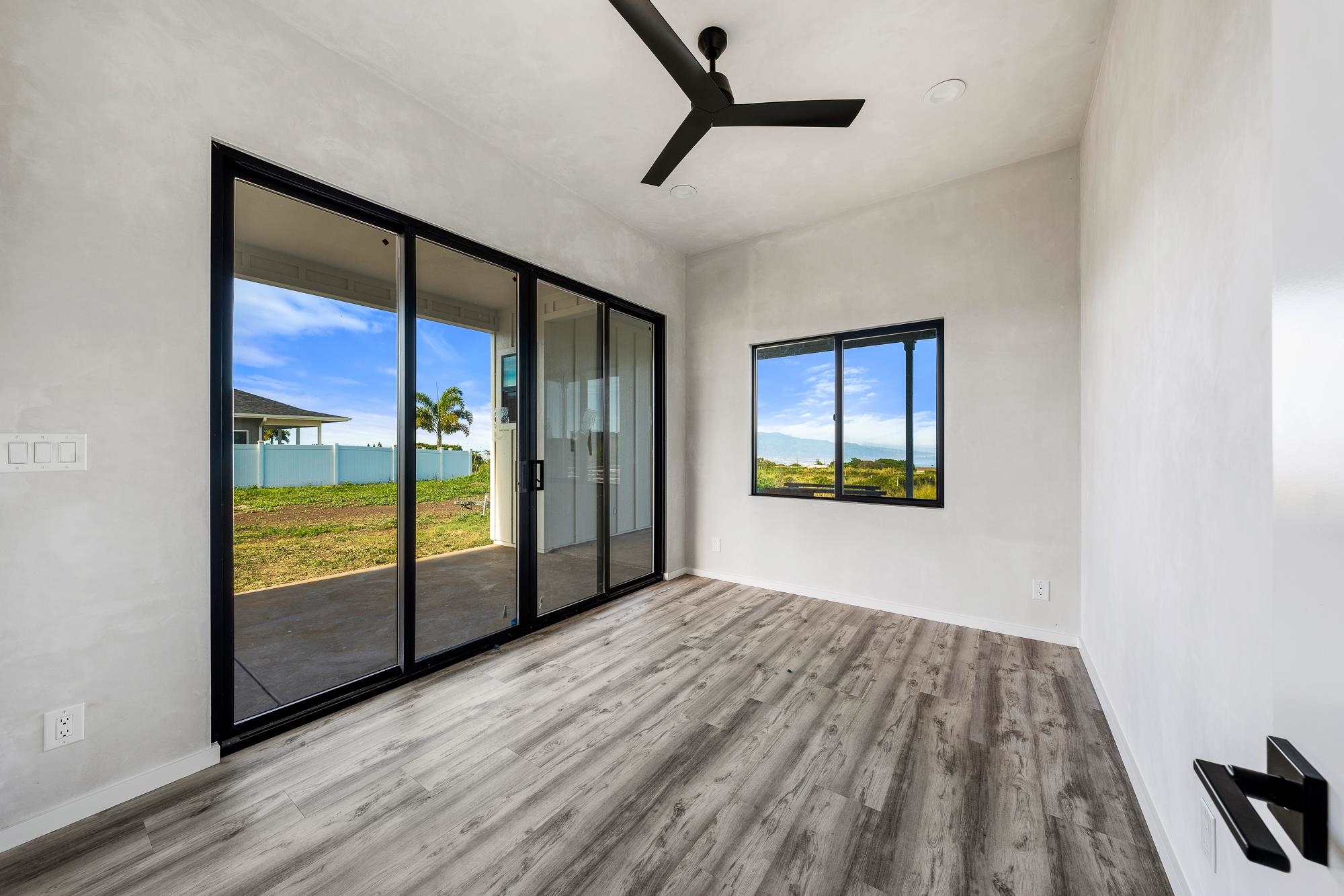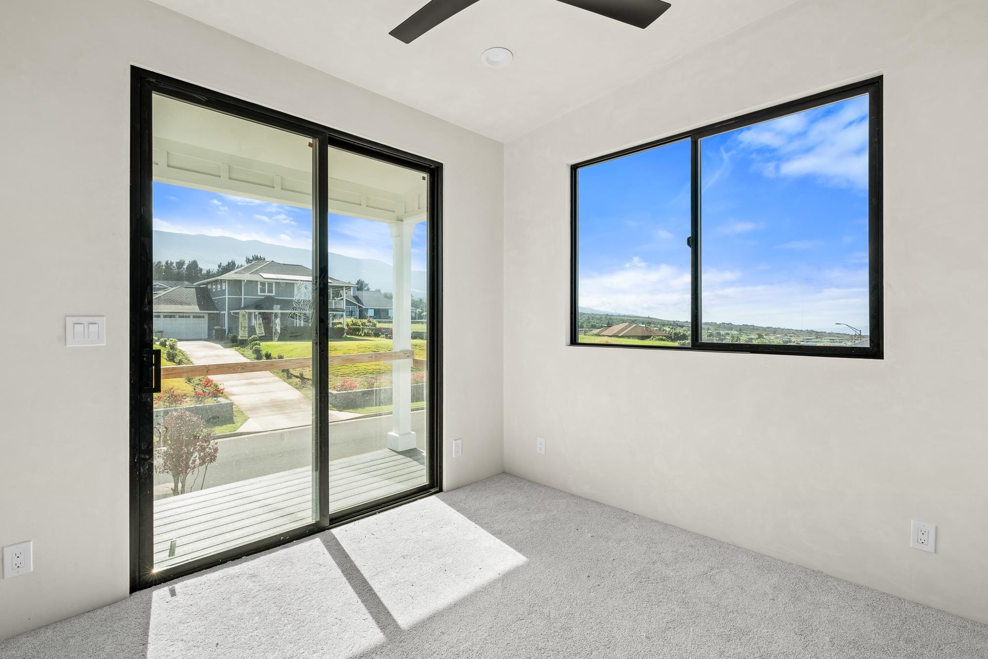 Introducing a contemporary two-story residence located within the desirable Kualono Subdivision in Pukalani, set on an expansive 18,208 sq. ft. lot in the heart of Upcountry Maui. Built in 2025, this thoughtfully designed home offers approximately 1,995 sq. ft. of living space with 3 bedrooms and 3.5 bathrooms, featuring a modern layout with abundant natural light and seamless indoor-outdoor living. Multiple covered and open lanais extend the living areas, creating ideal spaces to enjoy cool Upcountry breezes and scenic surroundings. The home showcases quality construction, double-wall framing, and a contemporary aesthetic throughout. Located in a quiet residential enclave just minutes from Makawao town, schools, and shopping, this property offers a rare opportunity to personalize a nearly completed home in one of Maui’s most sought-after climates.