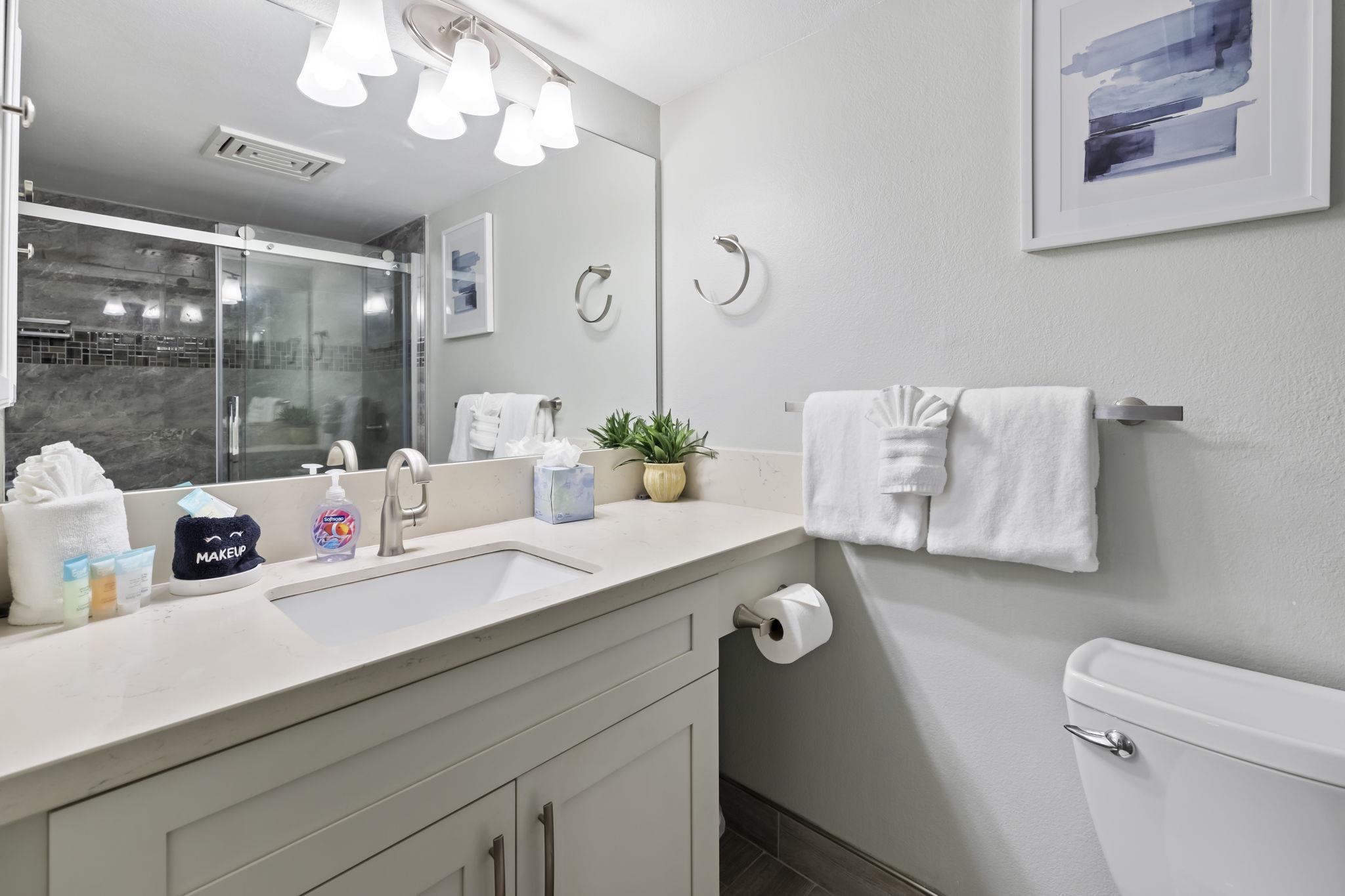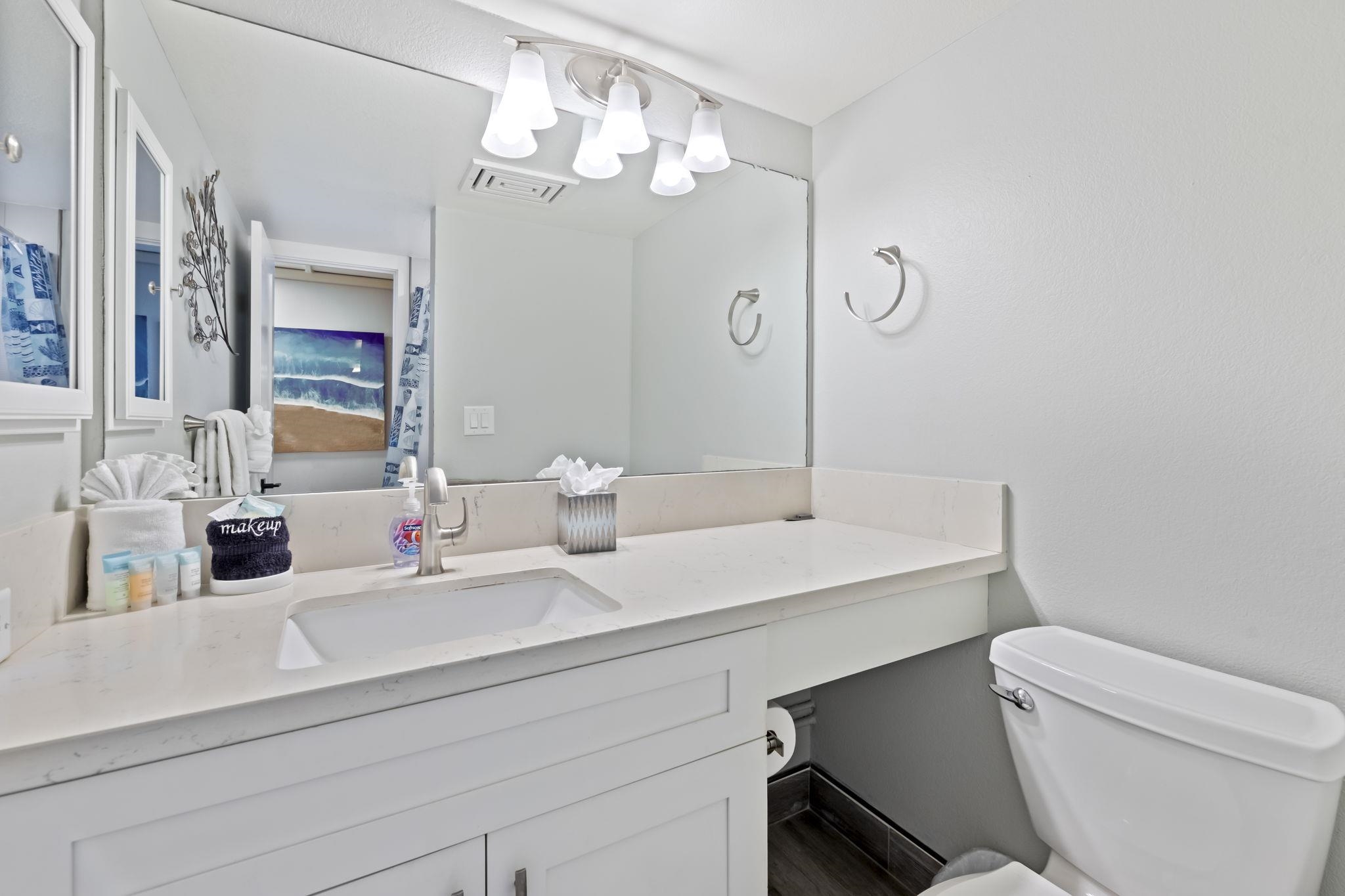 Simply the Best! If you’ve been waiting for the most gorgeous Kamaole Sands one Bedroom two Bath unit in the best location in the community, your wait is over! This beautiful condo has been updated to perfection in every way. This third floor unit features the larger lanai plan with amazing ocean views and puts you steps away from the community amenities and directly across the street from the incredible Kamaole Beach Park III. Walk in and be instantly wowed by the jaw dropping updates including beautiful luxury vinyl hardwood floors, stainless steel appliances in the pristine kitchen, designer paint throughout, built in Murphy bed in living area, high quality furnishings and new lighting fixtures and fans throughout, stunning bathroom updates including counters, showers, fixtures, and more. This superior location puts you in the most walkable part of South Kihei and minutes from everything in the Wailea Resort plus all the shopping, restaurants, and world class beaches that make South Maui the ideal place for your home away from home. The sturdy concrete construction and exceptionally well maintained property have made Kamaole Sands one of the most desirable values for Maui visitors year after year. This elegant condo home will pamper you as you relax between enjoying all the exciting activities that Maui has to offer, so get ready to come in, drop your bags, and be at home on the most beautiful island in the world - Maui No Ka Oi - don’t wait, your dream home awaits!
