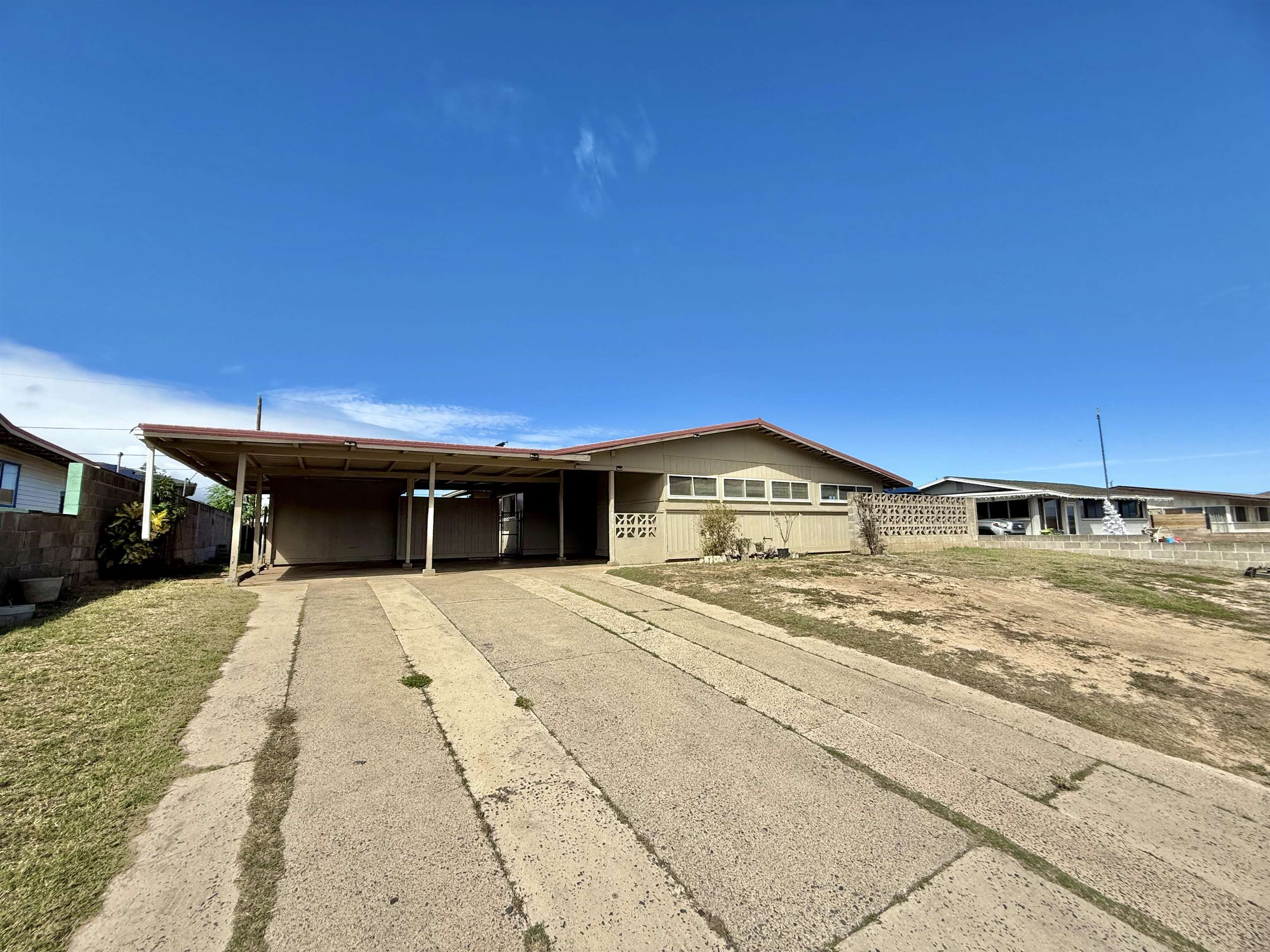 This delightful 3-bedroom, 1.5-bathroom residence offers 1,361 square feet of interior living space situated on a generous 8,485 square foot lot. The property features a 536 square foot two-vehicle carport, providing ample covered parking and additional storage. The home is enhanced with luxury vinyl plank flooring throughout and a tastefully tiled shower. The Jack-and-Jill—style bathroom layout adds functionality and convenience. A mango tree in the backyard offers a pleasant outdoor feature and potential for enjoyable gatherings. The property was partially renovated in 2019 and presents a solid opportunity for homeowners or investors seeking a centrally located Kahului home with room to personalize.