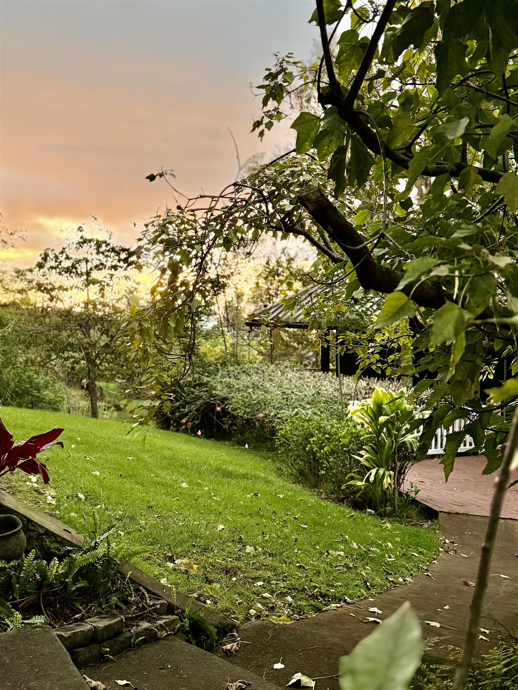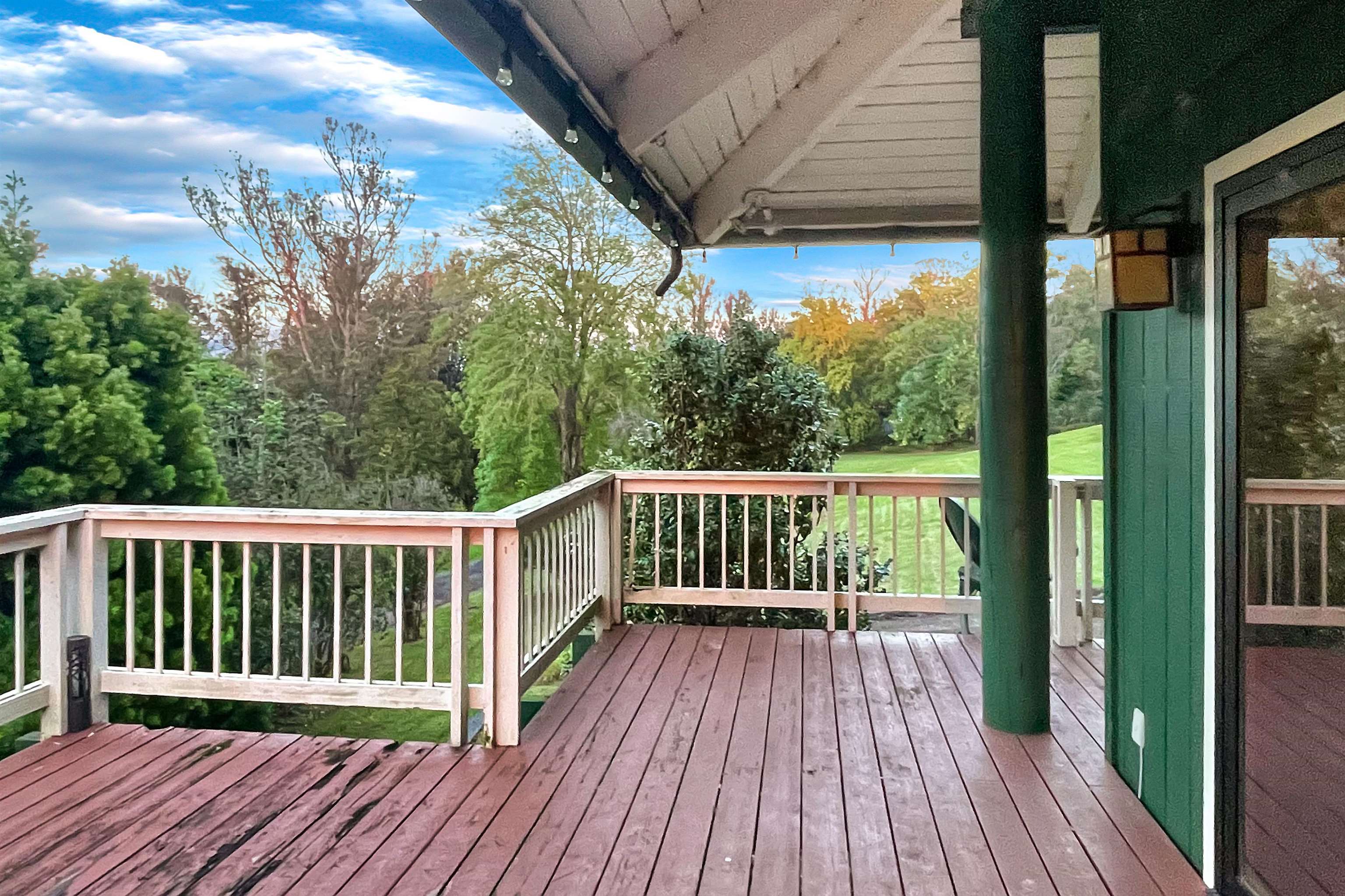 Bring your vision to this peaceful Upcountry property nestled just below the cool cloud line of Upper Piiholo. Set on two (2) beautifully established acres, this three (3) bedroom two (2) bath home offers more than twenty six hundred (2600+) square feet of interior space along with views that create an inspiring backdrop for a thoughtful renovation. Native trees, tall pines, and fragrant eucalyptus surround this property, offering both privacy and a deep connection to the land. The home is ready for someone who appreciates character and craftsmanship and wants to restore it to its original charm. A generous wraparound deck already frames the exterior, inviting a seamless indoor and outdoor lifestyle. Inside, the main level features an open living, dining and kitchen area with vaulted ceilings and a striking stone accented fireplace. Two (2) bedrooms and a full bath completes this floor. The primary suite rests on the upper level, offering treetop views and natural light. The finished basement offers a one (1) car parking garage and a large room, perfect for a home office, home theatre or possibly a work out/yoga studio. With internet available and plenty of room to reimagine both indoor and outdoor spaces, this property is a rare opportunity to create something truly special. Whether you update the existing layout or transform it into a more modern Upcountry retreat, the setting and foundation are already in place. This much loved home is waiting for its next chapter.