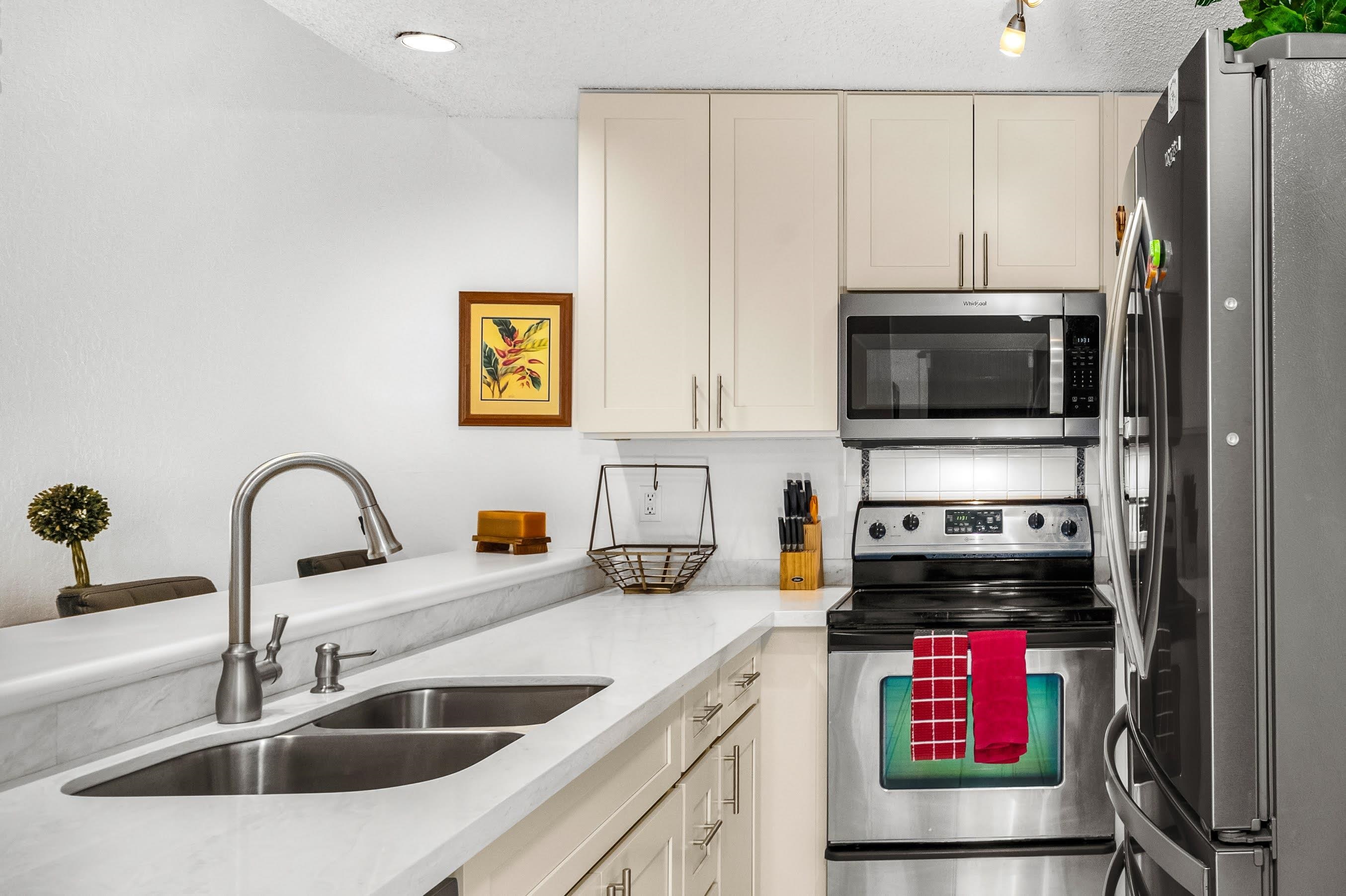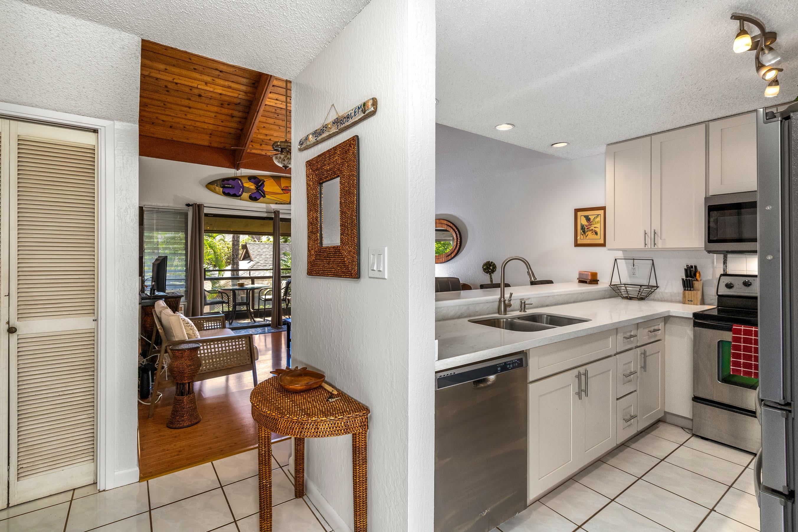Spacious condo, currently used as Vacation Rental. This intimate Beautiful resort has 64 units and is lushly landscaped with manicured Japanese Zen Gardens, pool and is directly across the road from a nice long stretch of beach. Fully Remodeled Kitchen and partially remodeled bathrooms in 2024, new appliances in 2022. Come experience this serene tropical Hawaiian setting. Comes furnished with items on inventory list.