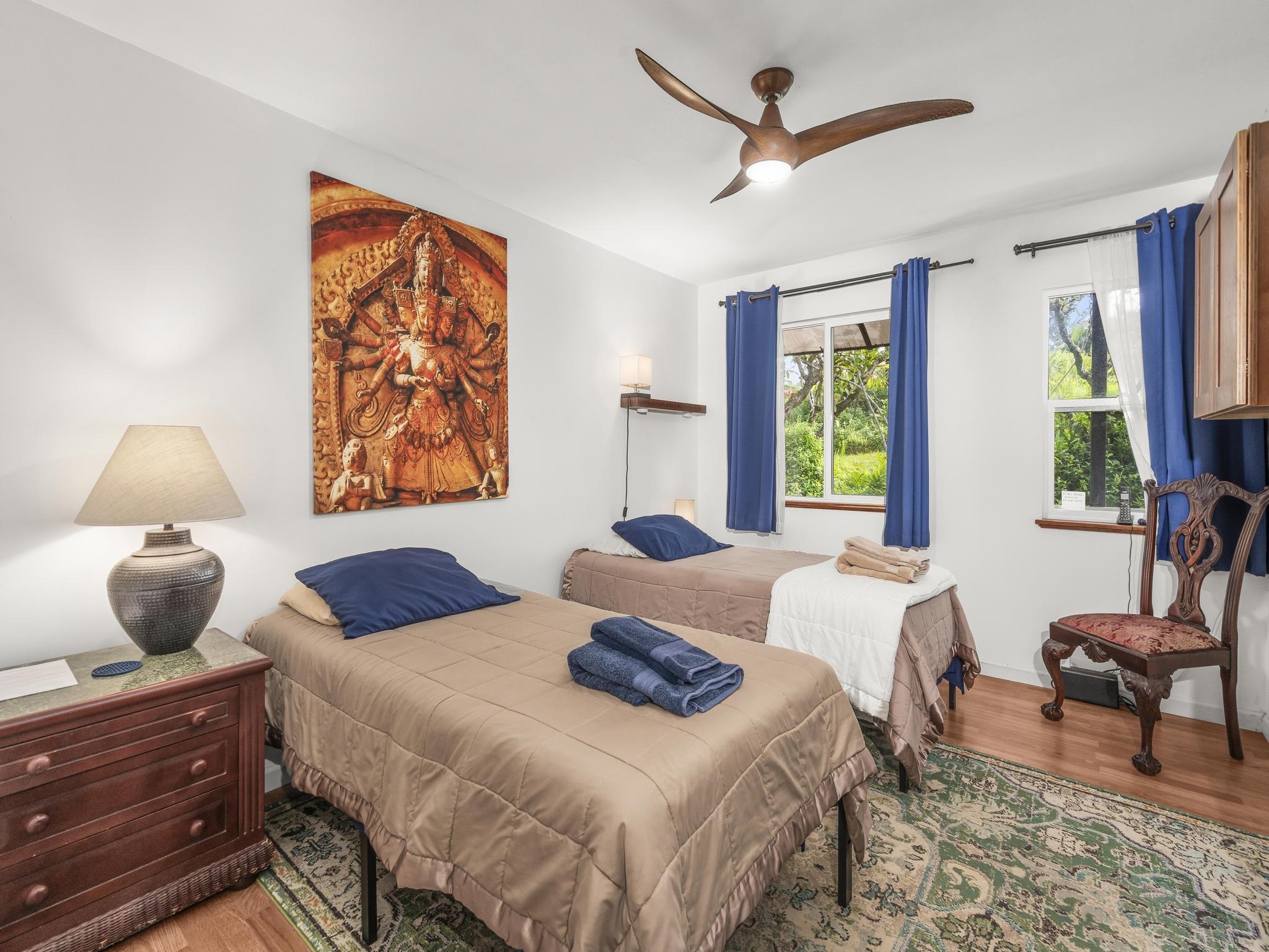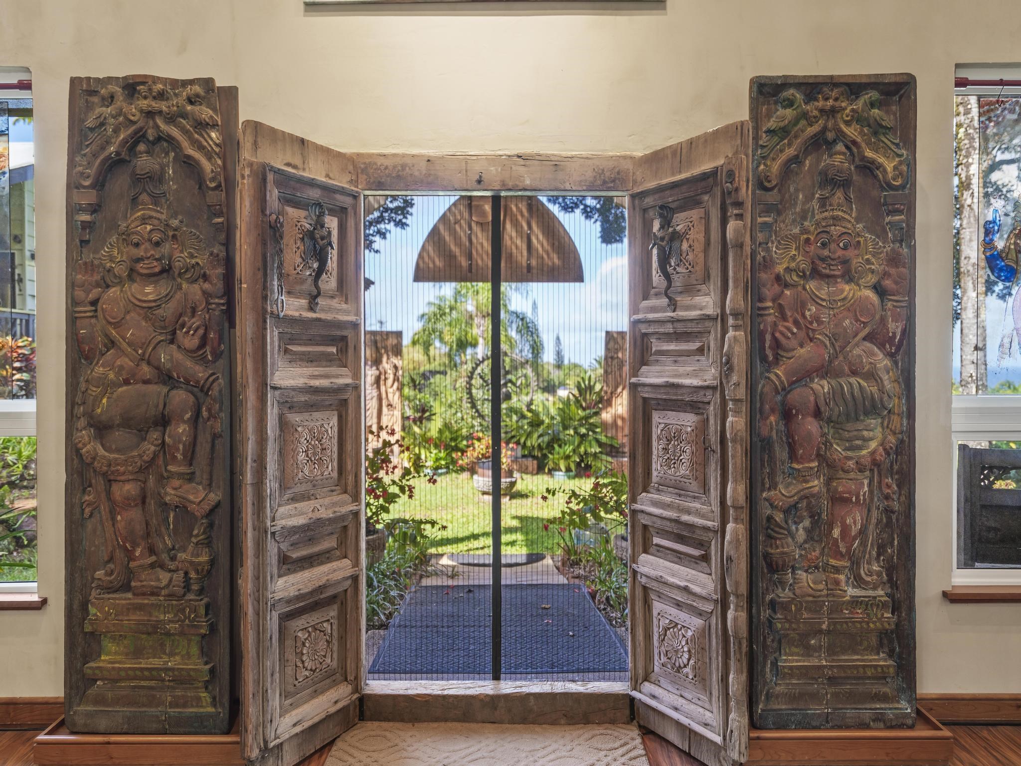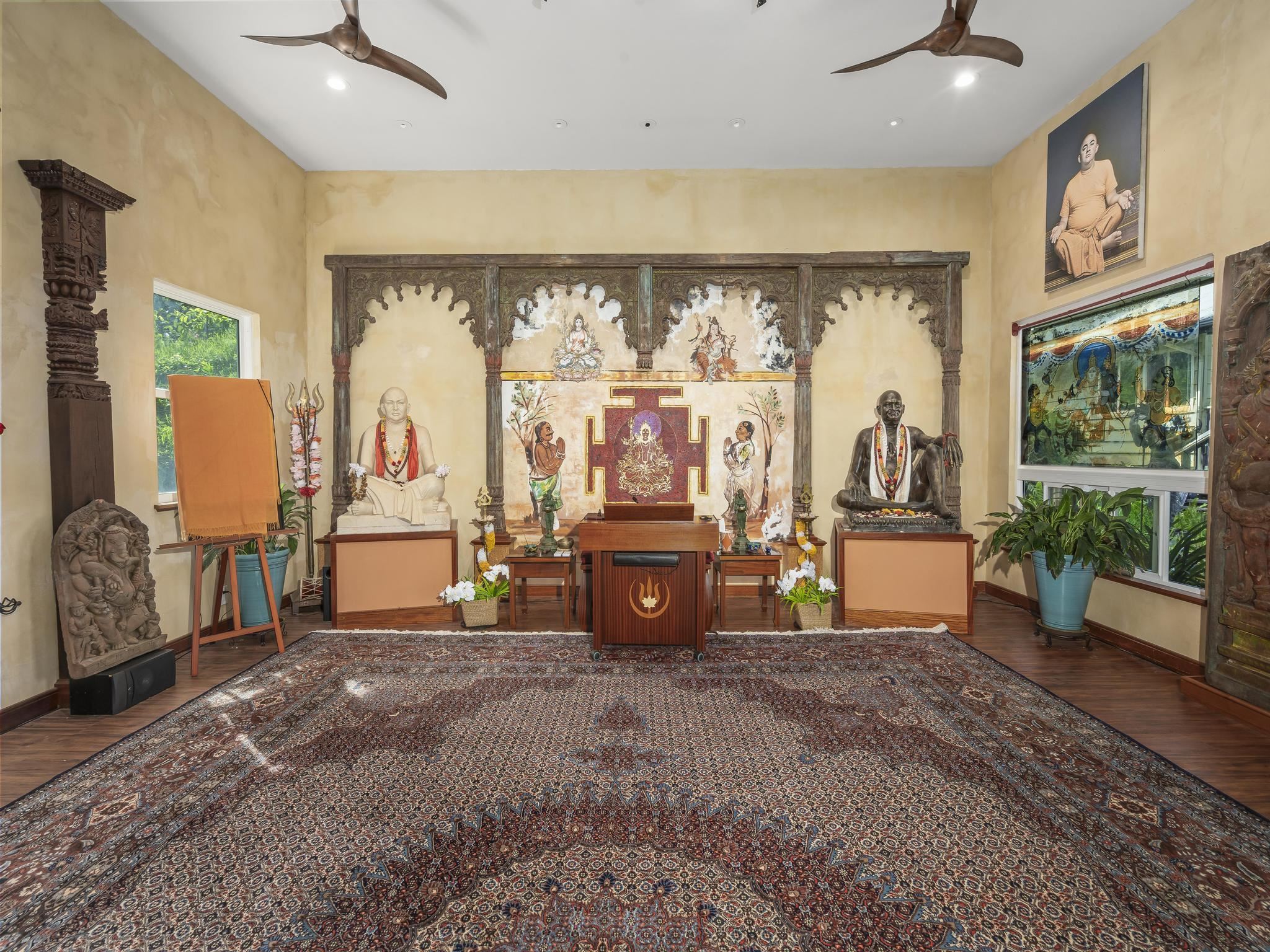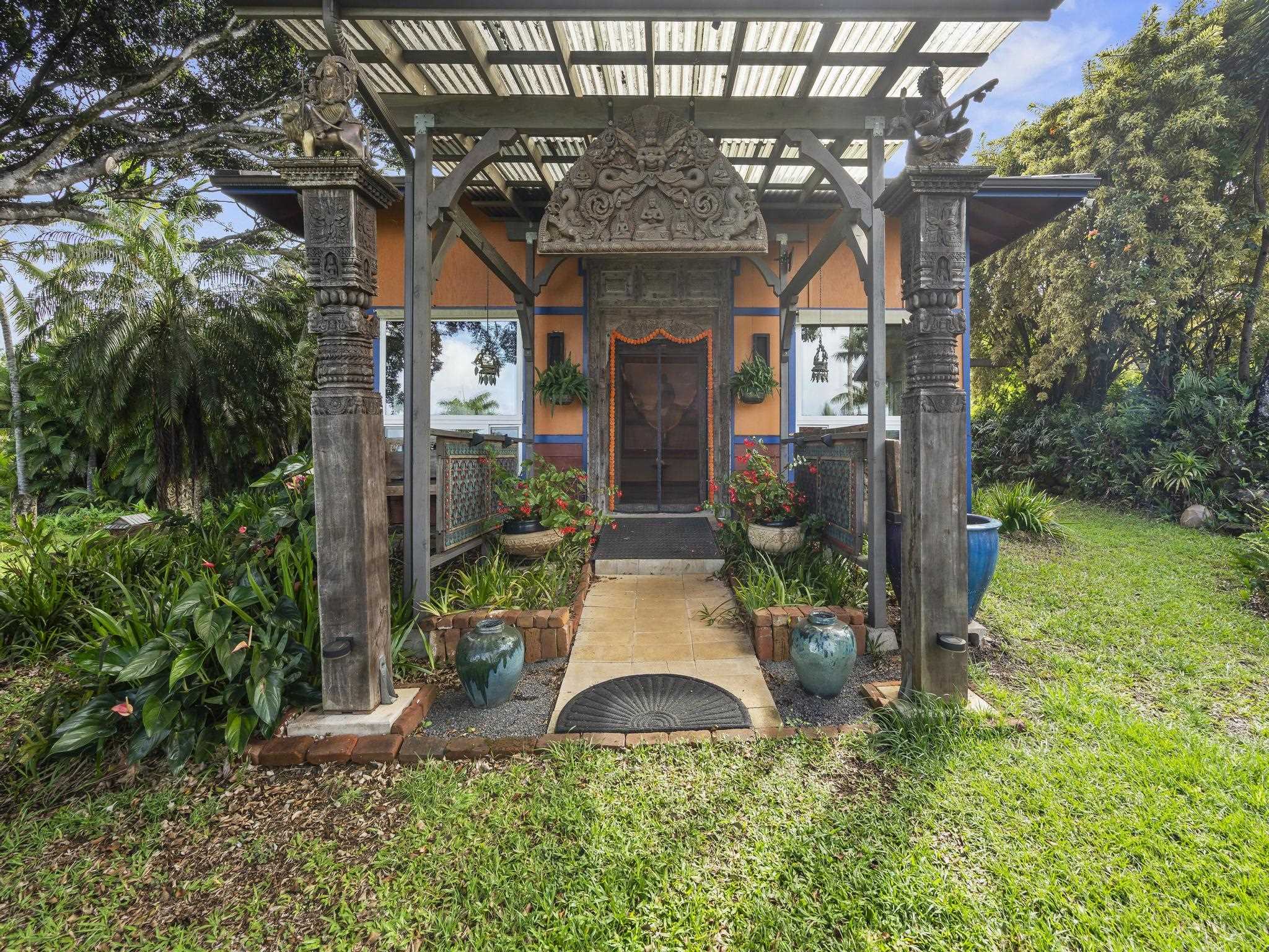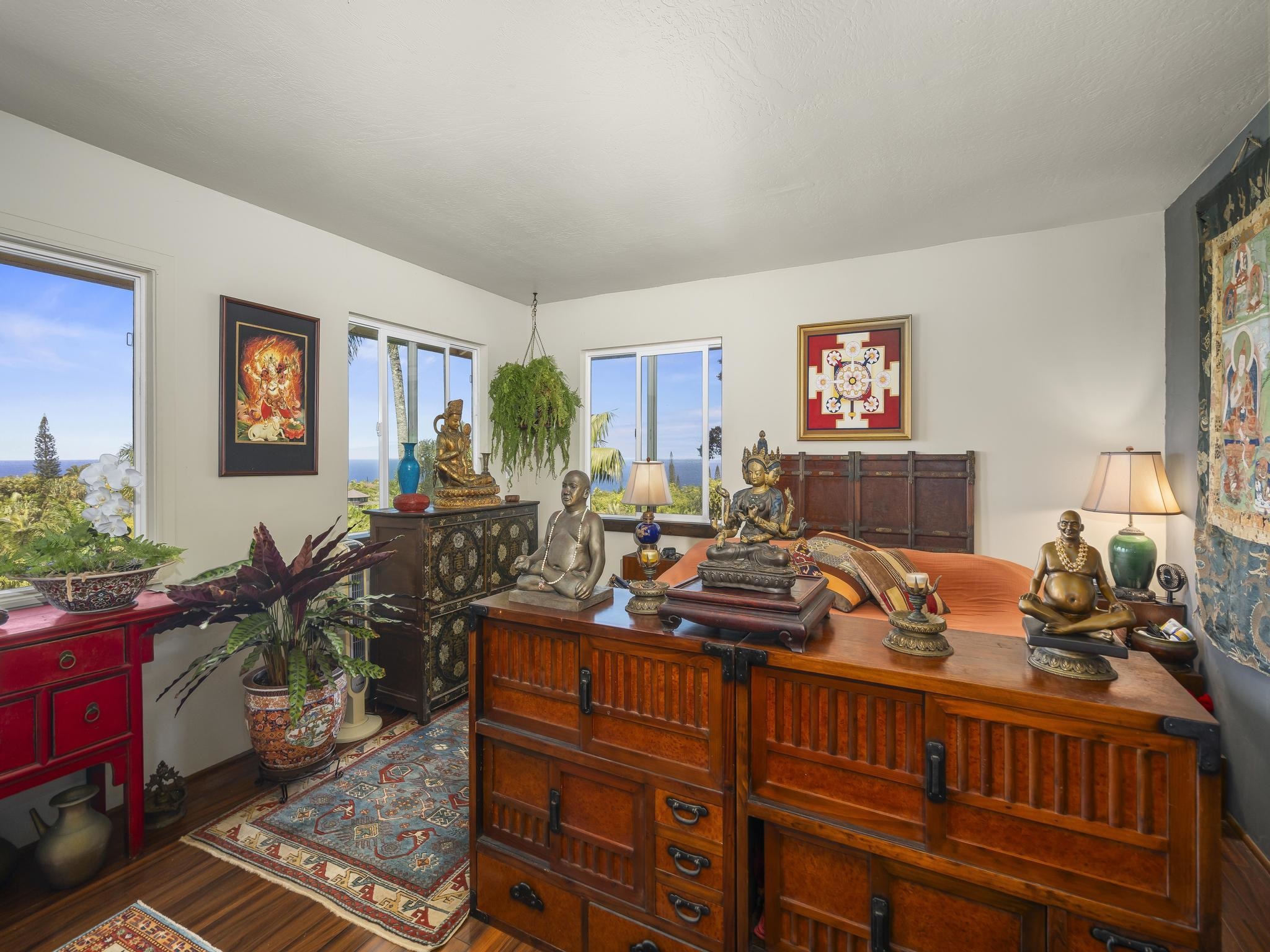 Serene estate set on 3.7 lush, tropical acres with sweeping ocean views, located just past Twin Falls in one of Maui’s most established off-grid communities. This peaceful and private property offers a retreat-like atmosphere, featuring an extensive collection of mature palms, a perennial stream, and gentle ponds that invite reflection and creative expression. Meandering paths encourage slow walks and quiet moments of connection with the land, with endless potential for expanded tropical gardens. The property invites you to grow your own food and live a self-sustaining lifestyle. At night, it feels as though you could reach out and touch the stars. Nestled within the grounds is a tranquil meditation temple designed to calm the heart and center the mind, along with a thoughtfully curated meditation garden adorned with beautiful sculptures that add an artistic, soulful presence to the landscape. The land feels intentional, grounded, and naturally inspiring–ideal for those drawn to mindful, creative living. The two-story residence features 5 bedrooms and 6.5 baths, complemented by a dedicated library and an additional computer room–well-suited for study, remote work, or creative pursuits. An expansive covered deck capturing panoramic ocean and garden views. An opportunity for those seeking privacy, tranquility. Seller financing is offered. This is unit A of CPR