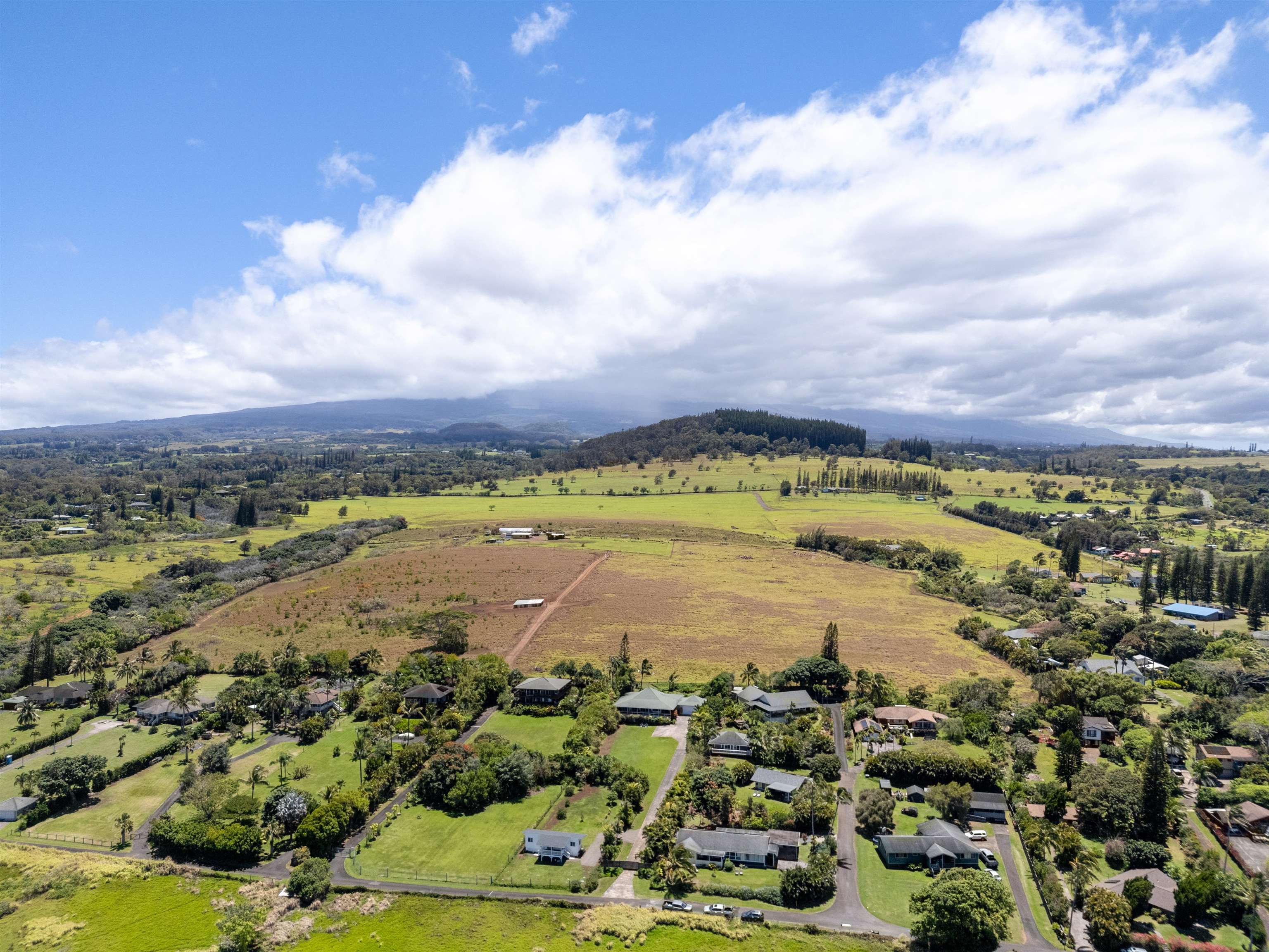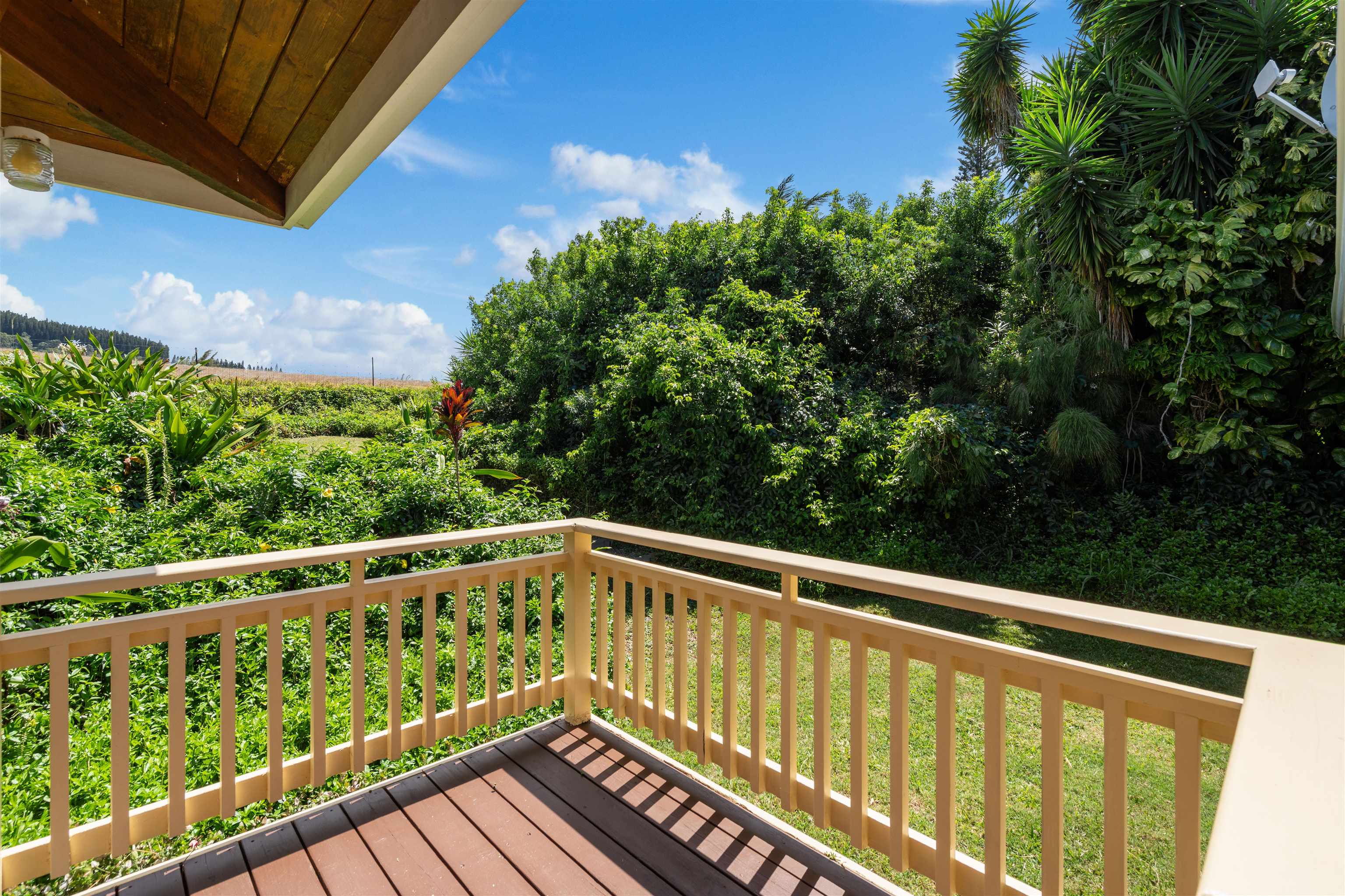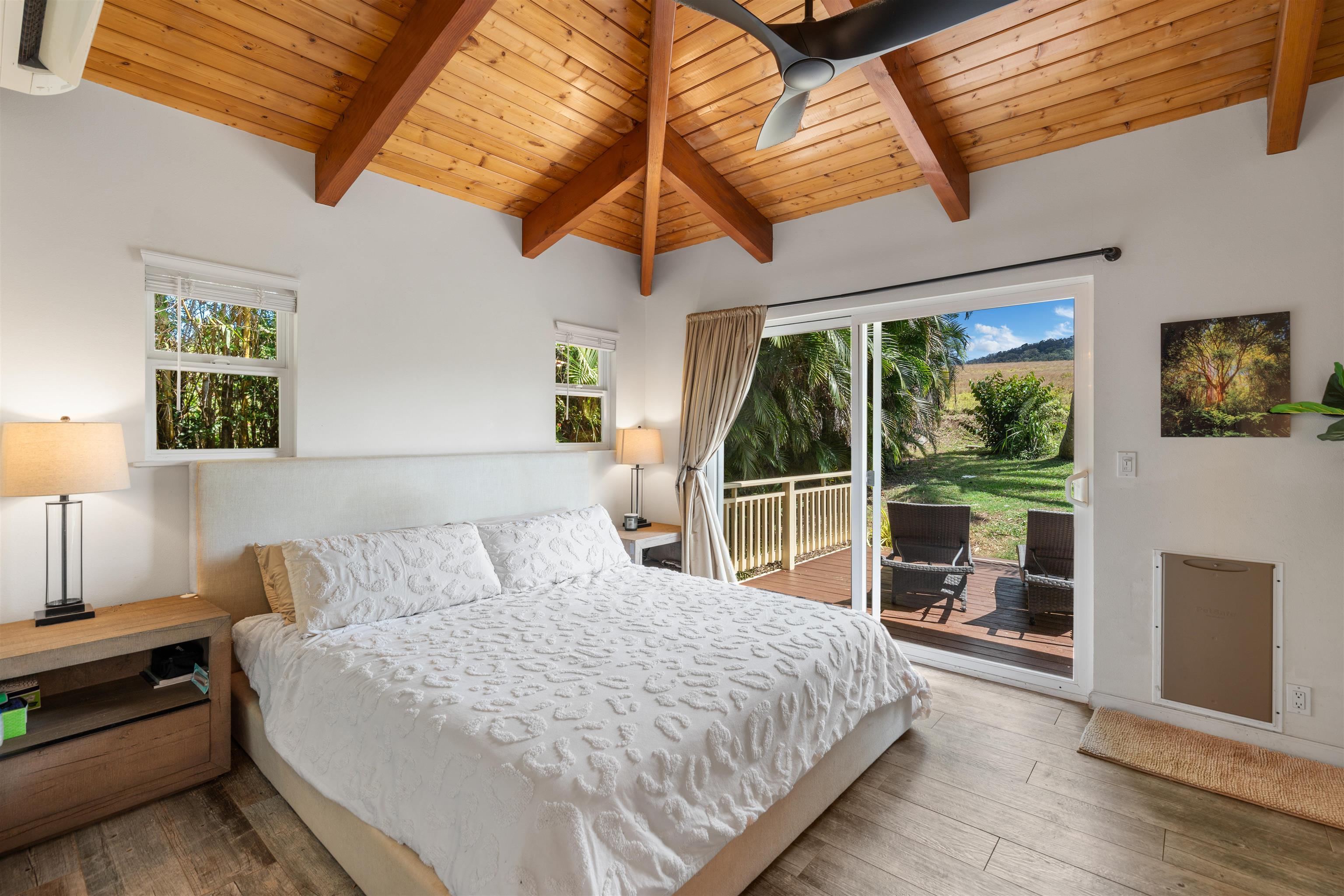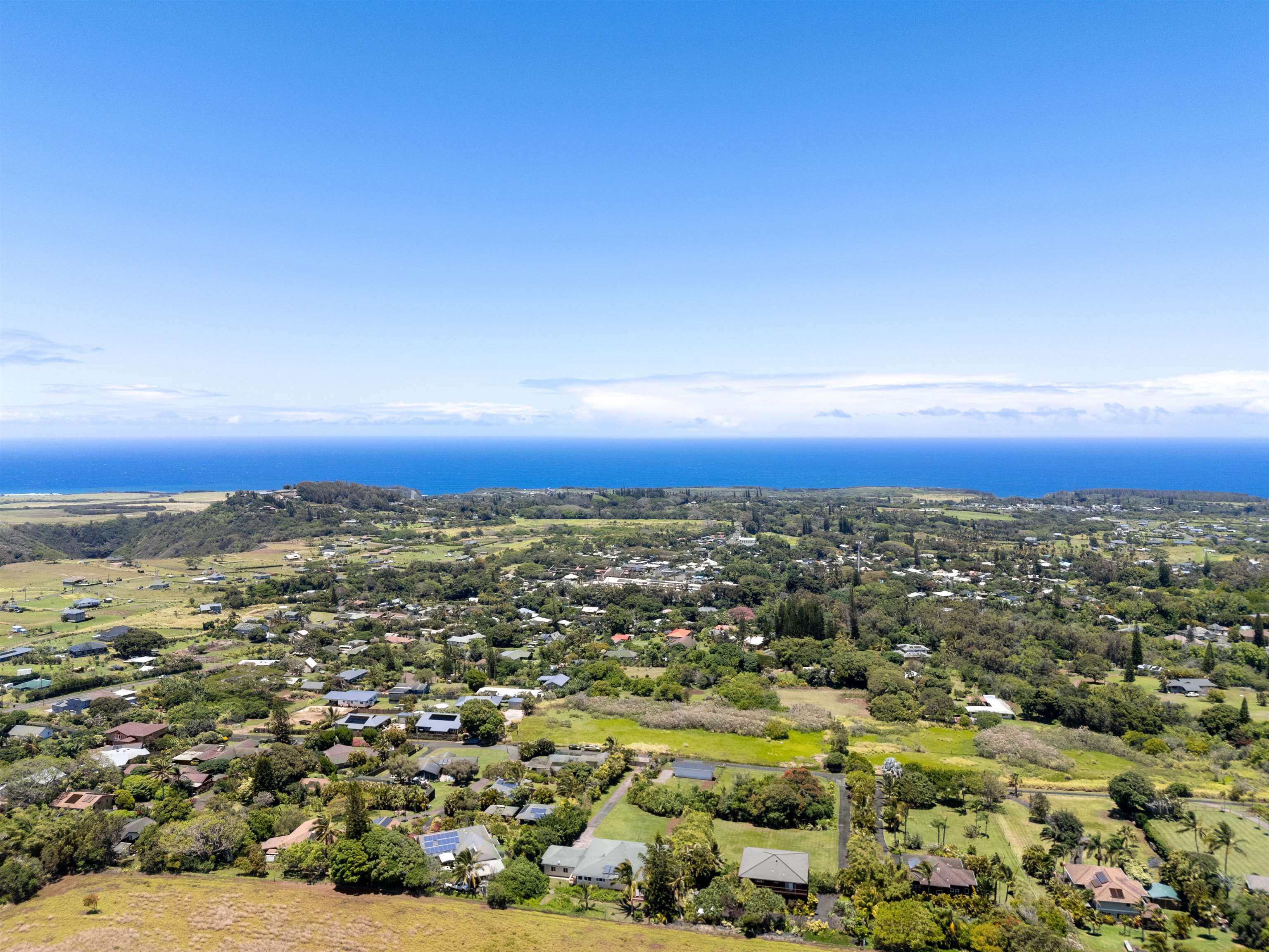 This Haiku estate delivers both ocean and Haleakala views from a spacious 4-bedroom, 3-bath home set on a fully fenced acre with an automatic private gated entrance. This is the ideal setup for accommodating a large family, or multiple guests with ample space for privacy and separation. The home features an open floor plan framed by large windows that flood the space with natural light and showcase the incredible views. The seamless flow between the kitchen, living, and dining areas creates a bright and comfortable atmosphere. Off the main living area is a massive 888 sq ft lanai with multiple seating areas and outdoor cooking space. The primary master suite includes an en-suite bathroom, a large walk-in closet with custom-built-ins, and a private lanai looking over large pasture lands towards Giggle Hill, perfect for quiet mornings or relaxing evenings. An added bonus is a guest suite that features its own entrance, kitchenette, en-suite bath and private lanai. The existing office has a custom-built in murphy bed that provides versatile sleeping accommodations and delivers a functional flow to the space. The zoning for this property is "Rural Half Acre," which offers more flexibility for development. Other notable features of the home is the oversized garage, laundry room, solar hot water and split ac. The property is surrounded by mature fruit trees– Tahitian & Key Limes, Mango, Guava, Valencia Oranges, Mandarins, and a variety of Chili peppers. Pick your own Lilikoi or Star Fruit from the property on any given day. The tropical landscaping is abundant, with plenty of space to garden, entertain, or simply enjoy the peaceful setting. Located just minutes from Haiku town and close to local farms, restaurants, and North Shore beaches, this property offers privacy, views, and a true Maui lifestyle. This property is designated as Unit A of a CPR, with a corresponding CPR-designated land area of 1.0430 acres.