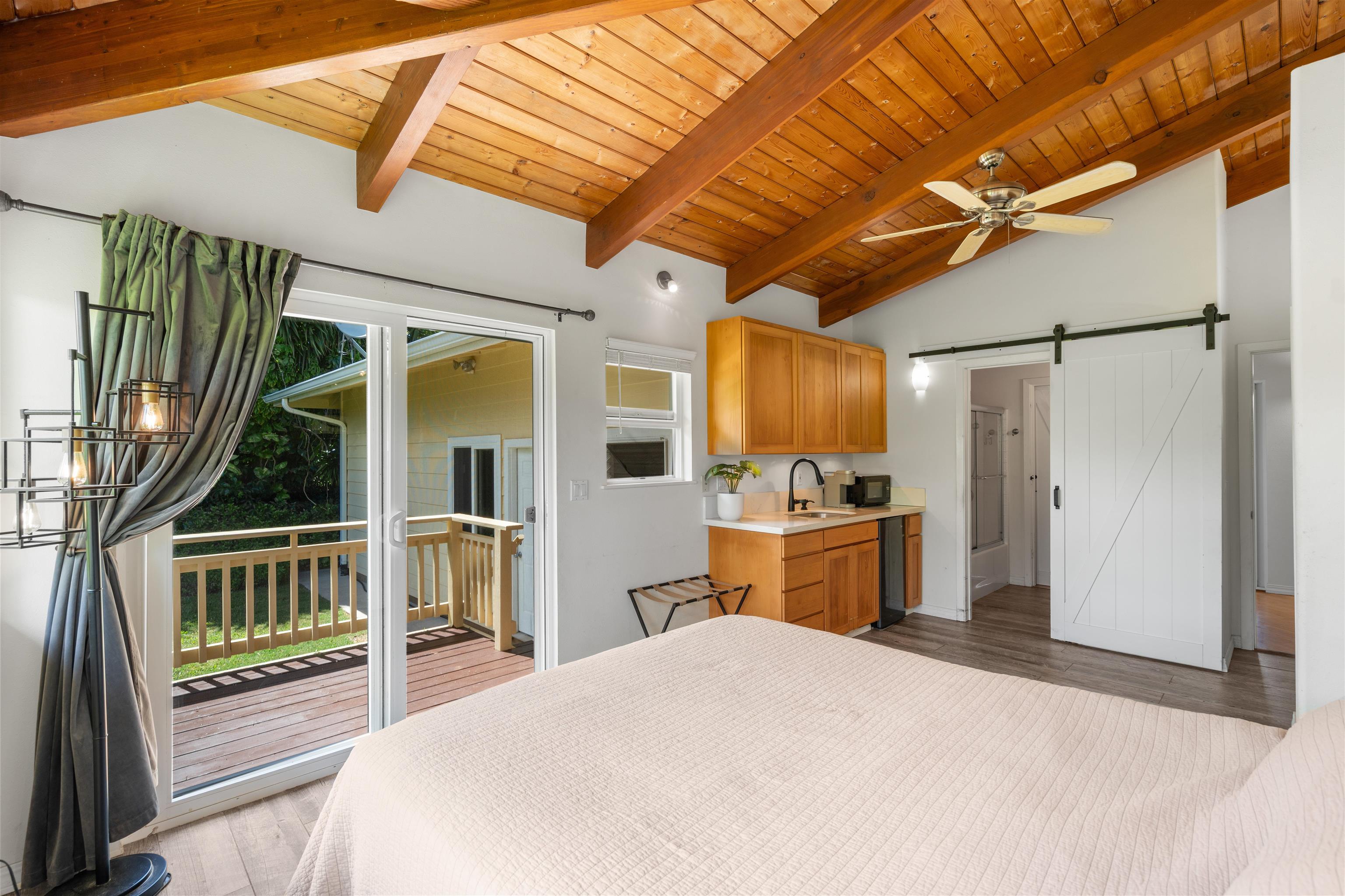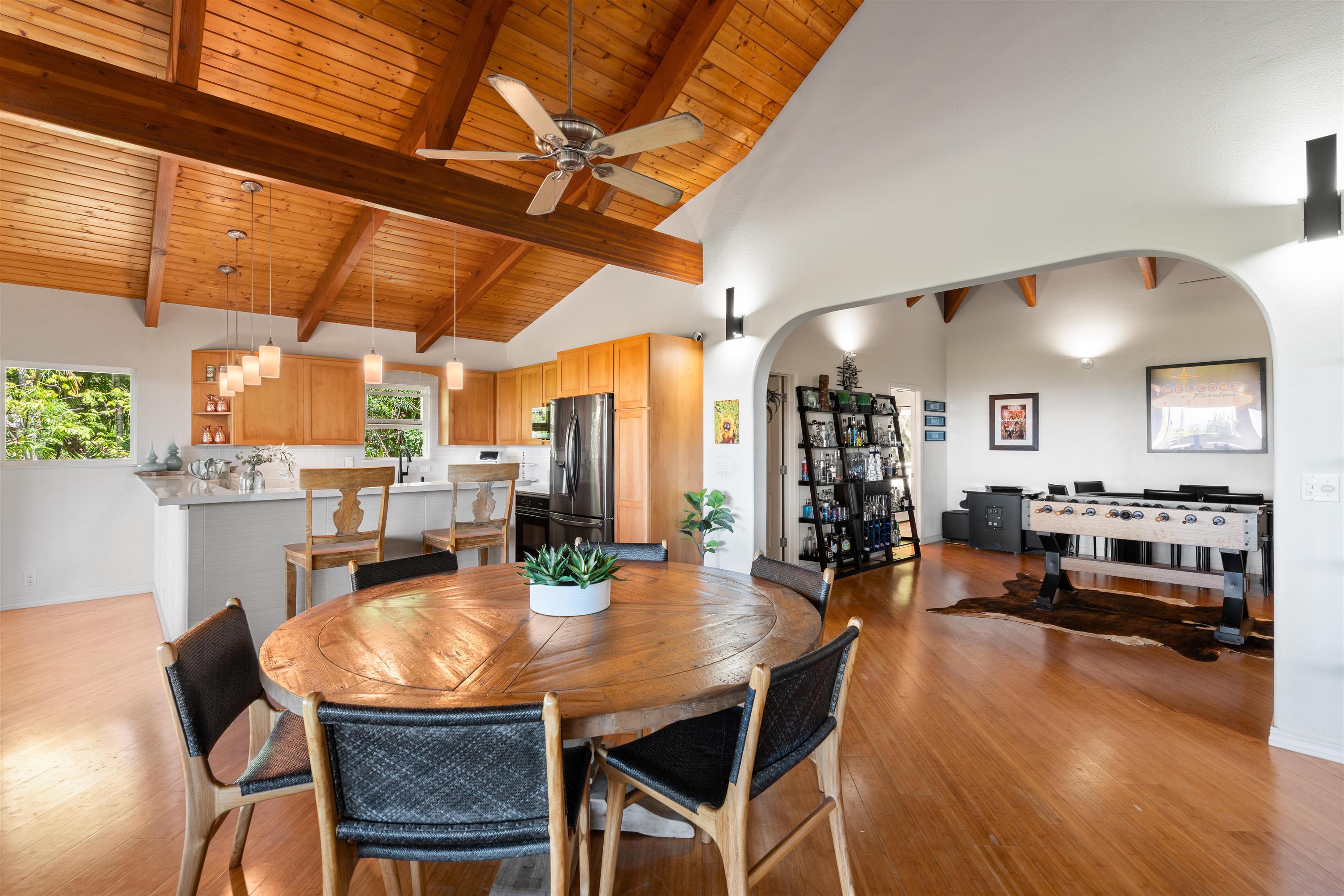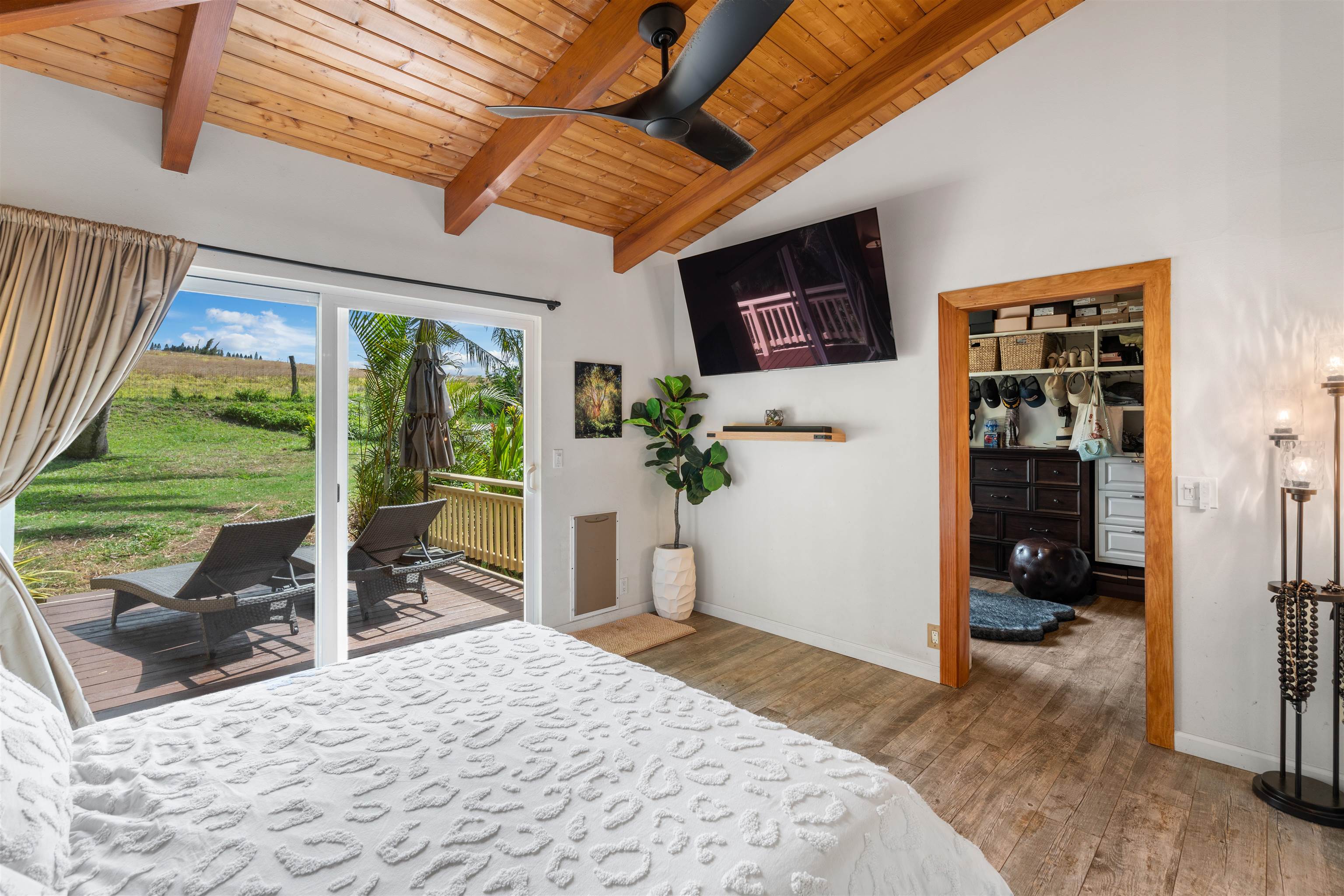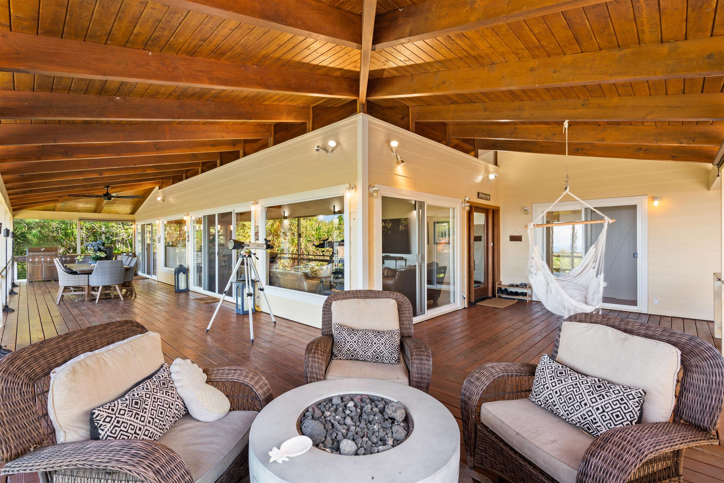This Haiku estate delivers both ocean and Haleakala views from a spacious 4-bedroom, 3-bath home set on a fully fenced acre with an automatic private gated entrance. This is the ideal setup for accommodating a large family, or multiple guests with ample space for privacy and separation. The home features an open floor plan framed by large windows that flood the space with natural light and showcase the incredible views. The seamless flow between the kitchen, living, and dining areas creates a bright and comfortable atmosphere. Off the main living area is a massive 888 sq ft lanai with multiple seating areas and outdoor cooking space. The primary master suite includes an en-suite bathroom, a large walk-in closet with custom-built-ins, and a private lanai looking over large pasture lands towards Giggle Hill, perfect for quiet mornings or relaxing evenings. An added bonus is a guest suite that features its own entrance, kitchenette, en-suite bath and private lanai. The existing office has a custom-built in murphy bed that provides versatile sleeping accommodations and delivers a functional flow to the space. The zoning for this property is "Rural Half Acre," which offers more flexibility for development. Other notable features of the home is the oversized garage, laundry room, solar hot water and split ac. The property is surrounded by mature fruit trees– Tahitian & Key Limes, Mango, Guava, Valencia Oranges, Mandarins, and a variety of Chili peppers. Pick your own Lilikoi or Star Fruit from the property on any given day. The tropical landscaping is abundant, with plenty of space to garden, entertain, or simply enjoy the peaceful setting. Located just minutes from Haiku town and close to local farms, restaurants, and North Shore beaches, this property offers privacy, views, and a true Maui lifestyle. This property is designated as Unit A of a CPR, with a corresponding CPR-designated land area of 1.0430 acres.