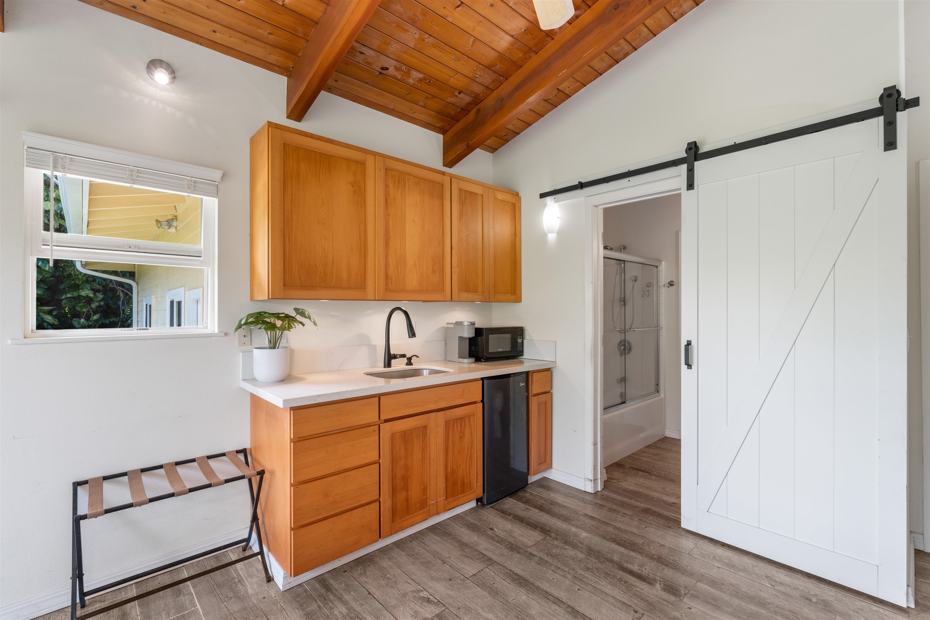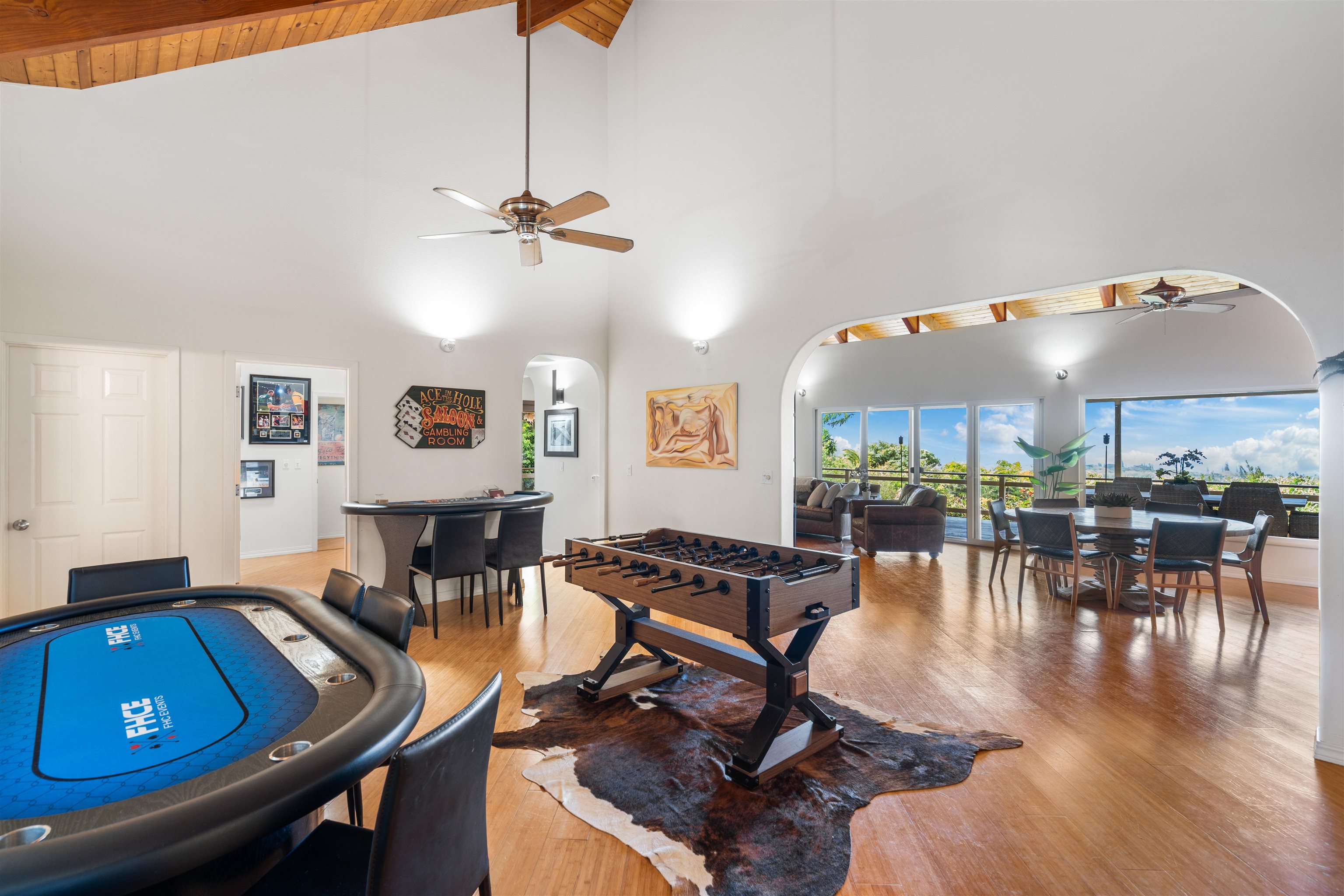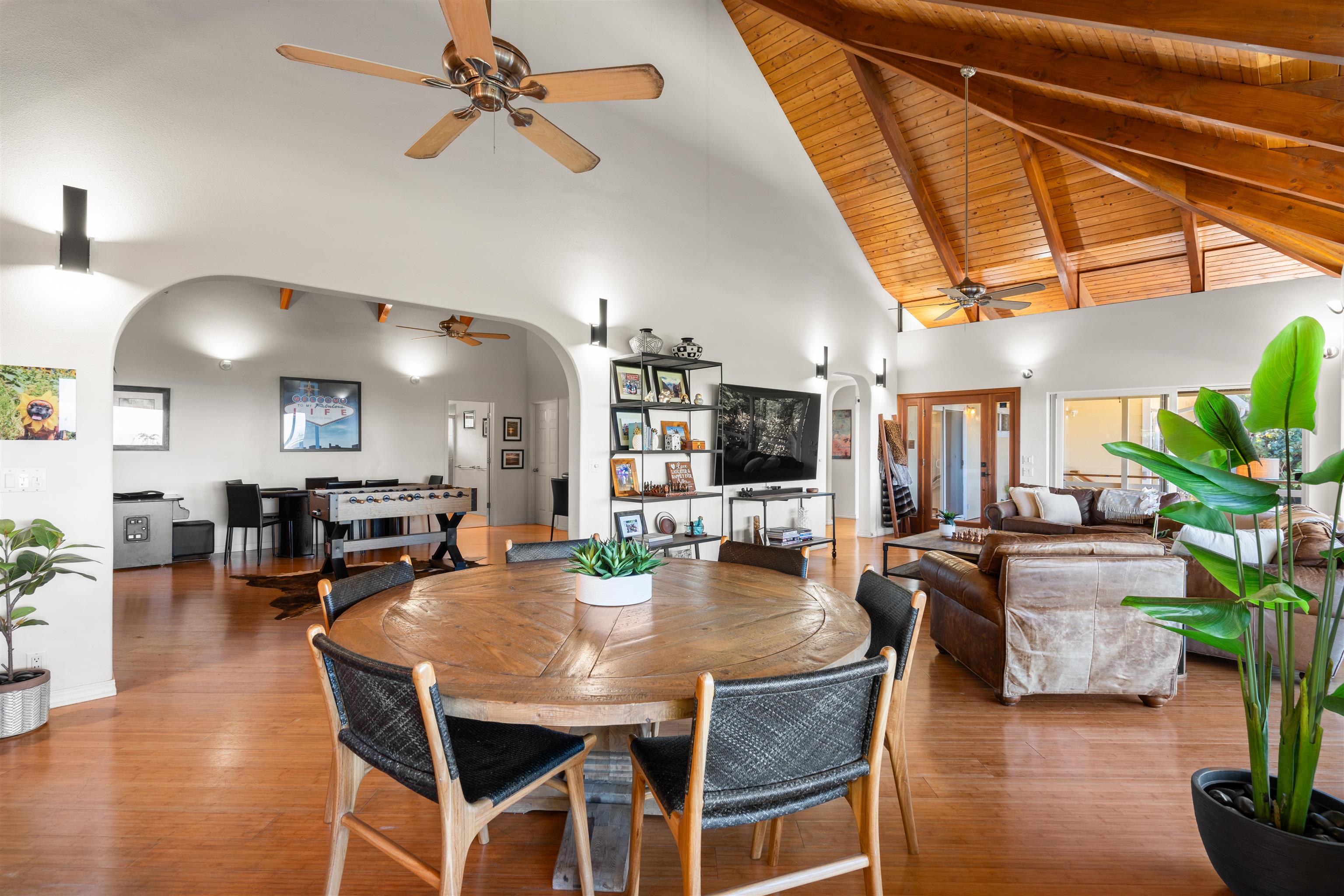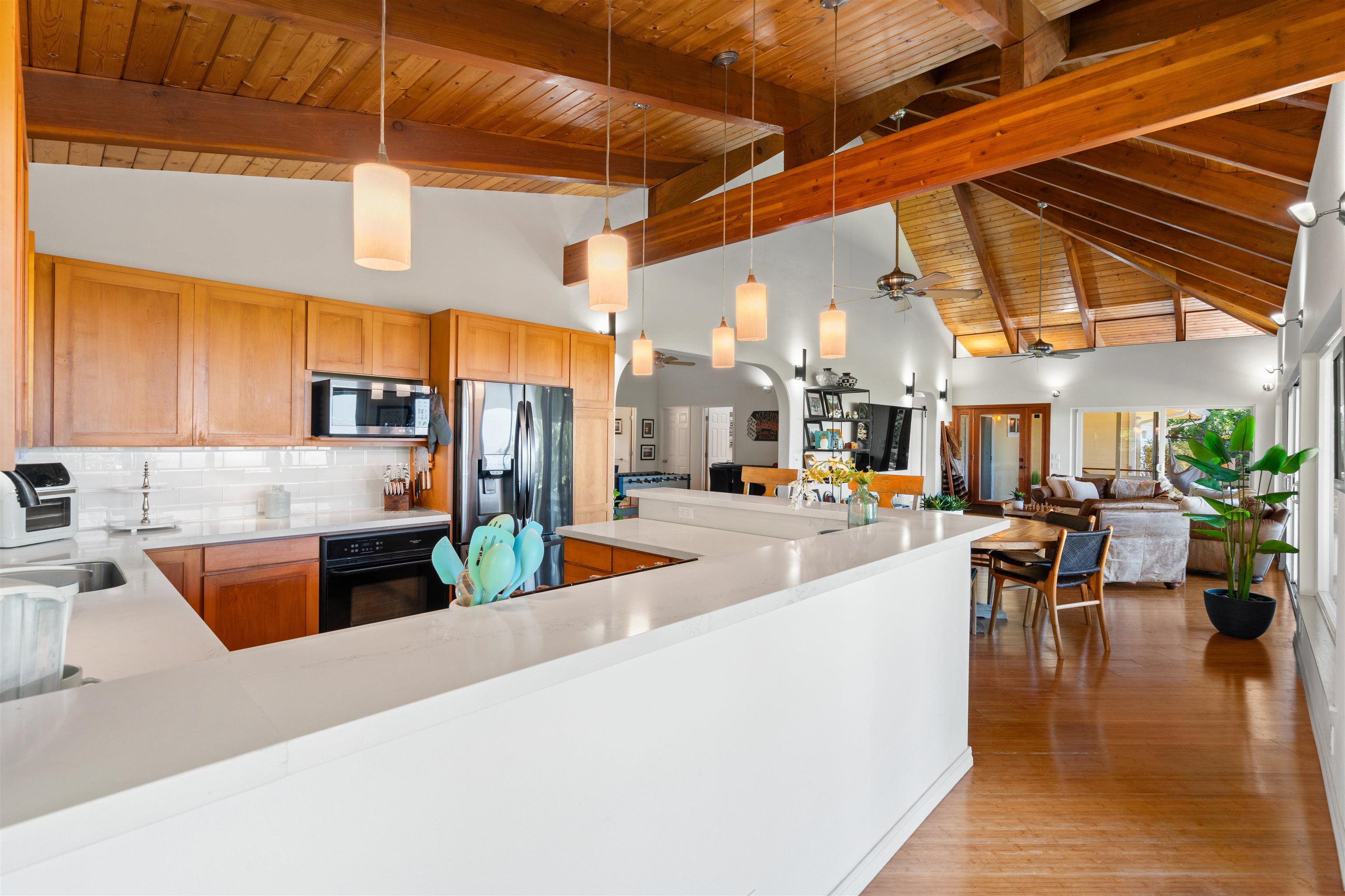 This Haiku estate delivers both ocean and Haleakala views from a spacious 4-bedroom, 3-bath home set on a fully fenced acre with an automatic private gated entrance. This is the ideal setup for accommodating a large family, or multiple guests with ample space for privacy and separation. The home features an open floor plan framed by large windows that flood the space with natural light and showcase the incredible views. The seamless flow between the kitchen, living, and dining areas creates a bright and comfortable atmosphere. Off the main living area is a massive 888 sq ft lanai with multiple seating areas and outdoor cooking space. The primary master suite includes an en-suite bathroom, a large walk-in closet with custom-built-ins, and a private lanai looking over large pasture lands towards Giggle Hill, perfect for quiet mornings or relaxing evenings. An added bonus is a guest suite that features its own entrance, kitchenette, en-suite bath and private lanai. The existing office has a custom-built in murphy bed that provides versatile sleeping accommodations and delivers a functional flow to the space. The zoning for this property is "Rural Half Acre," which offers more flexibility for development. Other notable features of the home is the oversized garage, laundry room, solar hot water and split ac. The property is surrounded by mature fruit trees– Tahitian & Key Limes, Mango, Guava, Valencia Oranges, Mandarins, and a variety of Chili peppers. Pick your own Lilikoi or Star Fruit from the property on any given day. The tropical landscaping is abundant, with plenty of space to garden, entertain, or simply enjoy the peaceful setting. Located just minutes from Haiku town and close to local farms, restaurants, and North Shore beaches, this property offers privacy, views, and a true Maui lifestyle. This property is designated as Unit A of a CPR, with a corresponding CPR-designated land area of 1.0430 acres.