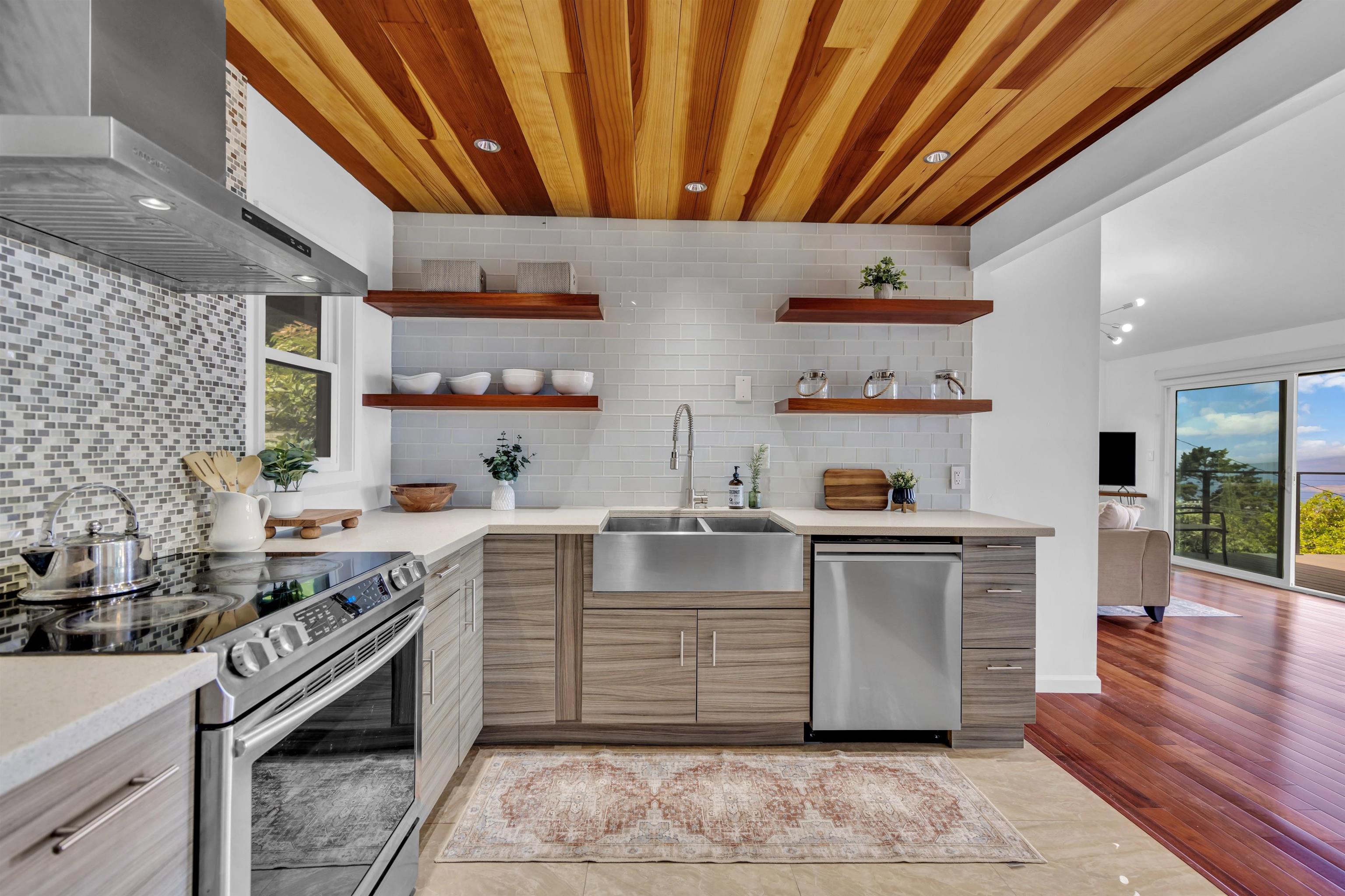 Renovated modern retreat in the heart of Kula. This beautifully updated home on ¾ of an acre offers stunning bi-coastal and year-round sunset views. The open-concept layout flows seamlessly to an expansive lanai–perfect for entertaining or quiet evenings overlooking the horizon. Features include net-metered photovoltaic, catchment water system, and elegant finishes throughout. Enjoy ample outdoor space for farming or gardening, with mature avocado trees already thriving. Private, peaceful, and move-in ready–this is Upcountry living at its best.