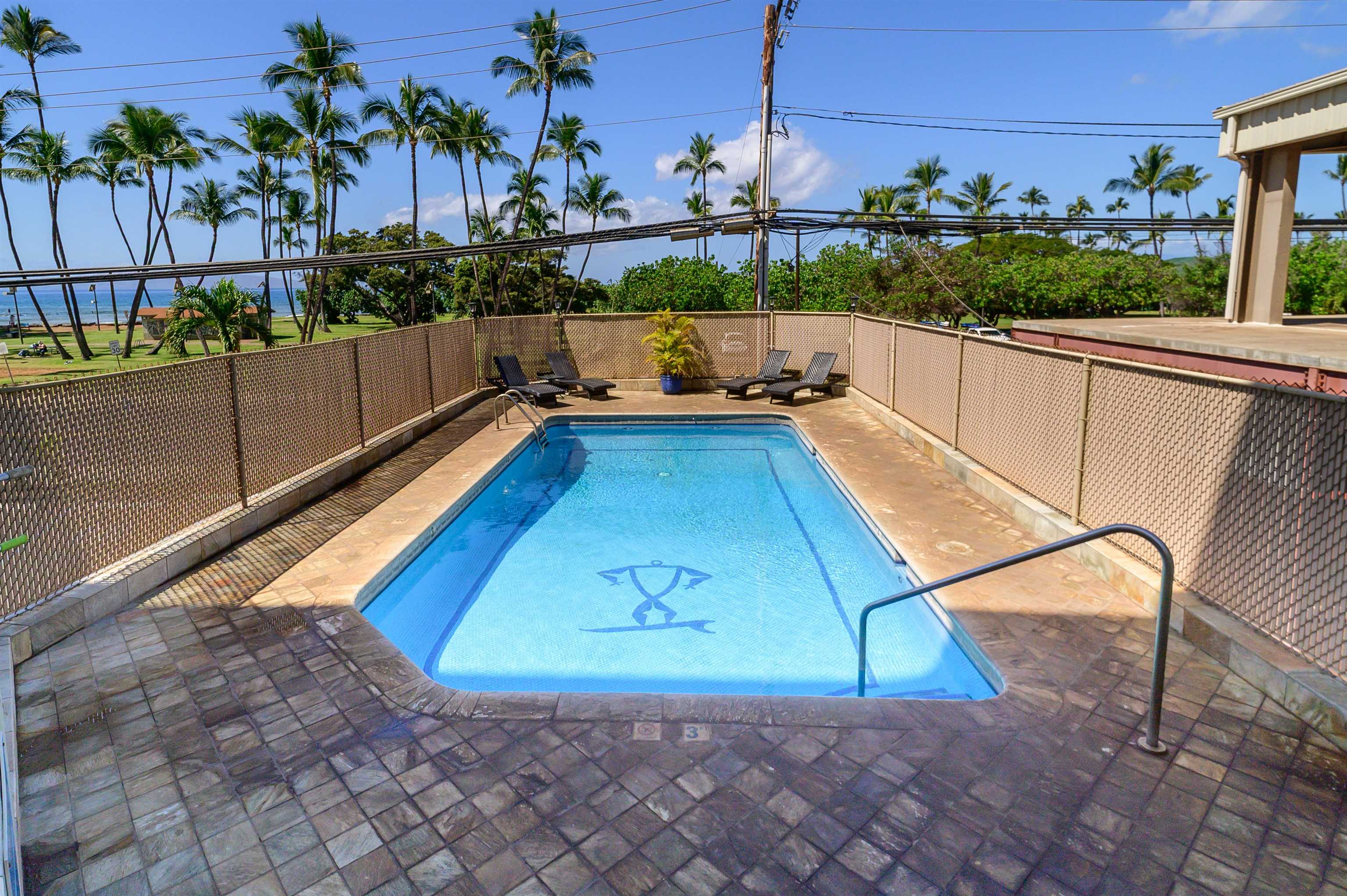 Walk to the the ocean . . . surf, snorkel or paddle? Located across the street from the Cove beach park, Island Surf combines residential and commercial condos in a highly sought after location walking distance to dining, shopping and entertainment. Neighboring Kalama Park has shaded playground, skate park, sidewalks, ball fields and skating rink. Outrigger canoe with Wailea Canoe Club. Buy with confidence. Hotel-zoned condominium allows vacation rental, second home or even business usage (2nd floor only). Enjoy sunset oceanviews from the spacious double lanai--the only floorplan of this type on the market at time of listing--off both the living room and master suite. Bonus lockoff feature means you can rent as 1br, 2br, or convert to office. You have options. Recently remodeled unit 201 has modern furniture, tile flooring and baseboard throughout, granite countertops, stainless appliances including dishwasher and new washer/dryer. Three-zone Fujitsu split AC system cools both bedrooms and living room. Enormous secured owners' closet. Fully furnished and turnkey. Make this tremendous value in S Kihei yours!