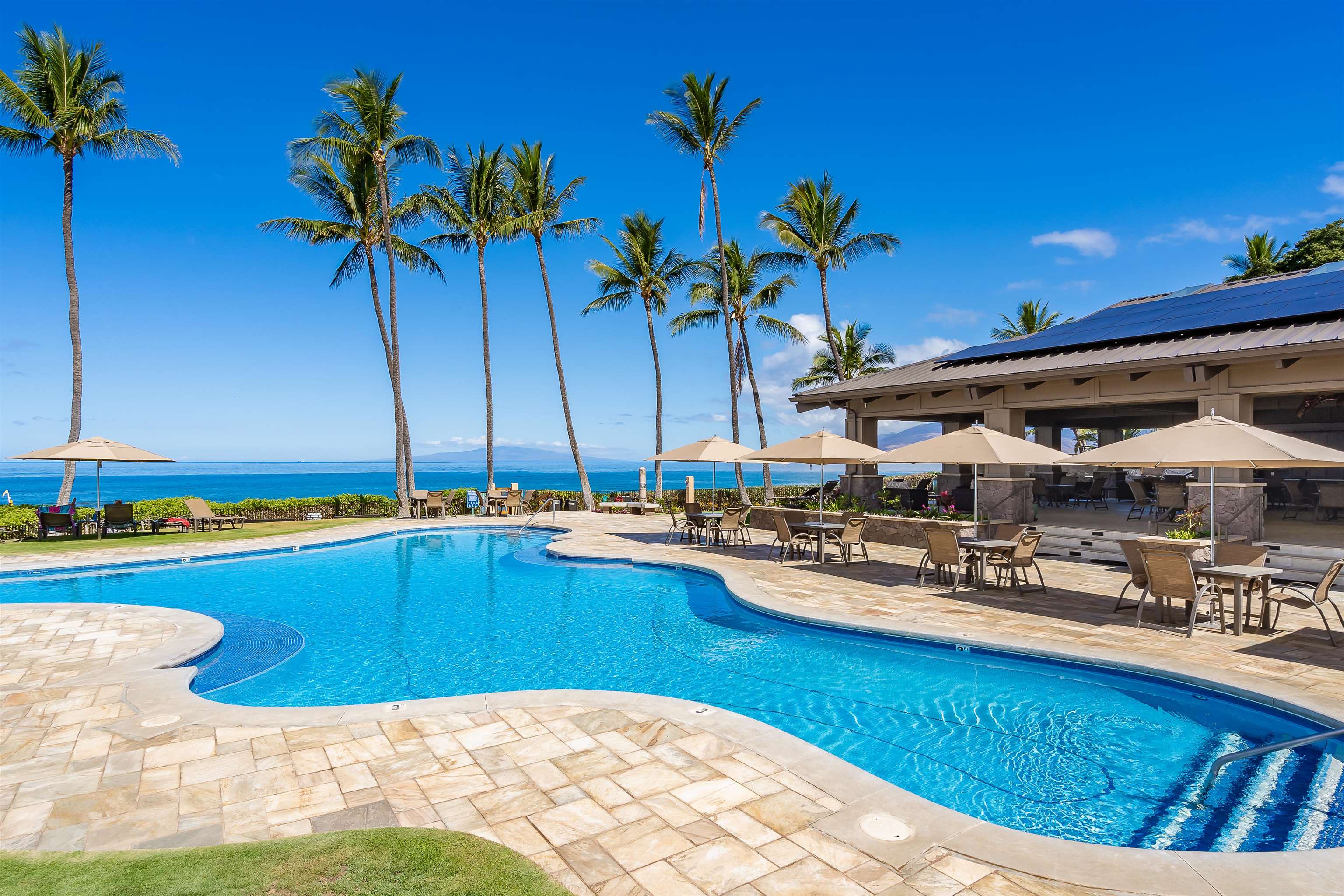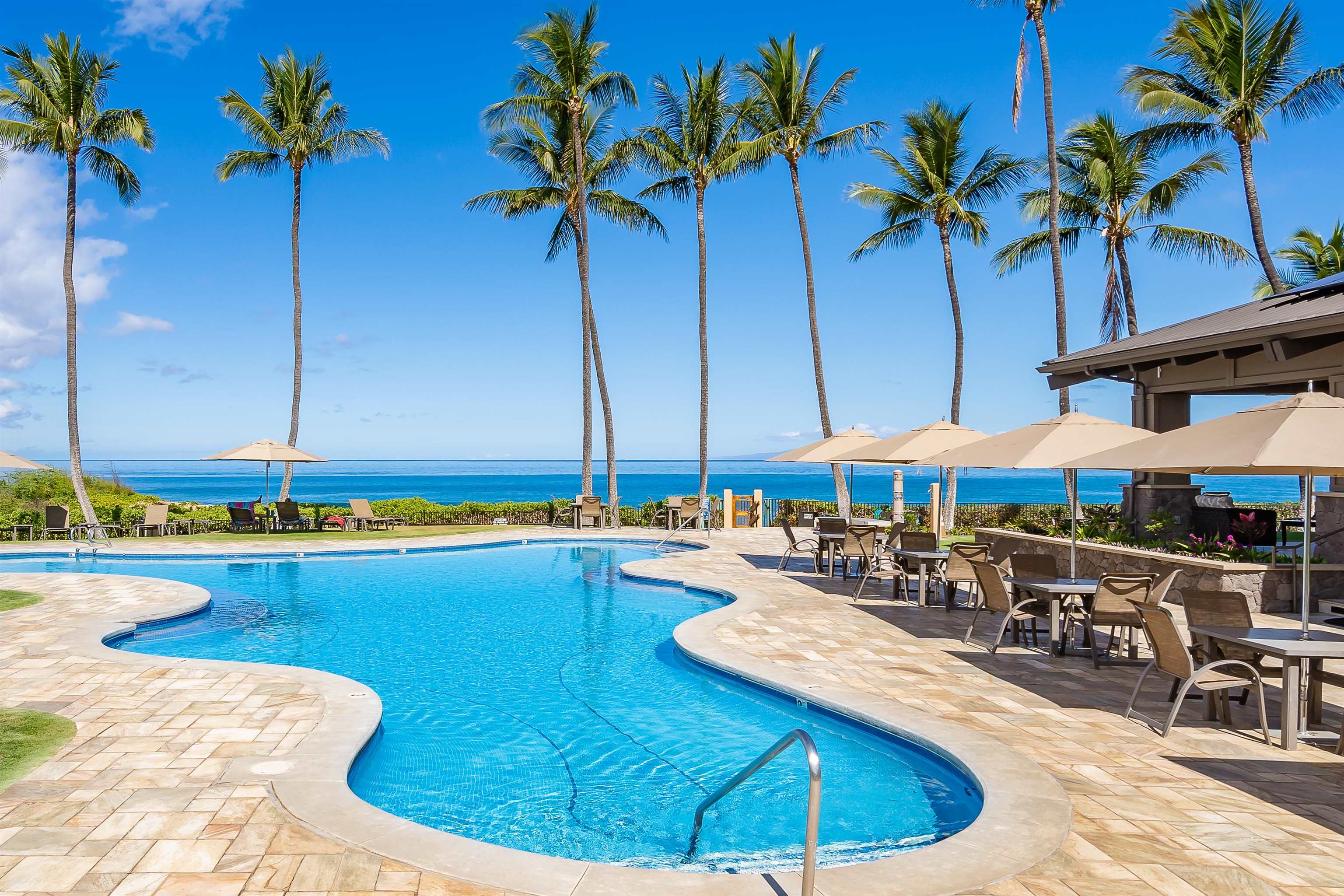 The 2 Bedroom Lower Village unit you've been waiting for! Arguably the BEST unit in all of Wailea Ekahi! It was designer renovated from floor to ceiling over a 6 month period with no expense spared, and now exudes elegance and is the epitome of luxury within Wailea Ekahi. Boasting an expansive ocean view (with NO STAIRS!) in a serene, quiet atmosphere, this unit features porcelain tile floors, a new split-system AC, and a bright & airy layout. The gourmet open-concept kitchen dazzles with new appliances, quartzite countertops, laminate cabinets and a premium backsplash. Wailea Ekahi is a tropical oasis sitting on Keawakapu Beach, one of Maui’s best beaches, and is surrounded by resort hotels, shopping centers, and championship golf courses. Located on the greenbelt in one of Ekahi's most quiet and tranquil spots, this setting offers unmatched serenity and breathtaking ocean views. One of Ekahi’s four private pools is just steps away from your lanai, and a newly renovated beachfront pool pavilion is only a short stroll down a gorgeous greenbelt. There are two luxurious master suites — one with a king-size bed and the other expanded to accommodate two queen beds. each with a beautifully appointed bathroom and high-end fixtures, one featuring a walk-in tiled shower and the other a tub/shower combination. There are also three spacious, private walk-off lanais. One off each bedroom and another that is accessible from both the living area and dining room, offering cozy seating and a serene and private escape amidst Ekahi’s lush gardens. Offered fully furnished and turnkey ready with an impressive vacation rental history, this world-class condo is anxiously anticipating an owner that will not settle for anything less than the very best that Wailea Ekahi has to offer.
