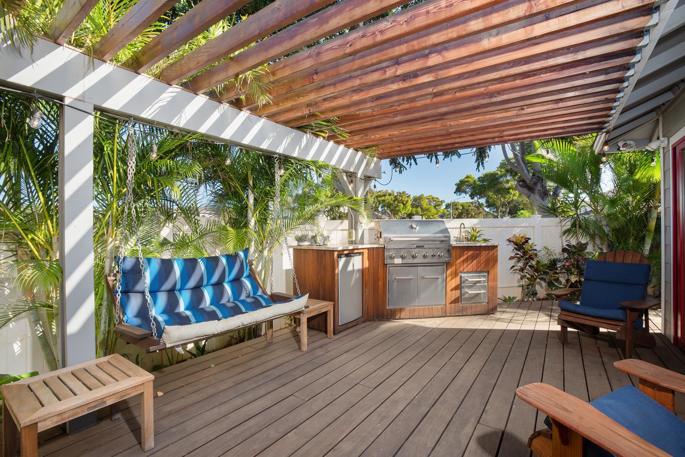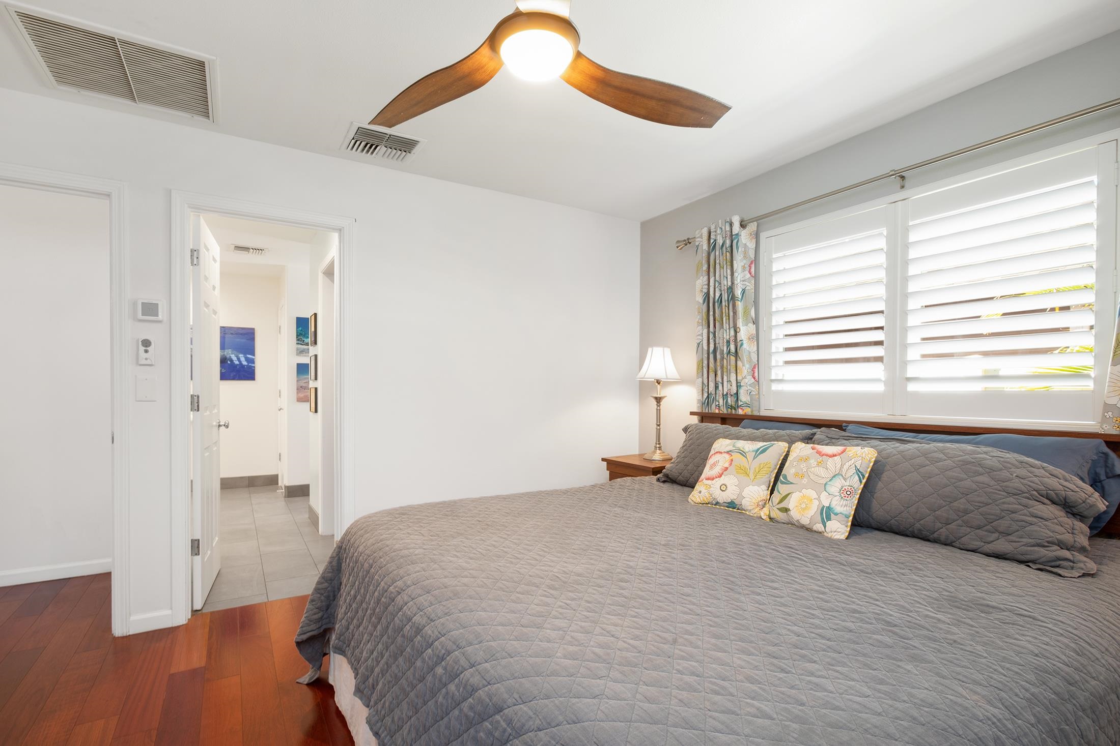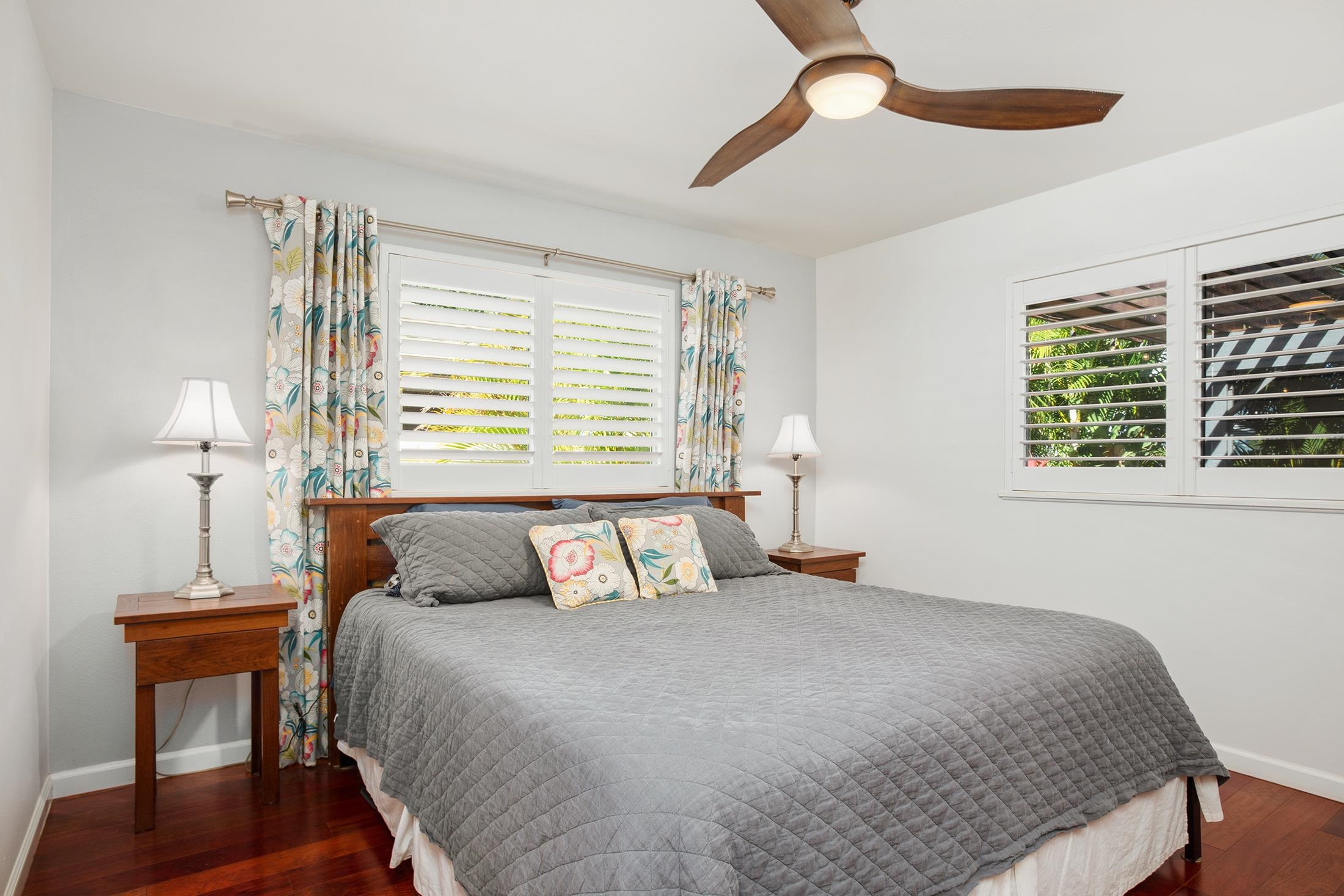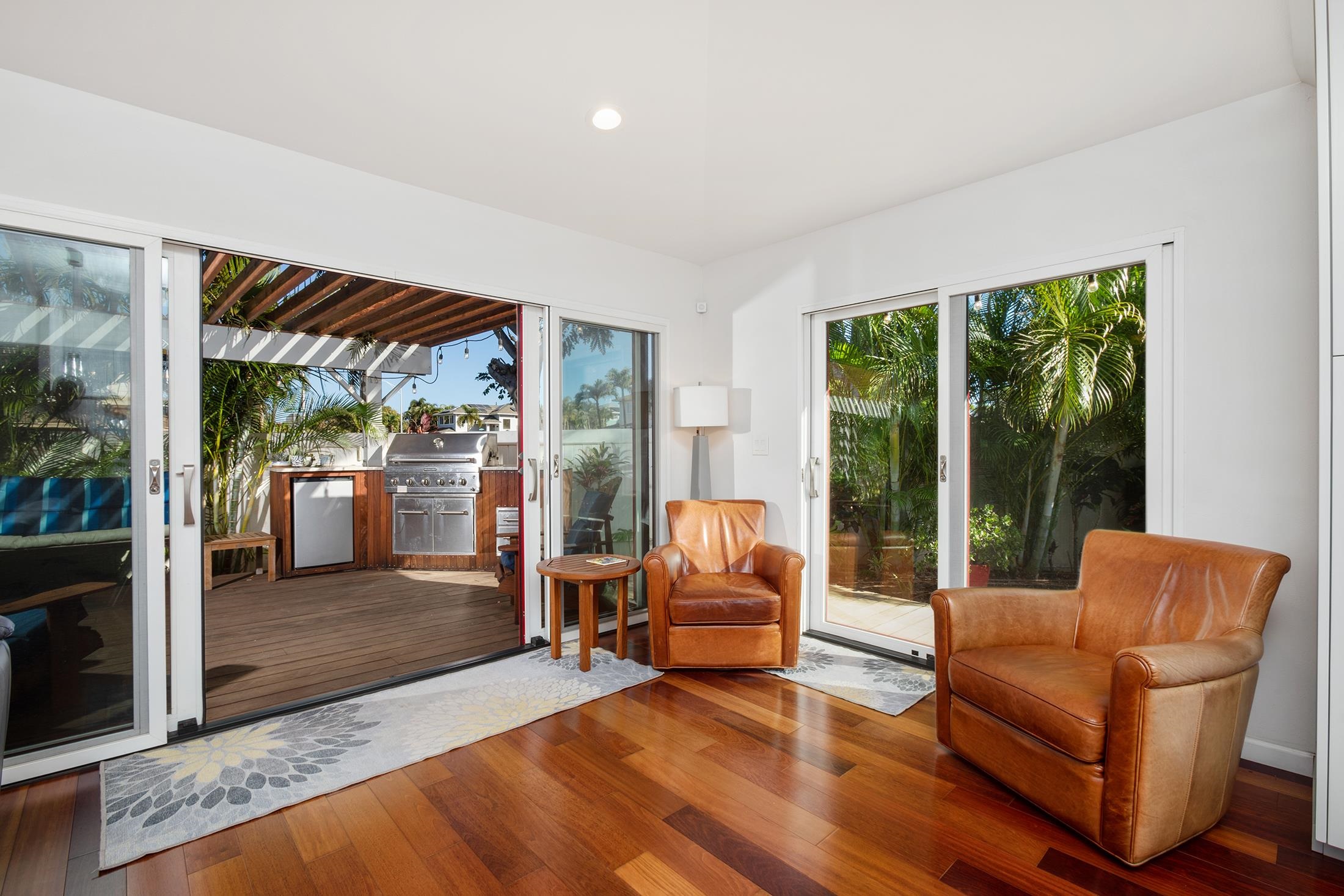 This is not your typical Pi'ilani Villages home. Brazilian Cherry wood flooring flows throughout the living spaces, and custom finishes greet you in every room. The kitchen is elegant and highly functional, with custom-built cabinetry and mahogany soft-close drawers, granite countertops, and a spacious island with an undermount sink and dishwasher. Premium KitchenAid appliances include a gas cooktop, convection oven, side-by-side refrigerator, dual-zone wine fridge, and a prep sink overlooking the gardens. Velux skylights fill the space with natural light, creating an inviting hub for everyday living and entertaining. The rear opens to a level 600-square-foot lanai through Pella sliding glass doors, and features an Ipe wood deck, redwood pergola, and a fully equipped outdoor kitchen with a 36” KitchenAid gas grill, granite counters, sink, and refrigerator, perfect for year-round enjoyment. An outdoor shower and irrigated gardens complete the private retreat. The primary suite has a spa-like bath with a custom stone and tile shower and rain shower head, while plantation shutters and modern ceiling fans enhance comfort throughout the home. Major upgrades include a Lennox three-zone air-conditioning system, whole-house water softener, reverse-osmosis kitchen system, tankless water heater, and upgraded 200-amp electrical service. Home features 26 owned photovoltaic panels and net metering, producing approximately 8.7 — 8.8 megawatts annually. The average net electric bill in 2025 was just $65 per month. Additional highlights include epoxy-coated garage floors, stacked Samsung washer/dryer, and recently replaced window screens. Your buyers will thank you for showing them this beautiful, well-priced luxury home.