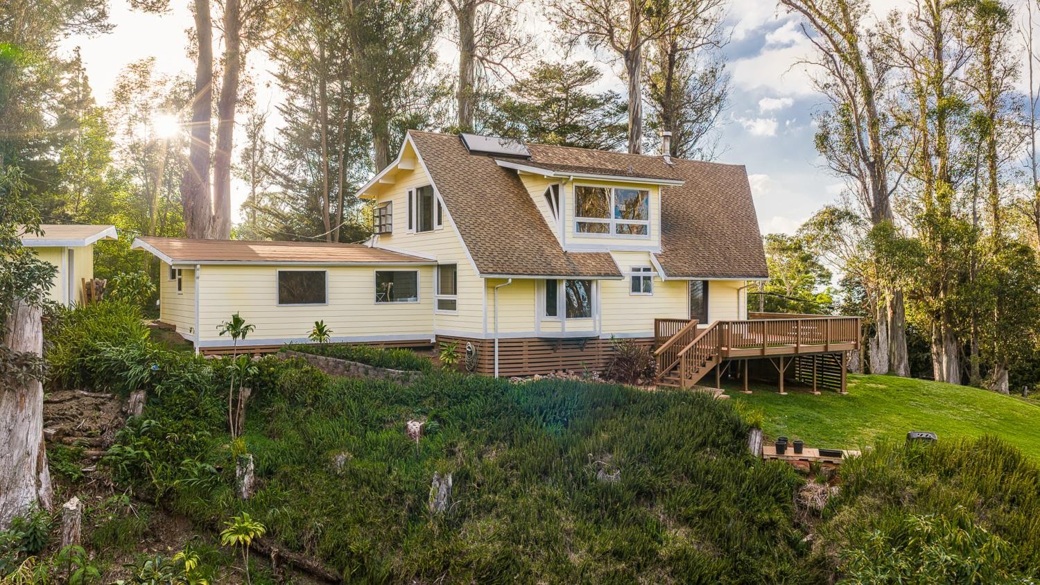 Perched in the serene elevations of Upcountry Maui, this property combines breathtaking views with privacy and expansive land, offering exceptional potential for the future. At approximately 3,000 feet above sea level, it enjoys cool, crisp mountain air and a unique natural setting. Consisting of two separate TMKs totaling 1.14 acres. This Lindal Cedar residence offers three bedrooms and two bathrooms on approximately 0.20 acres, along with an adjacent 0.94-acre agricultural parcel that is currently seventh on the County water meter waitlist. Both parcels are being sold together, allowing flexibility for expansion, creative use, or long-term planning. The property embraces its surroundings with vaulted ceilings and large windows that capture views of mature trees and distant ocean scenery. With a wraparound deck, enjoy a warm and inviting interior with a strong connection to the outdoors. Featuring a welcoming open-concept layout, the home is designed for both effortless daily living and seamless entertaining. With the adjacent parcel, the property’s potential is elevated for agricultural use, thoughtful accommodation, or future expansion.
