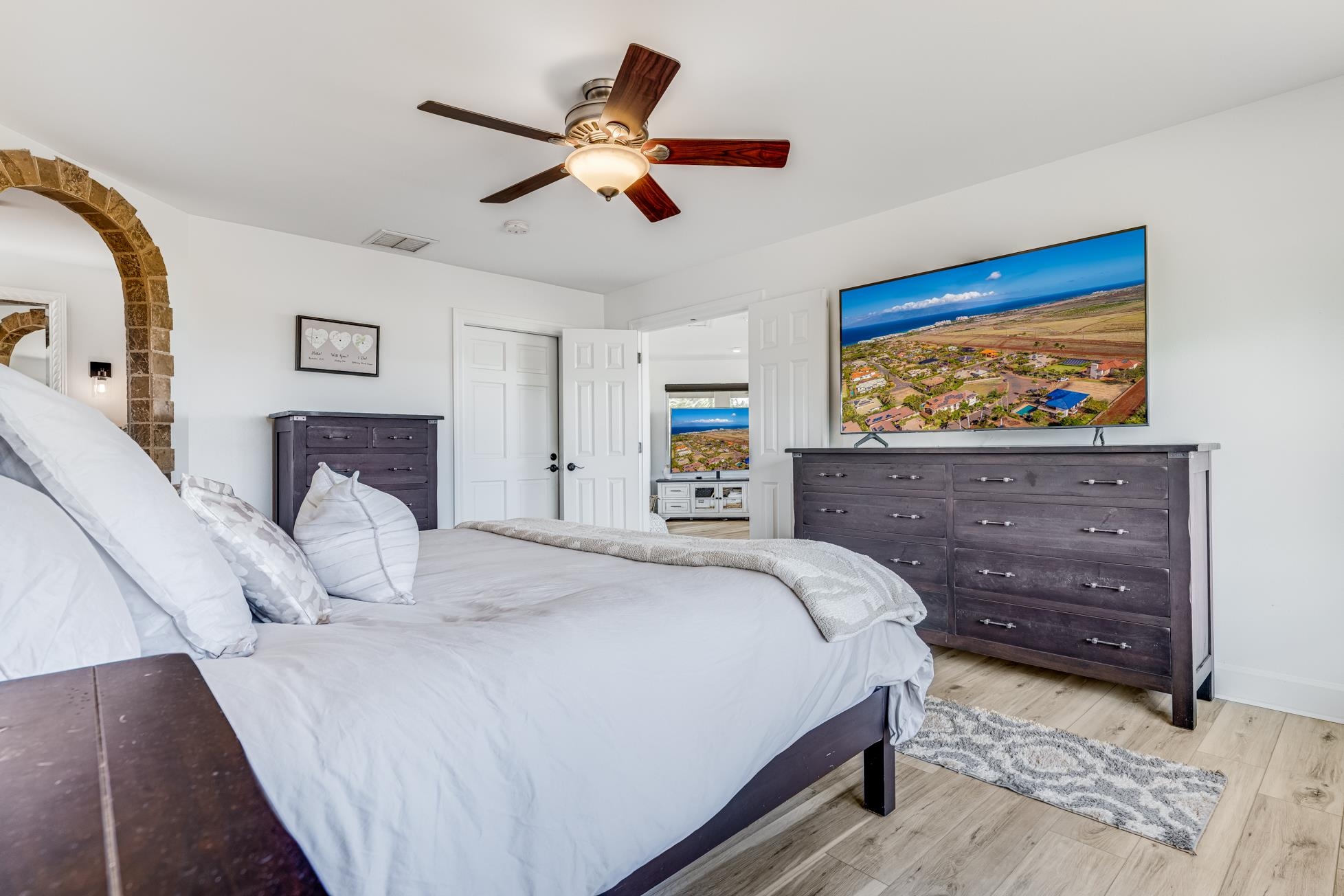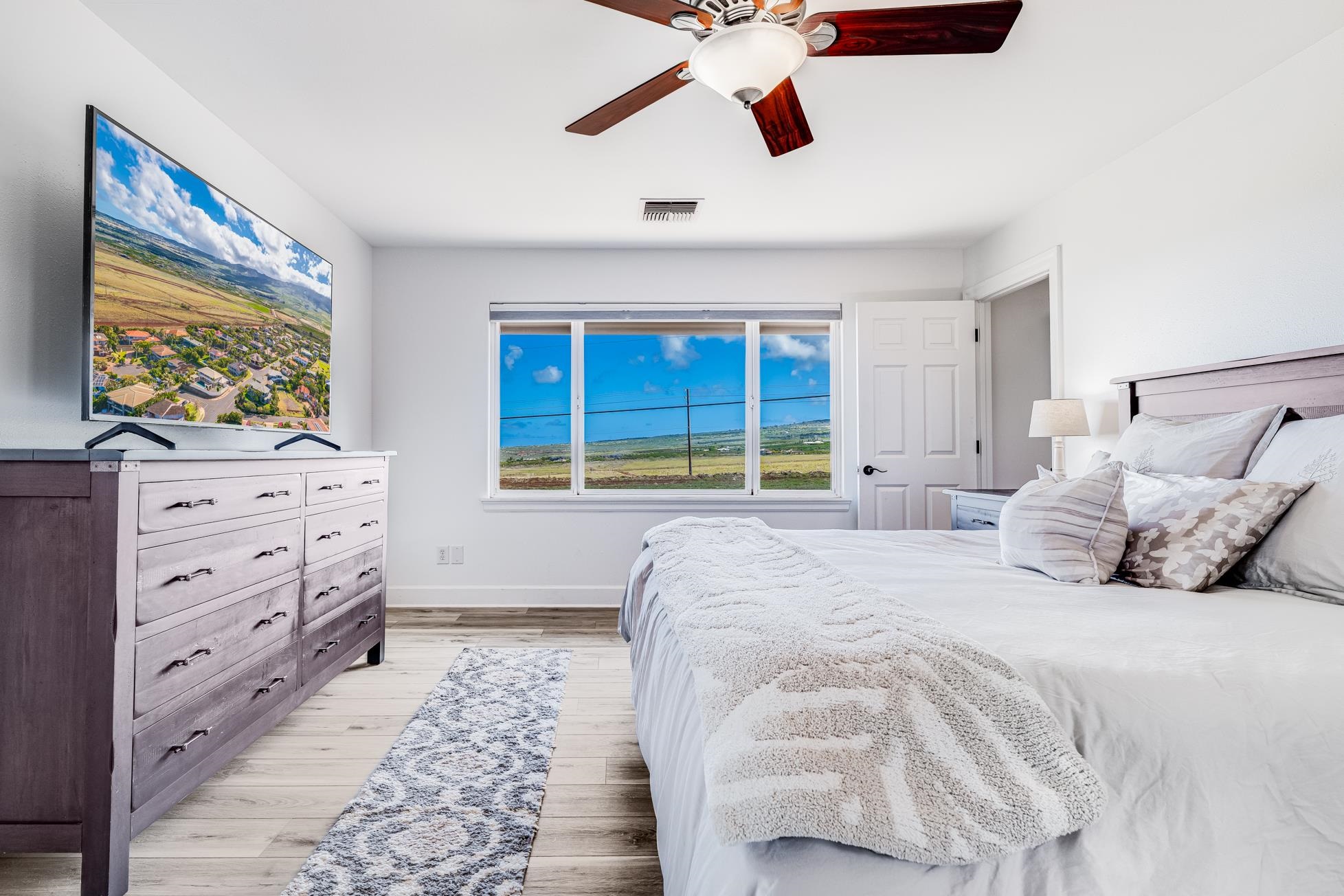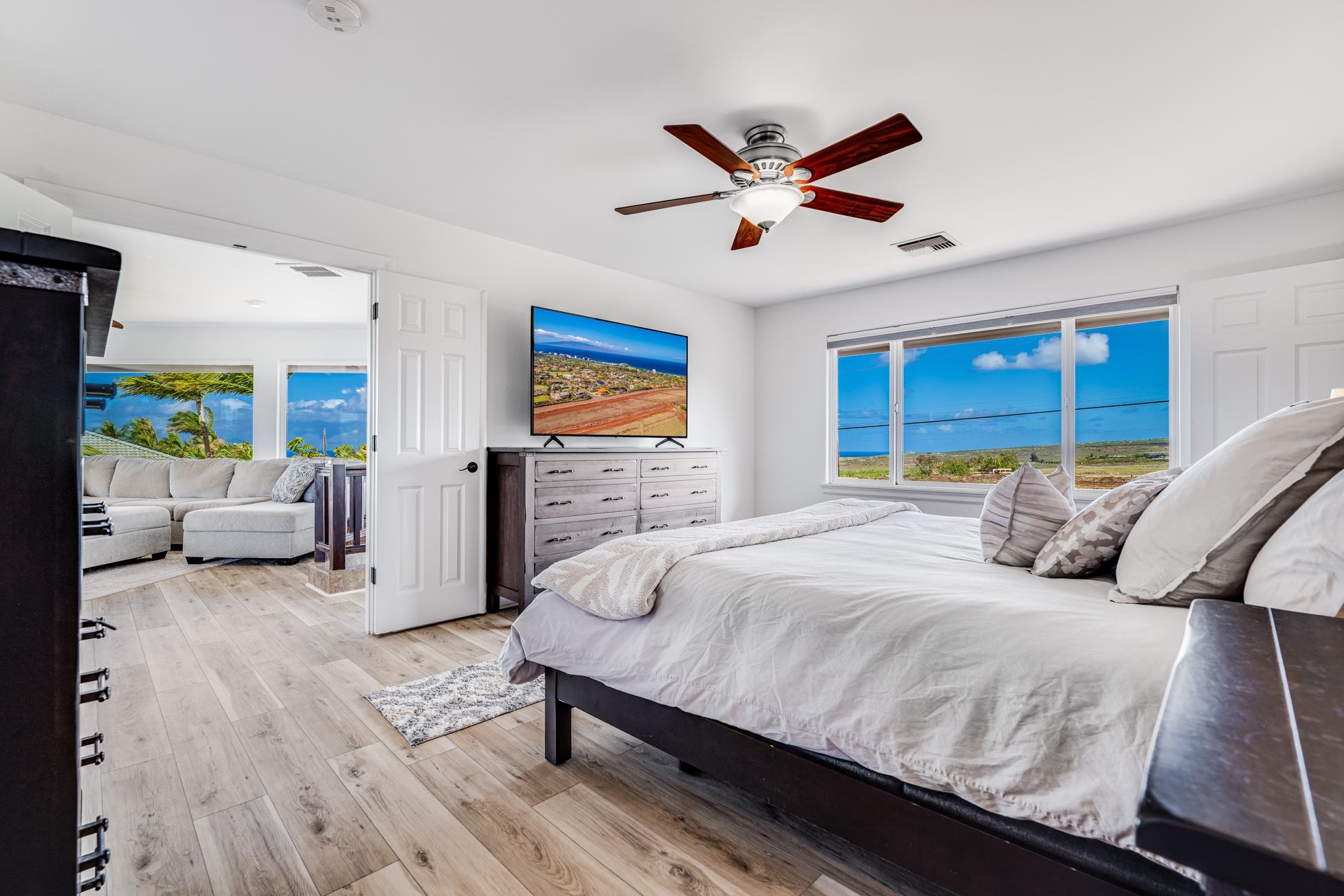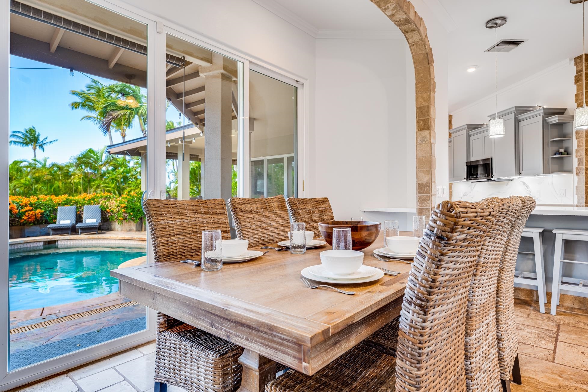 Nestled within the prestigious Kaanapali Hillside community on the private end of a cul-de-sac, 13 N. Piki Place emerges as a pinnacle of luxury living just up the hill from the expansive sandy beaches of Kaanapali. This west/south west-facing masterpiece, positioned on one of the largest fenced-in, grassy, and flat lots of 12,749 square feet in the neighborhood, promises breathtaking sunset views from the expansive master suite and lanai upstairs–an unrivaled daily spectacle of colors and views of Molokai and Lanai that elevate the art of island living. This stunning residence boasts four spacious bedrooms, three full bathrooms, a two-car garage with gleaming epoxy-coated floors, and a private pool oasis framed by fencing and sealed deck, perfect for both serene relaxation and lavish entertaining. A comprehensive transformation between 2022 and 2024 has elevated this home to a new echelon of sophistication and comfort. The entire interior has been freshly painted, harmonizing with new lighting throughout and sleek ceiling fans in each bedroom to create an ambiance of timeless elegance. The kitchen, a chef’s dream, features all-new appliances, countertops, and a thoughtfully added pass-through window, and pantry; while upstairs, new flooring, carpet, and a custom closet system redefine elegant living. Every bathroom has been reimagined with new toilets, sinks, vanities, and shower doors, complemented by the addition of two sets of washers and dryers in the laundry room for ultimate convenience. This residence is as forward-thinking as it is beautiful, crowned by a state-of-the-art solar Tesla Roof paired with four Tesla batteries and a Tesla car charger in the driveway–ensuring sustainability meets style. Modern comforts abound with two new AC units, a new water heater, a water softening system, and a new pool pump, all seamlessly integrated into the home’s flawless design. New blinds and windows upstairs enhance the views, while shutters on windows, new doors, and doorknobs add refined touches to every corner. 13 N. Piki Place is more than a home–it’s a statement of unparalleled blend of cutting-edge upgrades and Maui’s iconic indoor/outdoor natural living. This is your opportunity to own a slice of paradise, reimagined for the most discerning buyer.