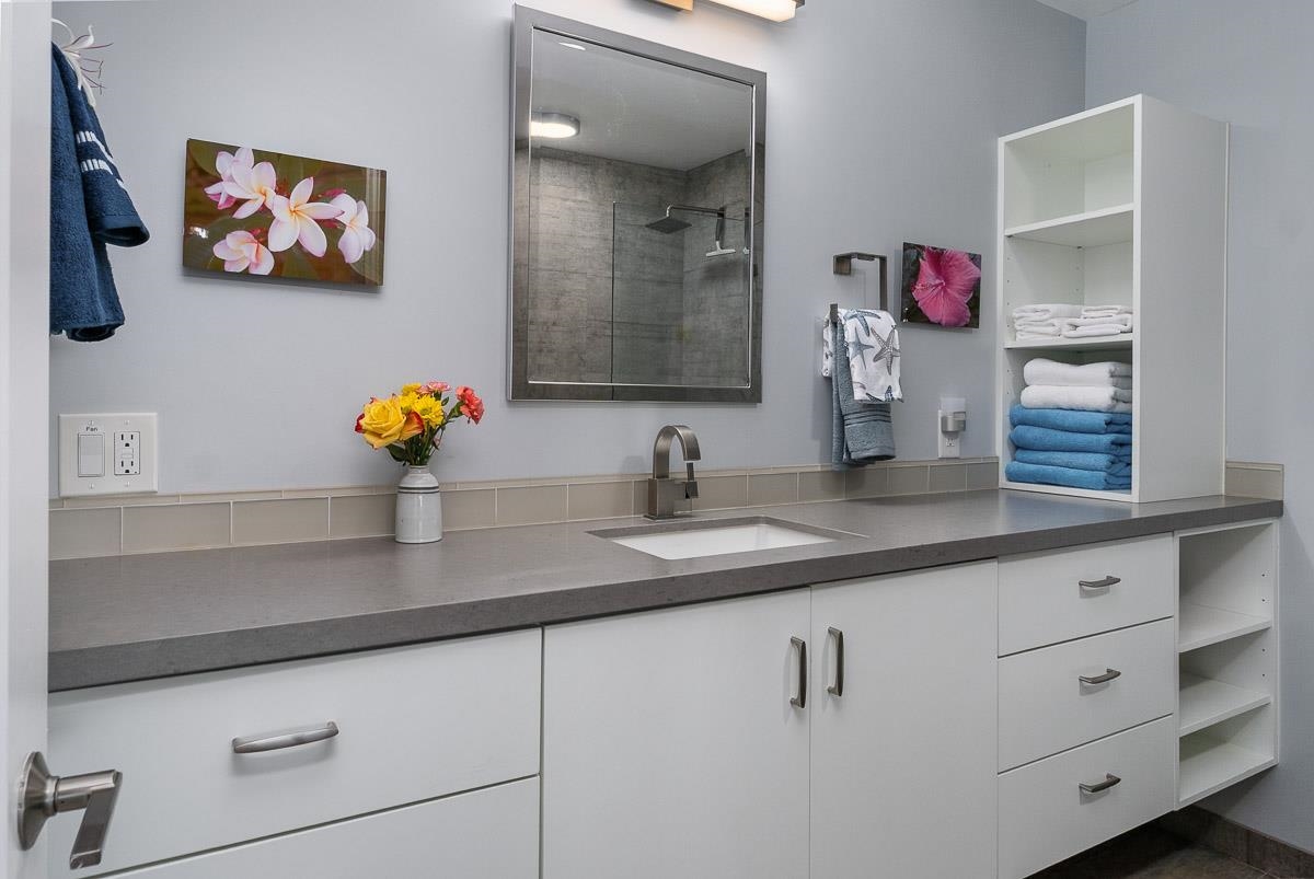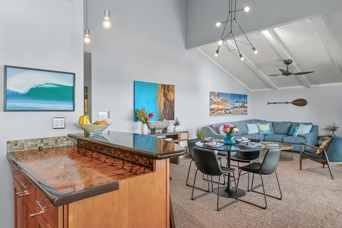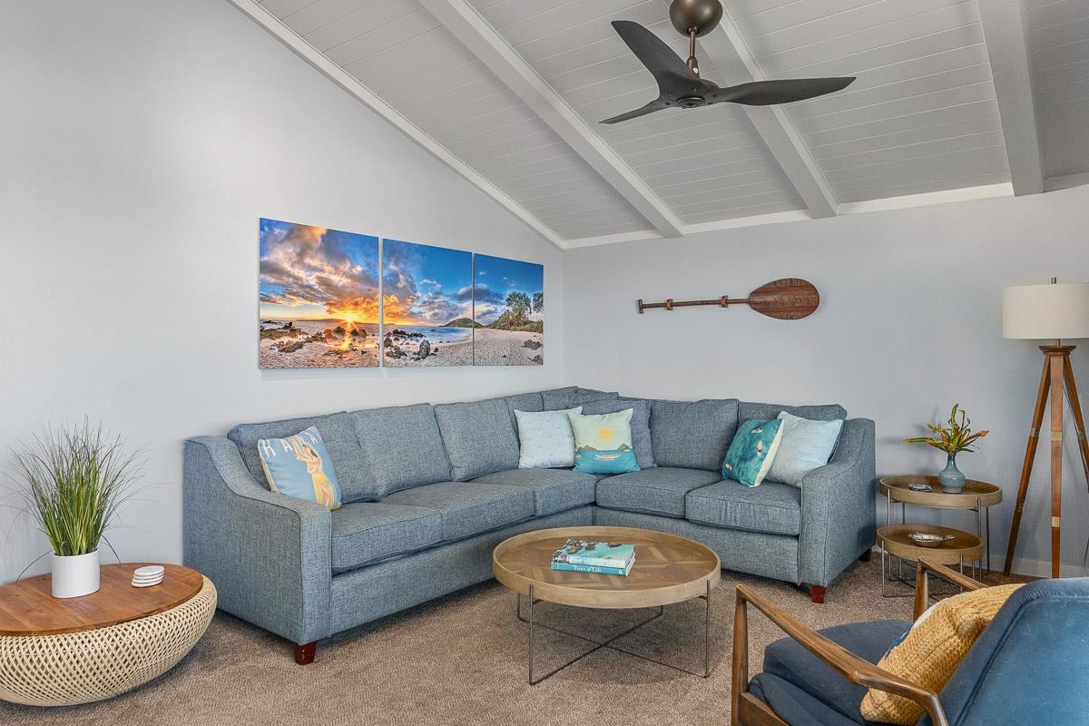 Step into this stunning, beautifully remodeled 1 bedroom, 2 bath condo, and be immediately captivated by sweeping ocean views that stretch from Makena to the West Maui Mountains. Inside, soaring ceilings and abundant natural light create an open, airy living space that seamlessly frames the expansive ocean panorama. The condo has been thoughtfully updated with modern finishes throughout, including upgraded kitchen appliances, walk-in showers, custom vanities and lighting, split air conditioning, premium roller shades, and luxurious furnishings. The spacious bedroom features its own private lanai, additional storage, and a beautifully appointed en-suite bath. Designed for comfort and versatility, this generously sized condo easily accommodates four guests with a sleeper sofa, and inviting furnishings. Located in a highly sought-after community just above the Wailea Blue Golf Course. This exceptional property offers the perfect blend of tranquility and convenience, with Wailea's premier restaurants, bars, and shopping just a short and easy walk away. Offered fully furnished with only minor exclusions, this is a rare opportunity to own a turnkey retreat in the coveted Wailea Ekolu community. Do not miss the chance to make this exceptional island getaway your own!