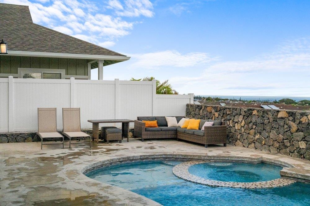 Beautiful home with in-ground pool and spa on spacious corner lot in the highly desirable Kealohilani neighborhood at Kehalani. Incredible views of the North Shore, Haleakala, and West Maui mountains from all throughout the house and pool area. 5 split system A/C units keep the entire 3 bedroom, 2.5 bathroom home comfortable. The photovoltaic system helps keep things affordable. This only seven year old home, just had the exterior professionally painted. Stamped cement walkway and pool deck, over 100' of tight joint rock wall, Privacy fence, and gates create an ideal outdoor sanctuary. Conveniently located, near shopping, hospital, airport, Iao Valley, golf, and ocean activities. Please check out the video link above.