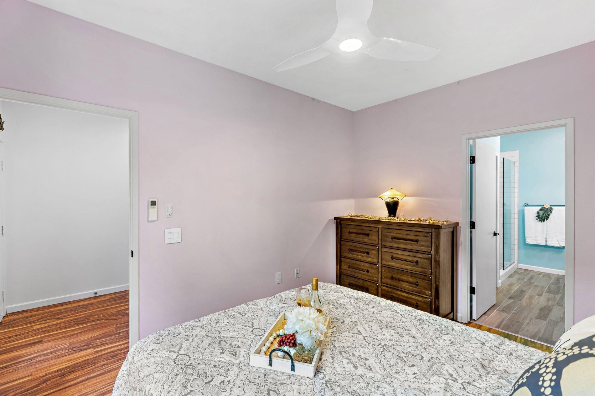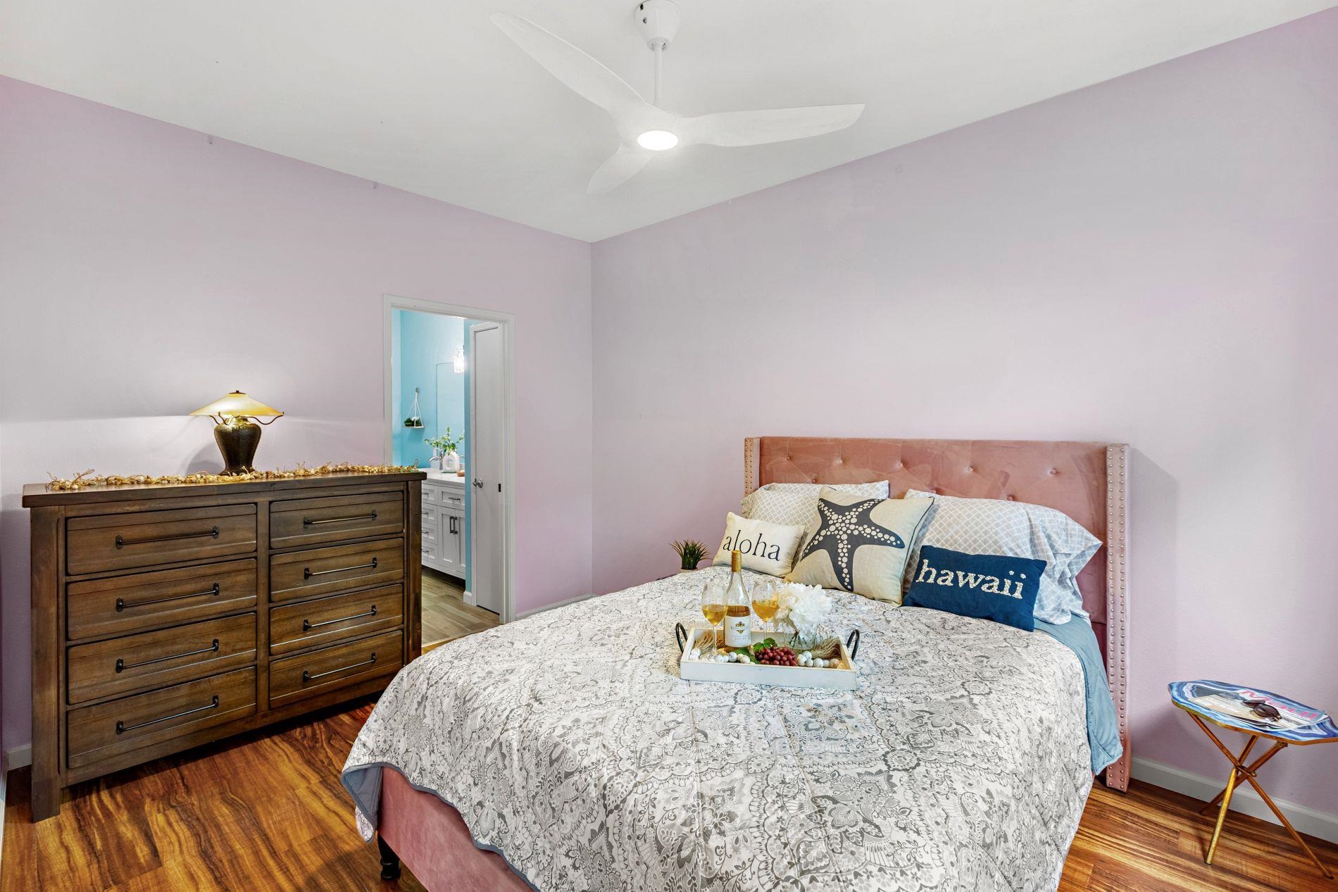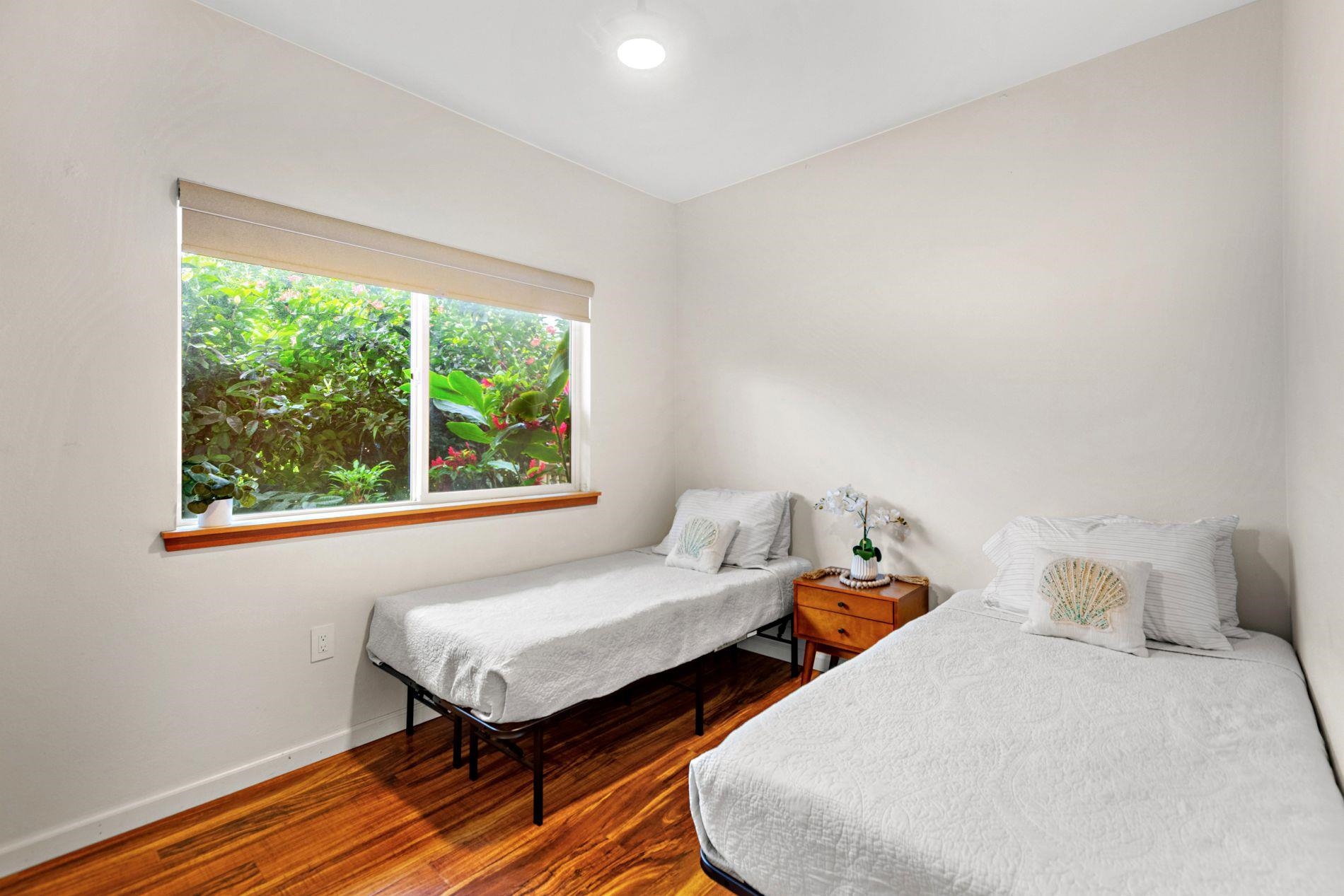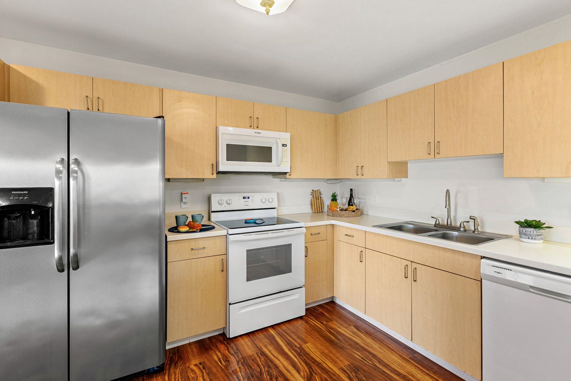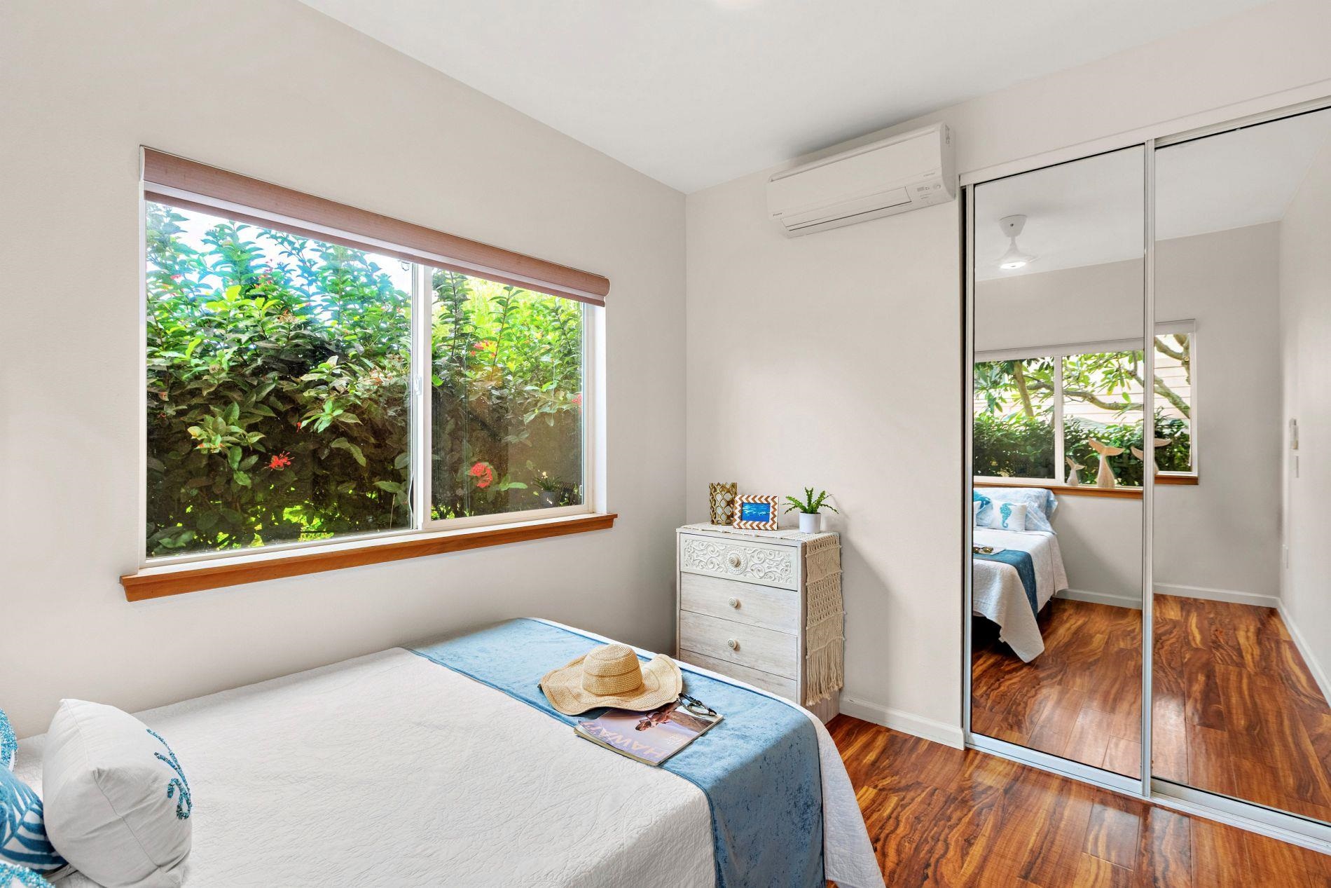 Largest floor plan in Napili Villas. This two-story unit offers the primary bedroom and two guest bedrooms on the ground floor, with the kitchen and living room upstairs featuring a partial ocean view. The layout provides good separation between living and sleeping areas. Renovations were completed in 2021 and include new flooring, fresh interior paint, split AC units, and updated bathrooms with new vanities, tile flooring, tiled showers with glass enclosures, and new fixtures. The unit includes two deeded parking stalls (85 and 86) with convenient visitor parking nearby. Located close to Napili Market for shopping and just minutes from Napili Bay for beach and ocean activities, this is a solid West Maui location