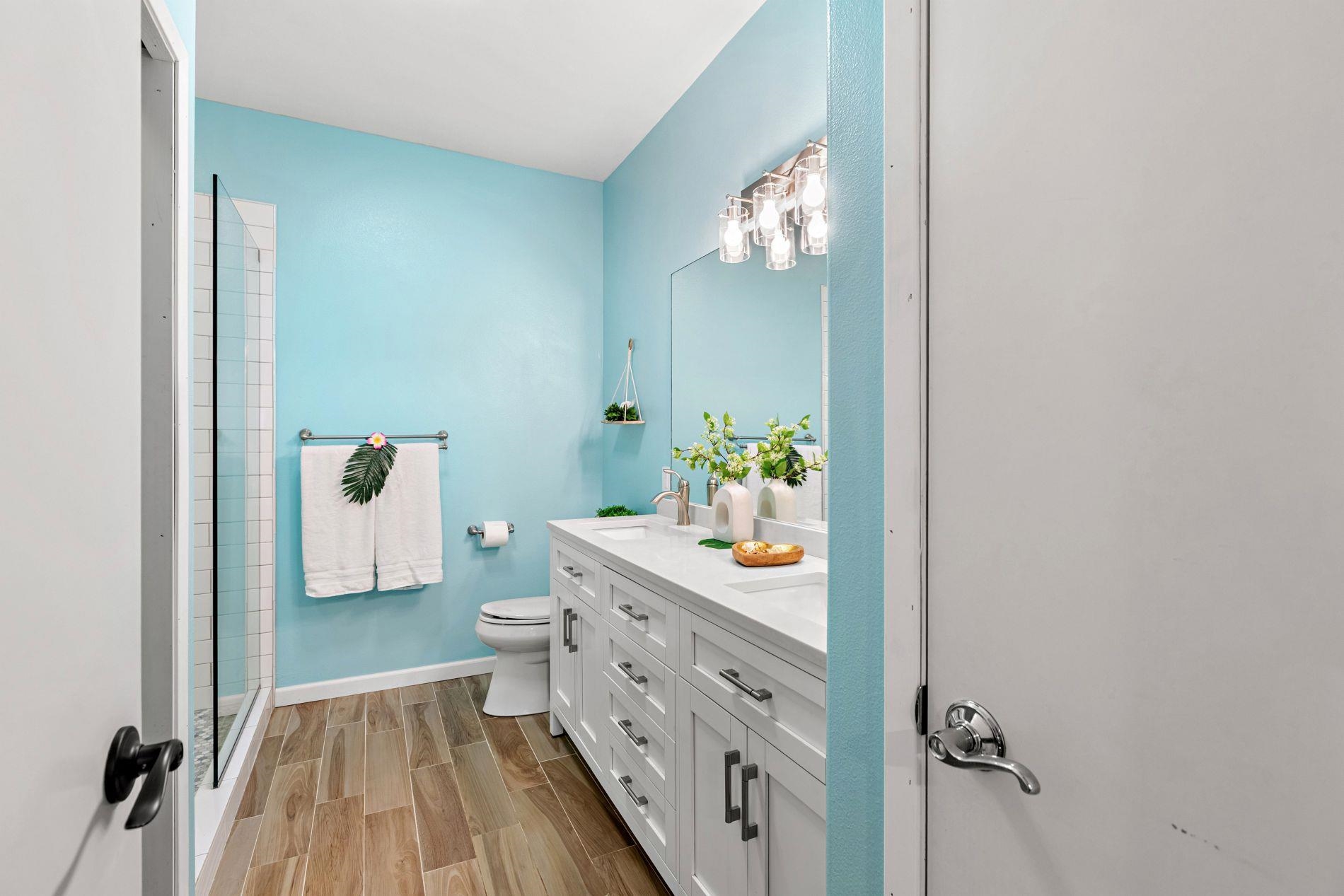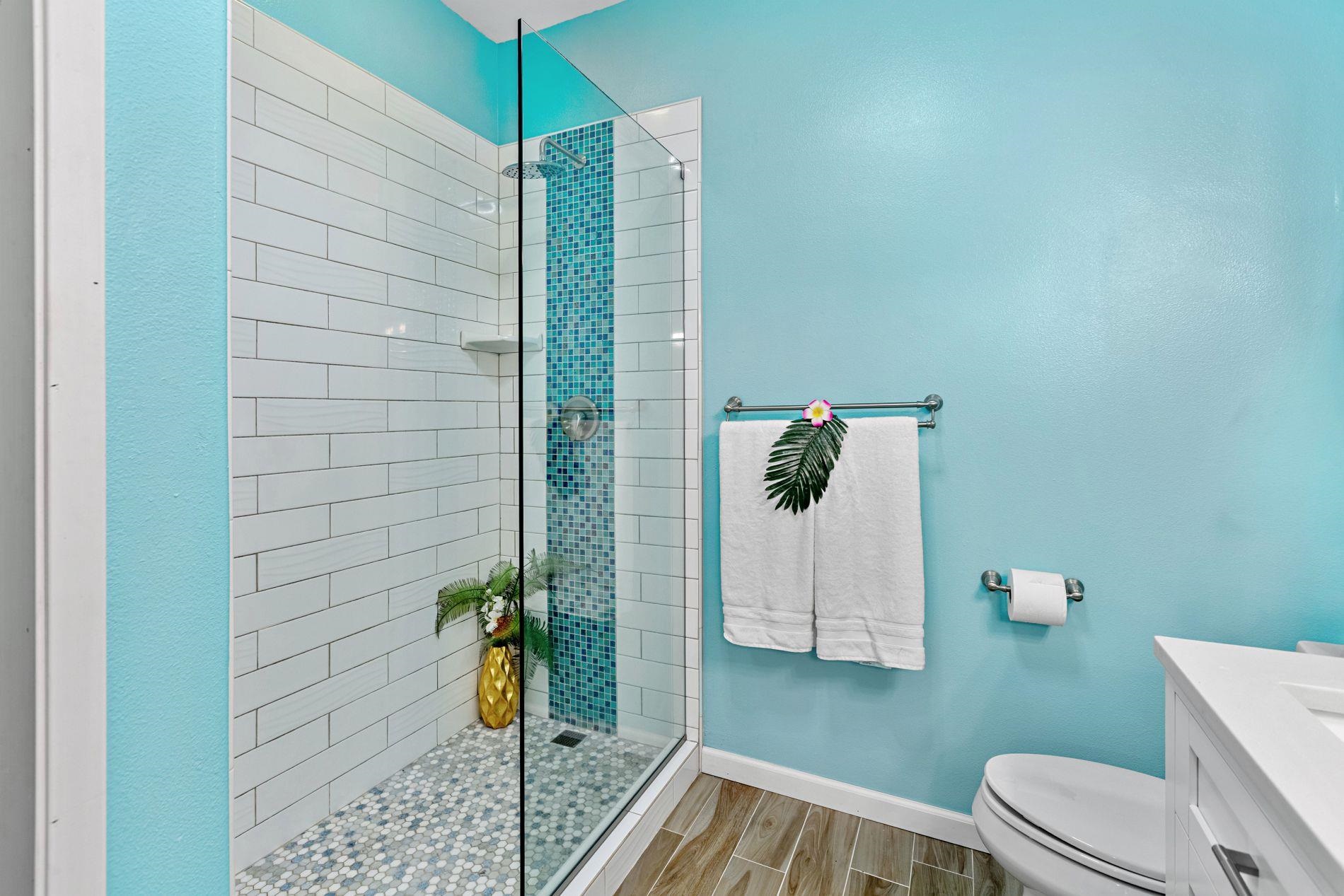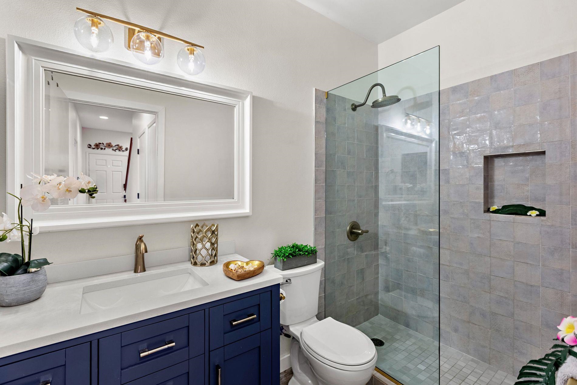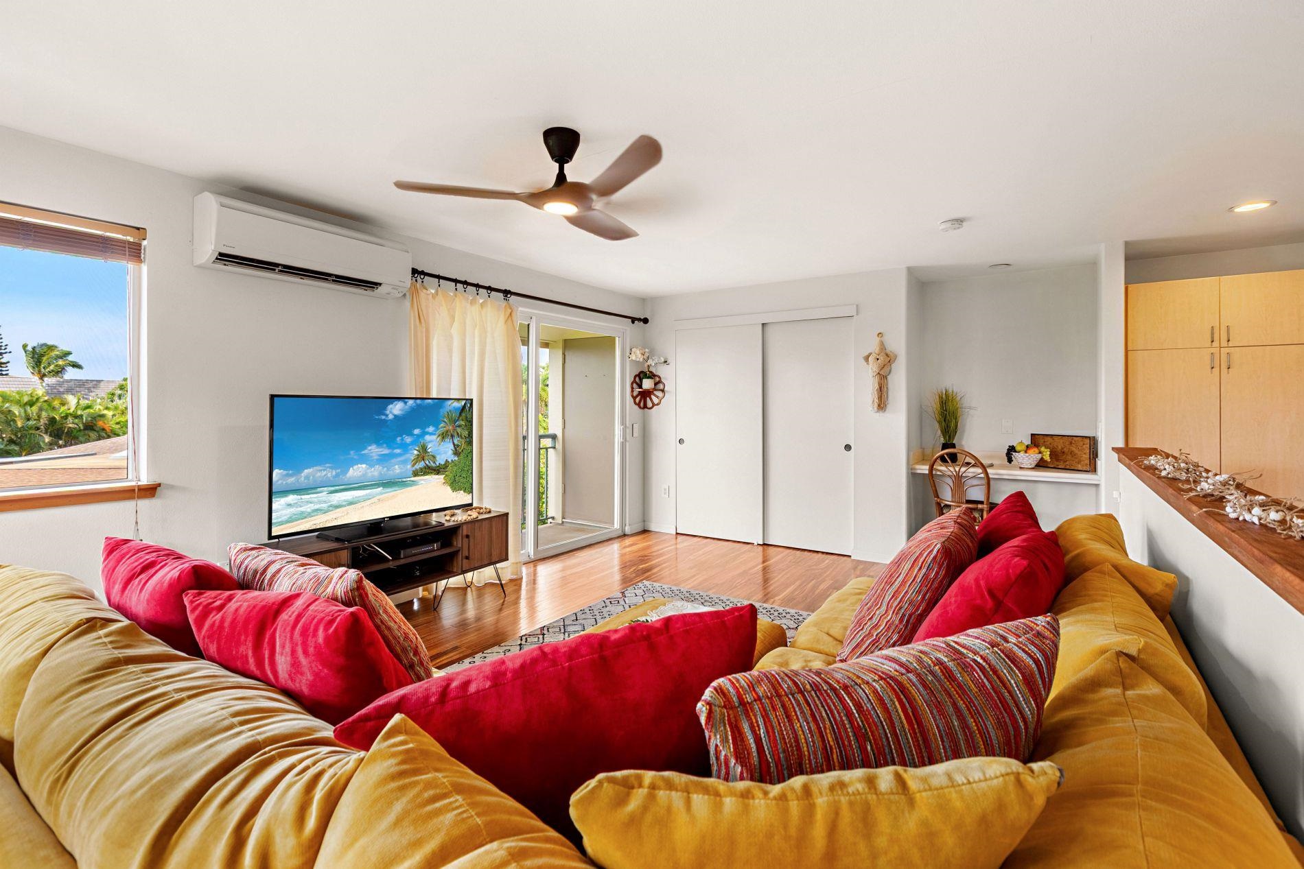 Largest floor plan in Napili Villas. This two-story unit offers the primary bedroom and two guest bedrooms on the ground floor, with the kitchen and living room upstairs featuring a partial ocean view. The layout provides good separation between living and sleeping areas. Renovations were completed in 2021 and include new flooring, fresh interior paint, split AC units, and updated bathrooms with new vanities, tile flooring, tiled showers with glass enclosures, and new fixtures. The unit includes two deeded parking stalls (85 and 86) with convenient visitor parking nearby. Located close to Napili Market for shopping and just minutes from Napili Bay for beach and ocean activities, this is a solid West Maui location