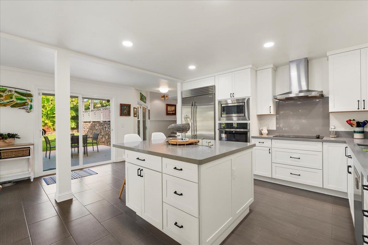 Wailea Kai is one of the closest communities to the beach! 3 BR 2.5 BA with a pool and easy walking distance to Keawakapu Beach. This recently updated home offers a unique living style with the master on the main level and 2 bedrooms tucked away separately with a jack & jill bath, all 3 with vaulted ceilings. The master has a large lanai that overlooks the pool and lawn area. A major remodel of the living room and kitchen were completed last year, including all new appliances and furnishings. Relax in the openness of the living room and kitchen, which includes a large island with numerous sitting spaces, all overlooking the pool through numerous windows and sliding doors. Enjoy the large pool and covered lanai's with a very private feel with no road noise, surrounded by beautiful gardens and fruit trees. Split A/C units in the living room and all 3 bedrooms. Capitalize on very low electric bills with 22 owned solar panels under the banked system, and a solar hot water system. 2 car garage. Located at the end of a quiet cul-de-sac.