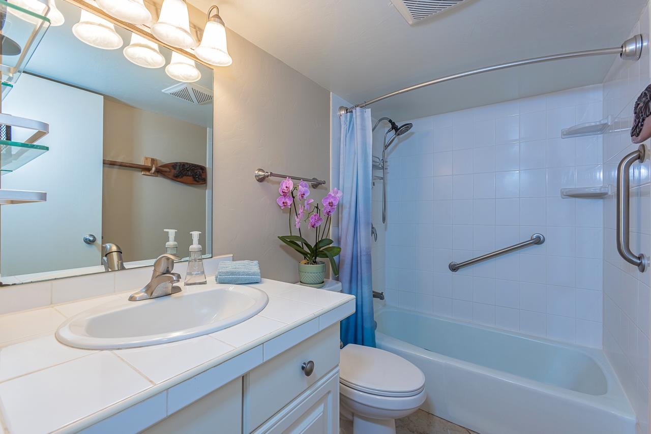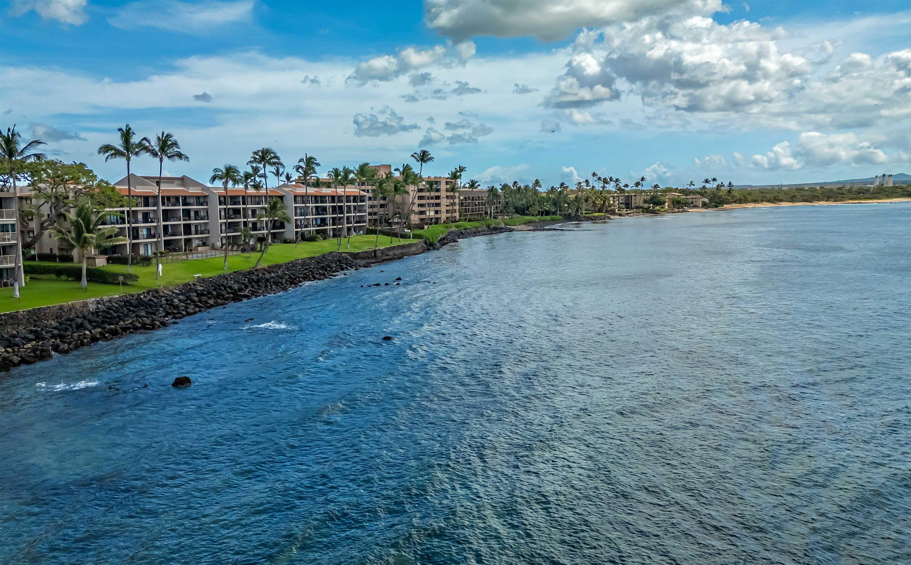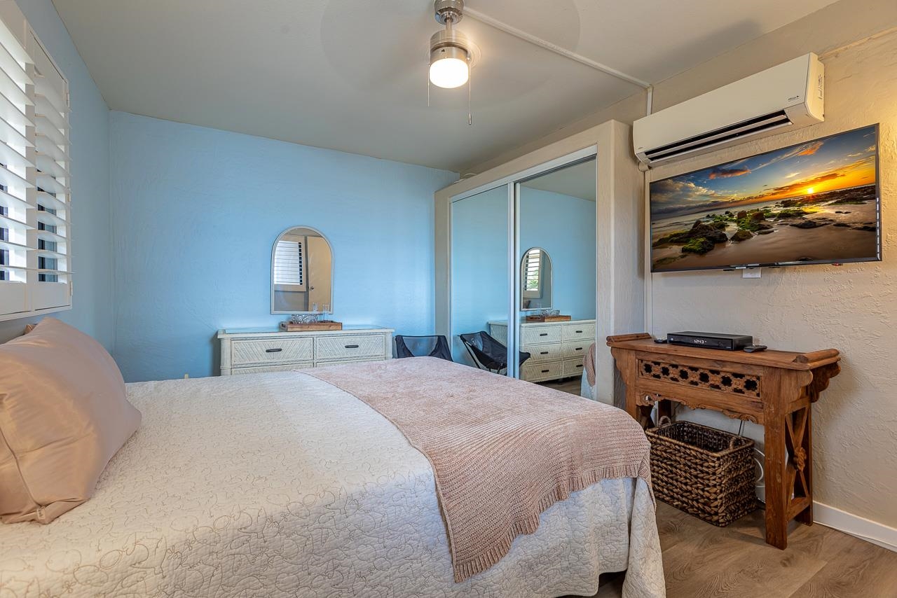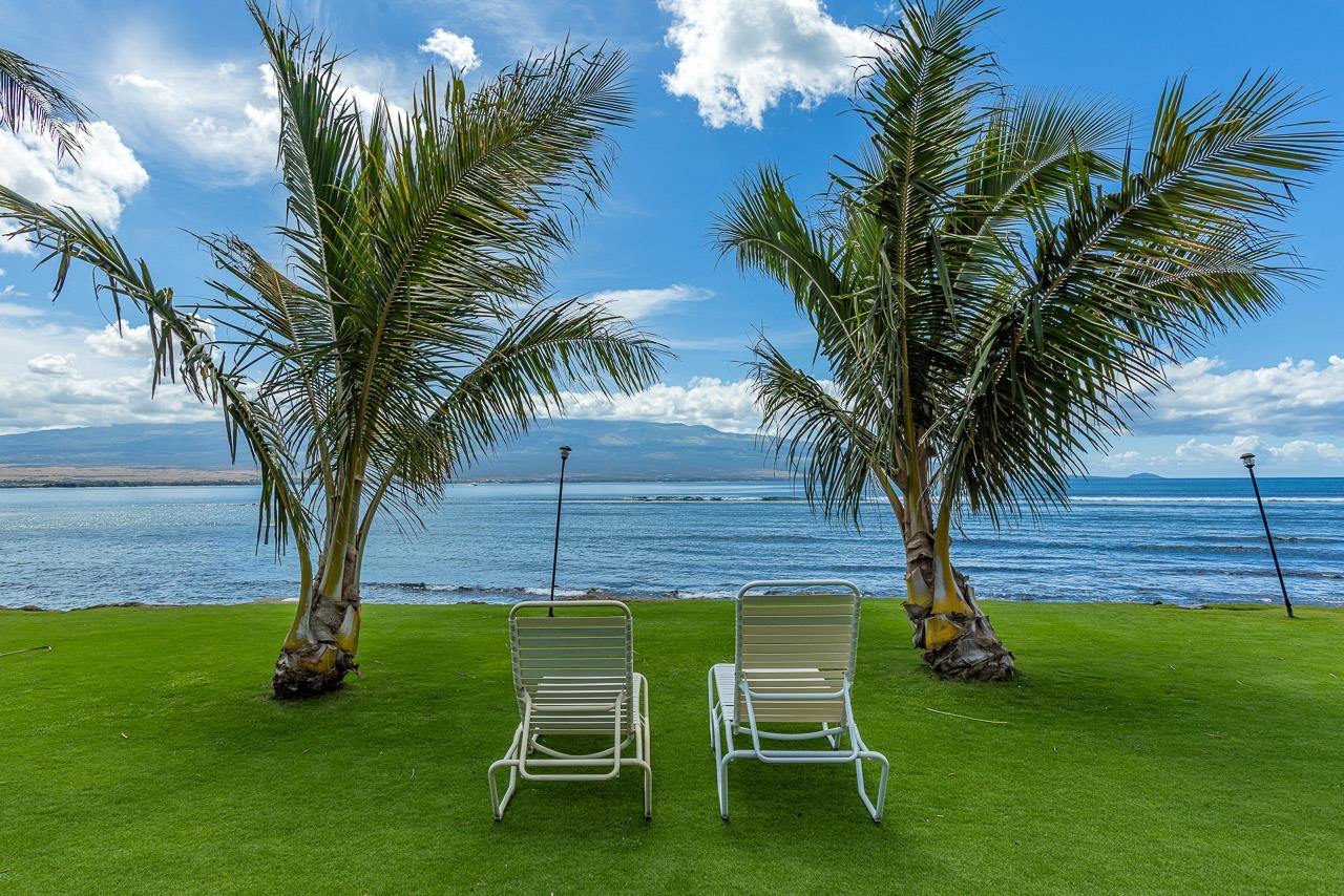 Few locations capture the essence of Direct Oceanfront Living quite like this, where sunrise ignites the horizon, winter whales breach offshore, and moonlight glides across the Pacific. Welcome to Maalaea Kai #403, a rare two-level, 2-bedroom, 2-bathroom front-row oceanfront retreat that is more than a residence. It’s a private perch above the sea, where every moment unfolds in color, rhythm, and rare tranquility. Located on the quiet east end of the complex, this approx. 824 sq. ft. residence offers unobstructed views of the boundless Pacific Ocean, Haleakala, and the South Shore of Maui. An extra window fills the space with natural light, while its elevated vantage invites ocean breezes and sweeping coastal vistas from nearly every room. Your private tiled lanai overlooks a manicured oceanfront lawn and expansive pool, creating an idyllic front-row seat to seasonal whale watching and sun-drenched afternoons. As day fades, the horizon comes alive in a wash of pastel skies and starlight, wrapping your sanctuary in calm. Inside, the unit unfolds in light and volume with soaring ceilings and a seamless open floor plan. Walls of glass frame the view and invite the outdoors in, while the kitchen, dining, and living spaces flow together in relaxed sophistication. Granite countertops, natural stone finishes, and a full-height custom backsplash elevate the kitchen, where GE, Whirlpool, and Frigidaire stainless appliances add contemporary flair. Cherry wood cabinetry glows with rich warmth, balanced by tile flooring laid on the bias that quietly speaks of custom craftsmanship. Recessed halogen lighting adds a soft, gallery-like ambiance. Comfort is a constant here, with three split air-conditioning units offering tailored climate control in each bedroom and the main living area. The first bedroom, located on the main level, features plantation shutters and mirrored closet doors, offering a peaceful retreat. The main level bathroom is clad in elegant floor-to-ceiling tile. Upstairs, a second bedroom awaits, offering breathtaking ocean views and its own private en-suite bath. From the lanai, watch the waves roll through Freight Trains, one of Maui’s most celebrated surf breaks, or take a sunrise stroll along five miles of golden beach just a short distance away. At Maalaea Harbor, a short walk brings you to world-class snorkeling, diving, fishing charters, the Maui Ocean Center, and charming waterfront restaurants. The central location means everything Maui has to offer is within reach–Kahului Airport, Kihei, Wailea, and Lahaina are all just a short drive away. Offered fully furnished, this exceptional Maalaea Kai residence is more than a home. It’s a place where ocean, light, and luxury come together in effortless harmony. An invitation to own a Maui coastal dream!