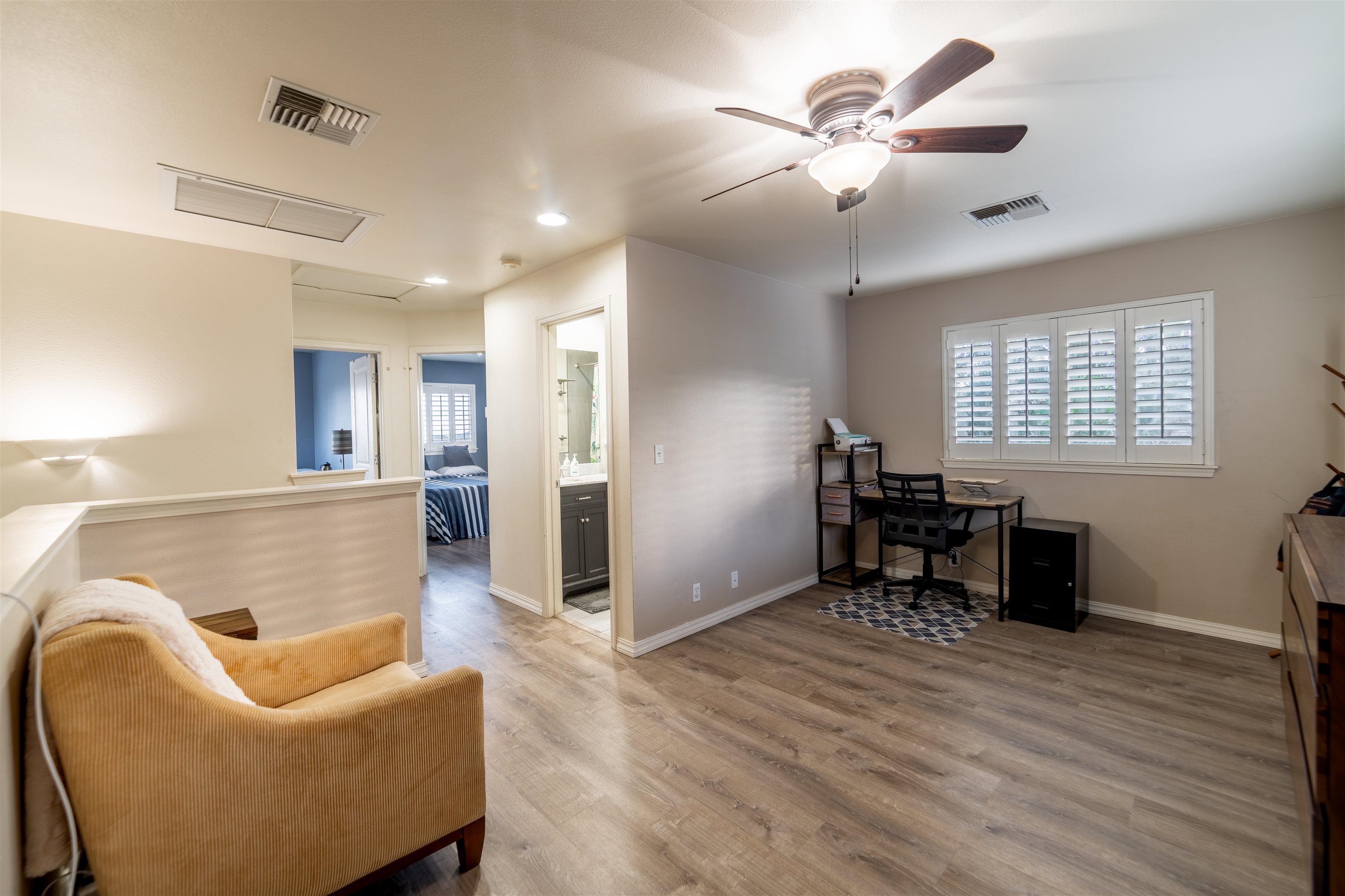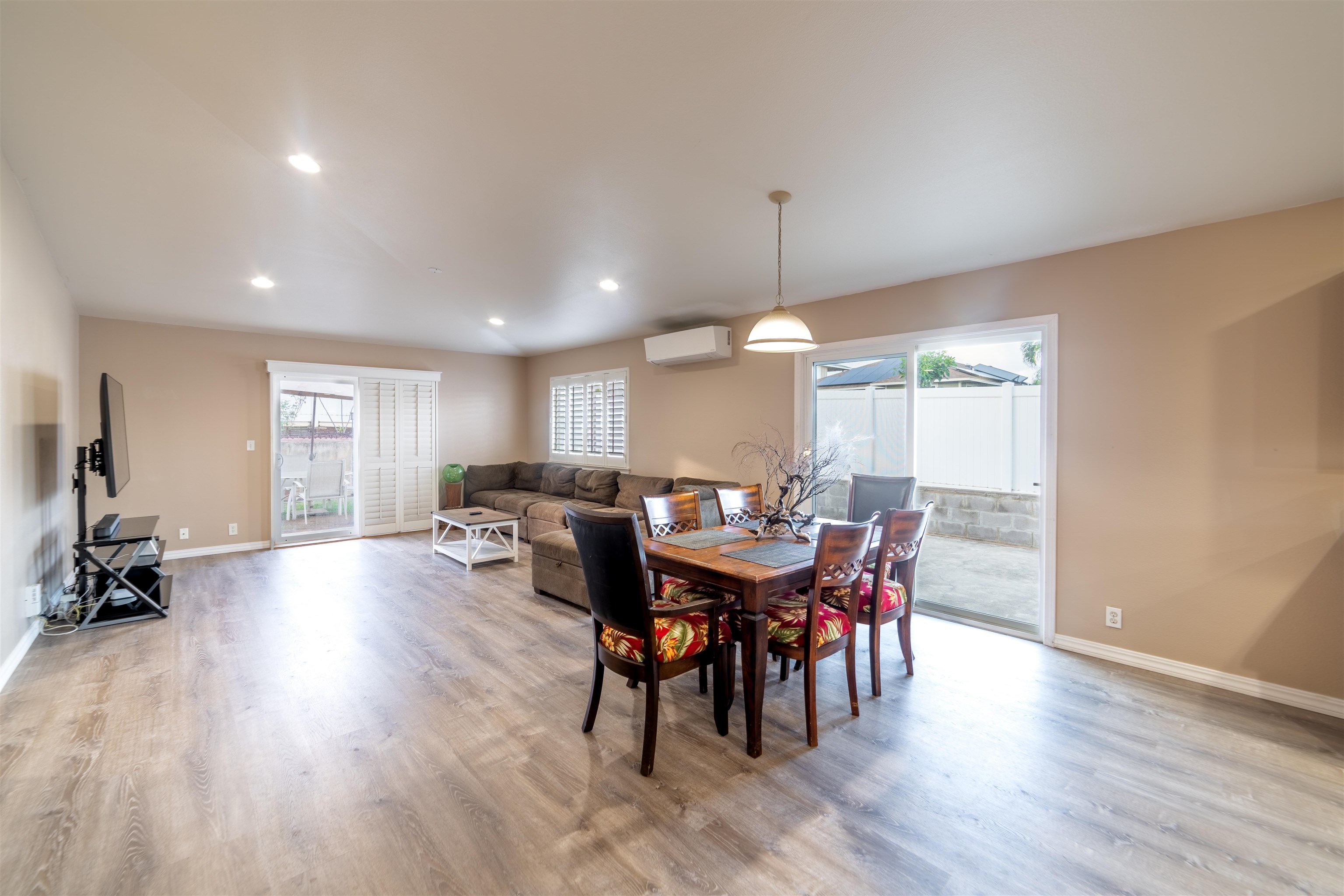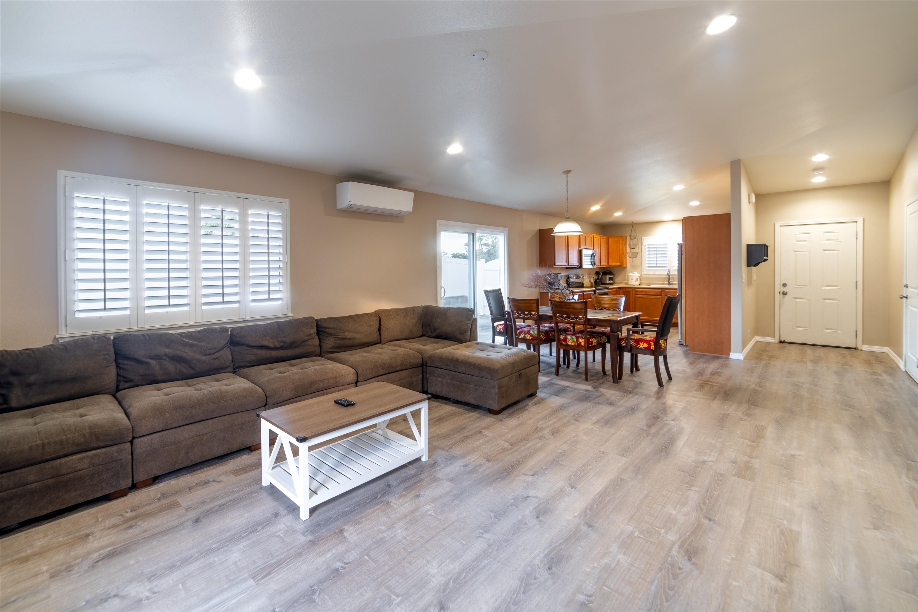 Beautifully Updated Corner Lot Home in Desirable Waikapu Gardens Discover this thoughtfully designed two-story home on a desirable corner lot in the sought-after Waikapu Gardens community. Freshly updated with brand new luxury vinyl plank flooring throughout and fresh interior paint, this move-in ready residence combines flexible living spaces with sizeable outdoor areas and sustainable energy features. The main level centers around an open-concept great room with vaulted ceilings that seamlessly connects the kitchen, dining, and living areas. Two sliding glass doors open directly to the back & side yards, creating an effortless indoor-outdoor flow perfect for Hawaii living and entertaining. The ground floor primary suite offers true convenience with its own ensuite bathroom featuring a unique wet bar and separate entrance–ideal for those who prefer single-level living. A half bathroom on the main floor provides added convenience for guests. Upstairs, you'll find two spacious guest bedrooms and a full bathroom, along with a large bonus room that offers incredible flexibility. Previous owners have used this versatile space as both a guest bedroom and home office, but it could easily serve as a media room, playroom, or additional living area. Modern comfort meets sustainability with a combination of central AC and split AC units throughout, along with 16 owned, net-metered photovoltaic solar panels that significantly reduce electric bills. Recently renovated bathrooms, recessed lighting, stainless steel appliances, and plantation shutters add refined touches throughout the home. The home's outdoor spaces are equally impressive. Expansive, well-maintained yards provide ample room for recreation, gardening, or relaxation while taking in stunning mountain views. The previous owner even utilized the space for a large batting cage! The concrete side yard features double gate access, offering excellent options for additional parking, secure storage, or an extended outdoor entertaining area. A charming terraced garden in the backyard features a tangerine tree, Tahitian lime tree, ti leaf plants, and rose bushes–perfect for gardeners and those who love fresh citrus. Waikapu Gardens is known for its strong sense of community and family-friendly amenities. The holiday season is especially festive in this subdivision. Enjoy the neighborhood walking path, community playground, and appreciate the convenient location with quick access to shopping, medical facilities, schools, parks, and essential services.