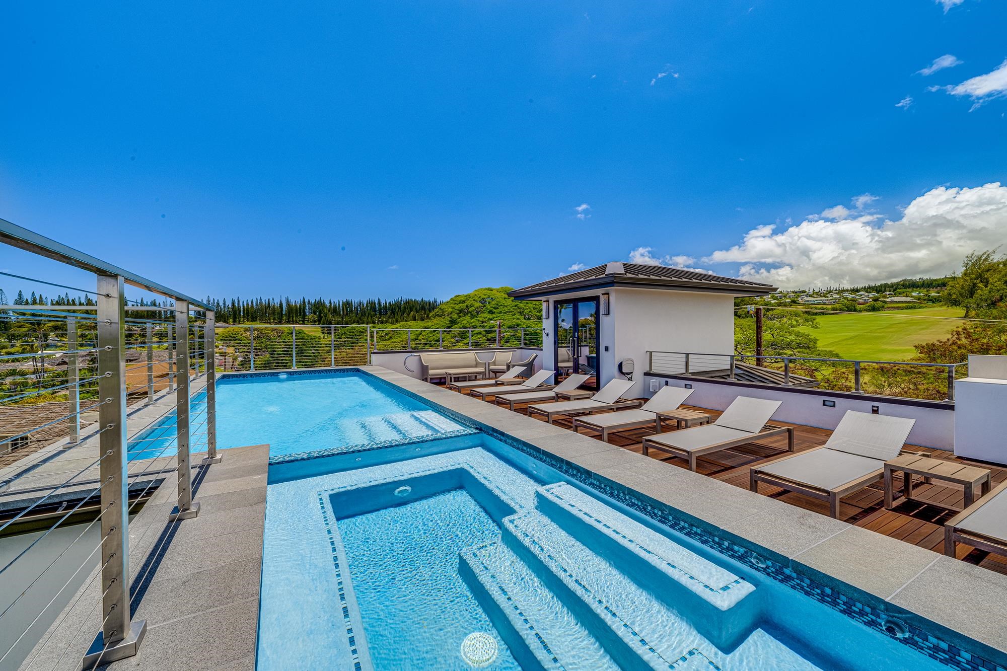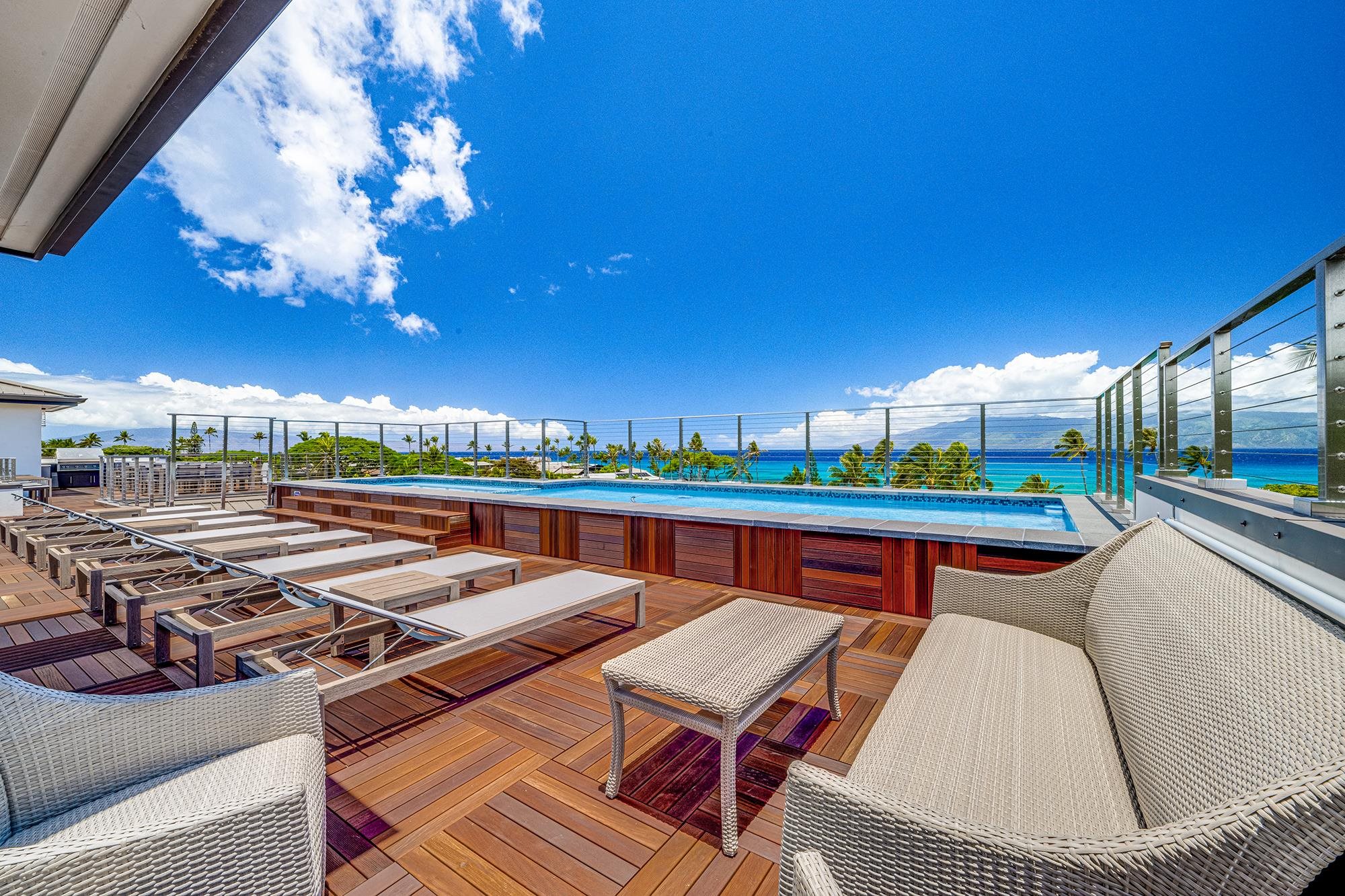 Located in gorgeous Napili, Maui, 5385 Lower Honoapi'ilani Road, also known as the Napili Beach House, is a uniquely spacious Maui home boasting stunning views of Napili Bay, the enchanting island of Moloka'i, and incredible features throughout. Amenities include a gated entrance, a heated rooftop ocean-view swimming pool with spa, an outdoor rooftop kitchen with a built-in barbecue, an elevator, two dining areas, two Great Rooms, two dens, and twelve Smart TVs. The home's expansive rooftop deck features a magnificent swimming pool and jetted spa, surrounded by panoramic ocean views and a majestic mountain backdrop. Imagine taking a dip in the pool or luxuriating in the jetted spa as you soak in the breathtaking sunset every evening. During winter, you can watch majestic humpback whales frolicking just offshore from the comfort of your home's private perch! The rooftop also includes an outdoor kitchen, barbecue, dishwasher, and refrigerator, allowing you to prepare meals in a stunning setting. You can enjoy breathtaking views from the second floor, which features two magnificent Great Rooms and four exquisite bedrooms, transforming it into the vibrant heart of this extraordinary home. The second floor is accessible via a private elevator or two staircases, making the home mobility-friendly. On one side, you'll discover a culinary haven with a gourmet kitchen, dining area, and a spacious Great Room. On the other side, indulge in the ultimate entertainment experience at the sleek wet bar, accompanied by a wine fridge, a second dining area, and an equally impressive second Great Room! Large sliding glass doors seamlessly connect two distinct lanai areas. The gourmet kitchen is well-appointed, with everything a home chef may need. There is a 5-burner range, double refrigerator, dishwasher, and microwave. A full-size freezer and a separate commercial ice maker are just off the kitchen. Eight bedrooms provide ample space for family and friends. All bedrooms have en-suite baths and are lavishly outfitted with California King beds. Each first-floor bedroom opens onto a quiet lanai in the backyard, sheltered from street view, while the four second-floor bedrooms offer stunning ocean views. The first floor also features two offices and two private dens equipped with large Smart TVs in a media-room setting. Central air conditioning with individual climate controls and ceiling fans ensures personalized comfort in every room. You are also within walking distance of gorgeous Napili Bay and a short drive from award-winning Kapalua Bay Beach and the world-class PGA Plantation Course. This unique home offers a rare opportunity for someone seeking a large Maui residence close to the ocean, services, and entertainment. The property must be seen!