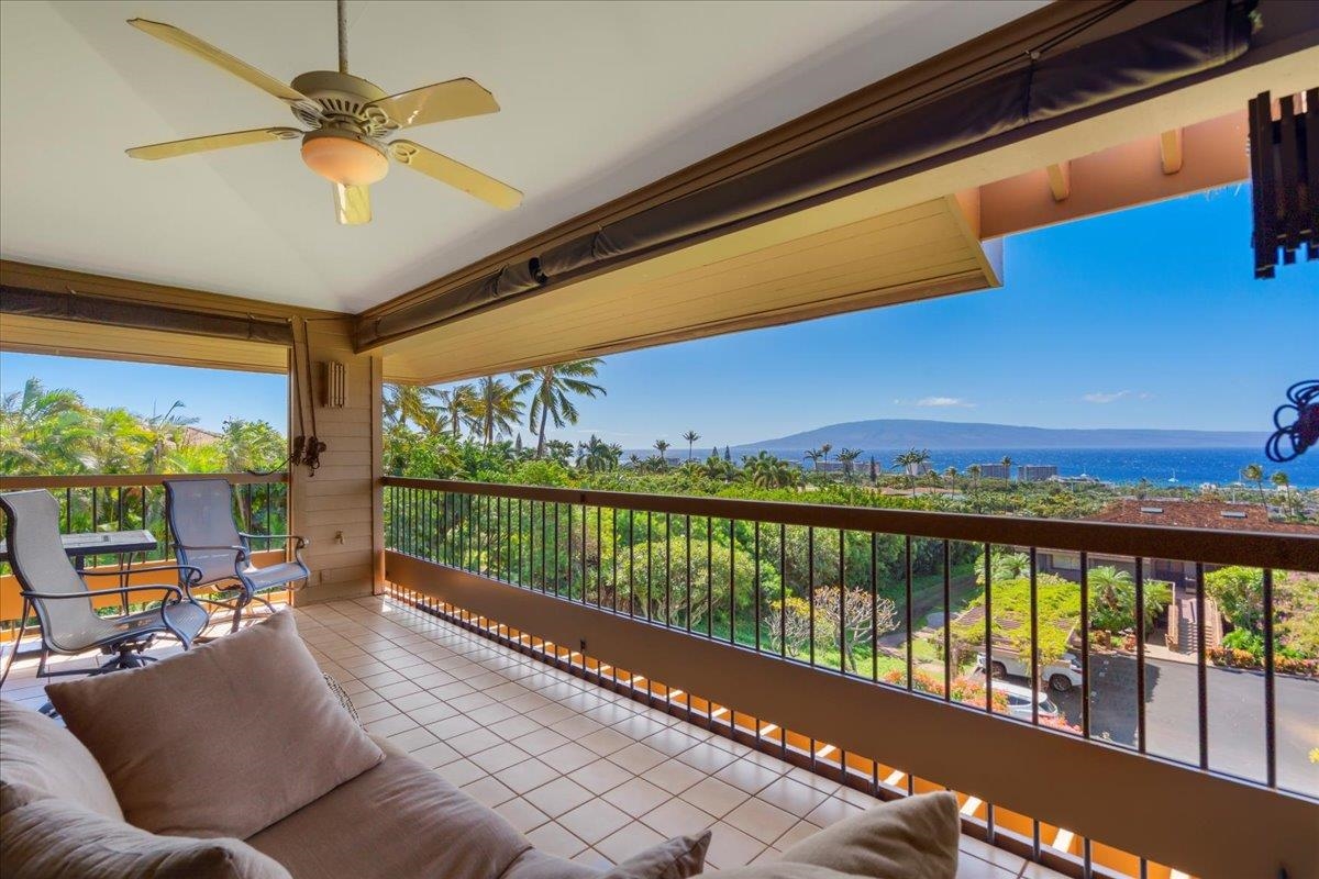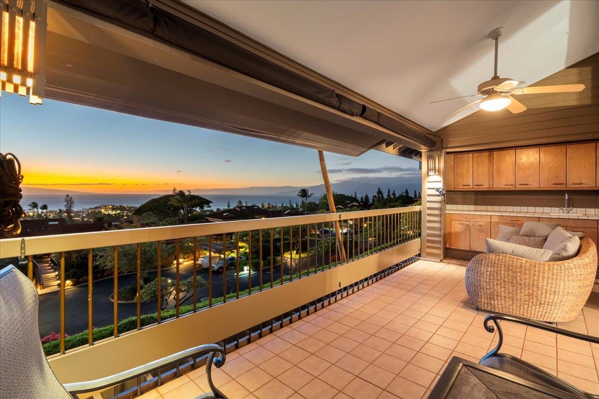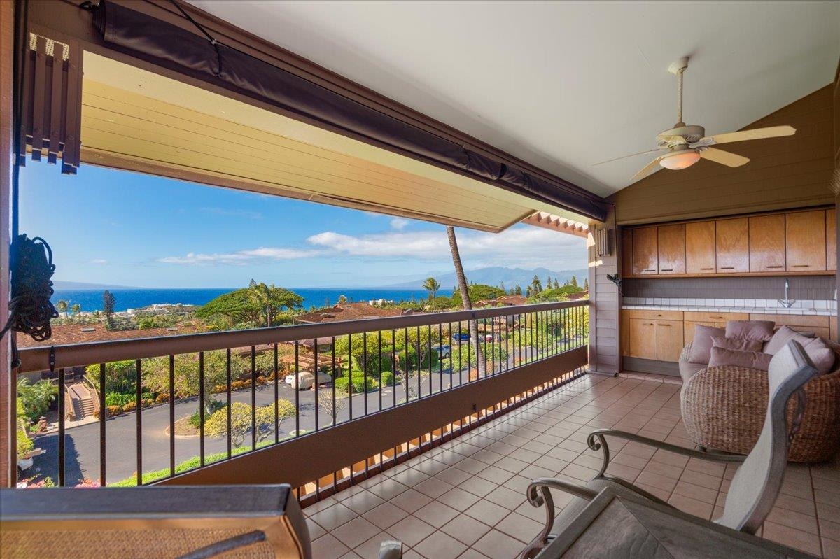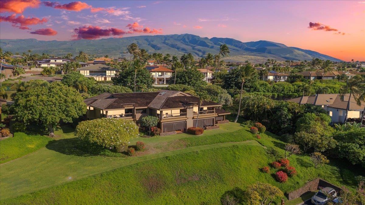 Positioned at the quiet end of a cul-de-sac within The Masters at Ka'anapali Hillside, Residence 3304 enjoys a commanding elevated setting where the land falls away toward the Pacific, creating a dramatic sense of openness and privacy. Framed by mature tropical landscaping, the residence captures sweeping ocean vistas and expansive multi-island views that stretch to the horizon, accompanied by year-round sunsets. This upper-level townhome features the largest two-bedroom floor plan in the community, a layout that is rarely offered and highly sought after for its generous proportions and thoughtful separation of space. With approximately 1,850 square feet of interior living area and a private entrance, the home lives more like a single-family residence than a condominium. The main living area is bright and open, highlighted by soaring ceilings, an oversized dining space, and wide sliding glass doors that extend seamlessly onto a large covered lanai–ideal for outdoor dining, entertaining, or simply taking in the panoramic island and ocean views. Both bedrooms are spacious ensuite retreats, each designed for comfort and privacy. One suite opens to its own private lanai with stunning ocean and island vistas, while the second bedroom is thoughtfully positioned away from the primary suite, creating an ideal layout for guests or dual primary living. Two assigned parking spaces add convenience, while the gated, pet-friendly community spans over 37 acres of beautifully maintained grounds. Residents enjoy access to resort-style amenities including swimming pools, hot tubs, tennis courts, and on-site security. The Masters is also a golf-cart-friendly community, allowing owners to travel easily throughout the Ka'anapali Resort–whether heading down to the beach, the golf courses, or nearby dining and shopping–fully immersed in the relaxed, connected resort lifestyle that defines this iconic destination. Located just minutes from world-renowned beaches, championship golf, luxury resorts, and Whalers Village, Masters 3304 offers a rare opportunity to own one of the most spacious and well-positioned two-bedroom residences in one of West Maui’s most prestigious gated enclaves.