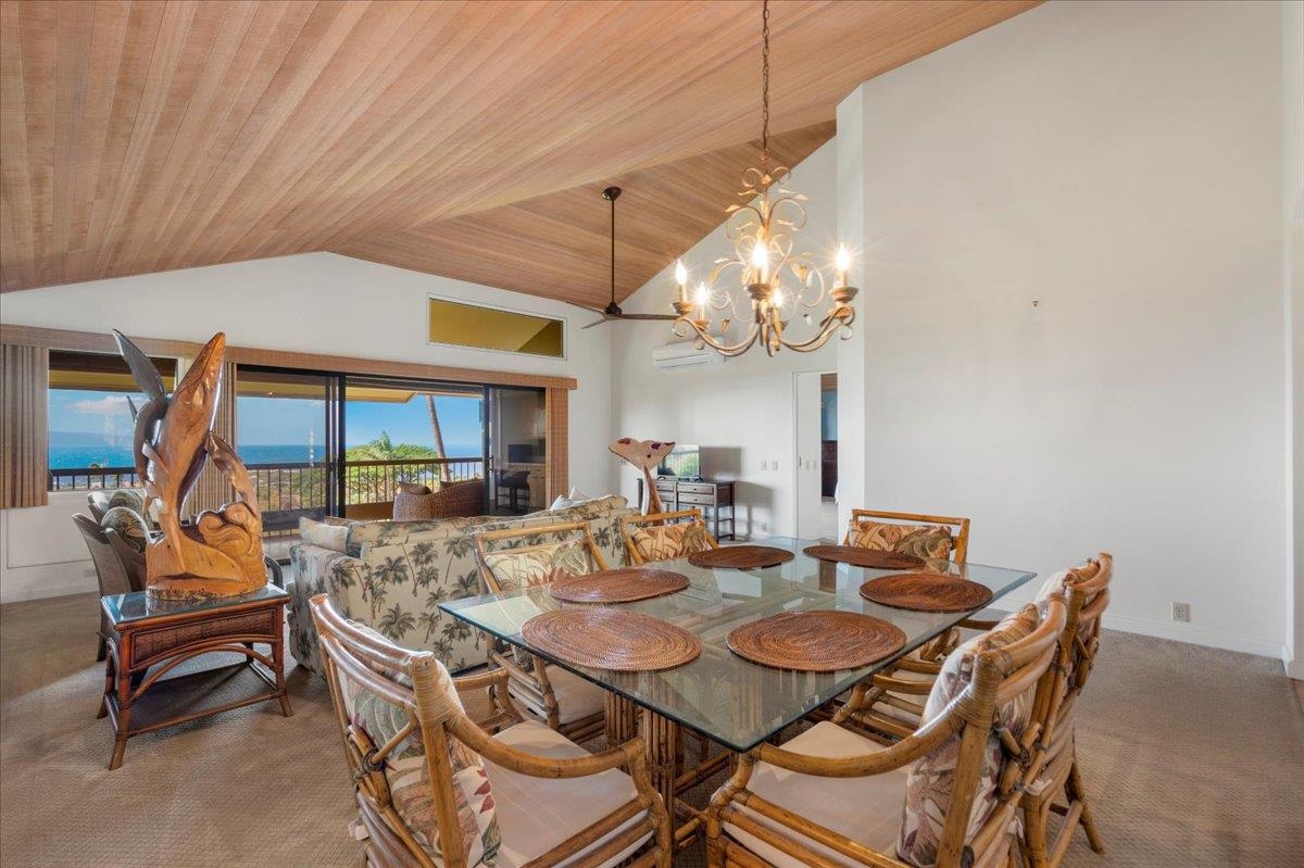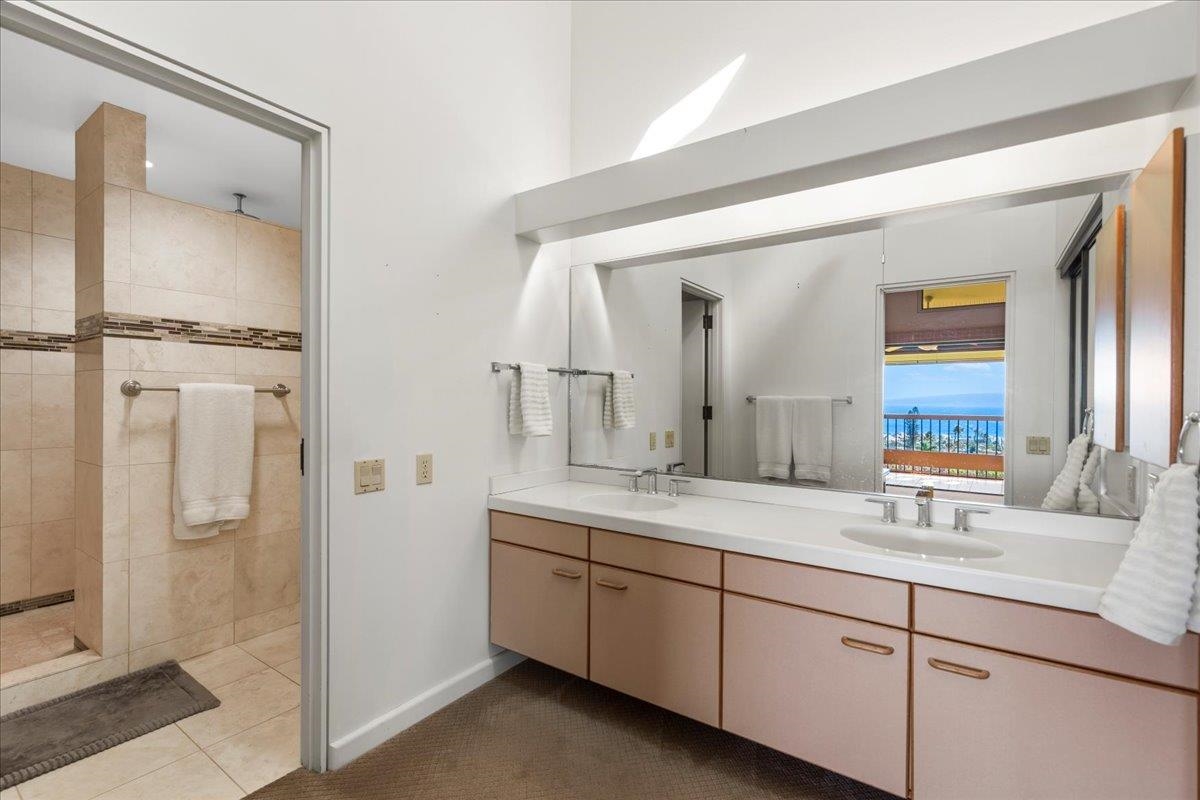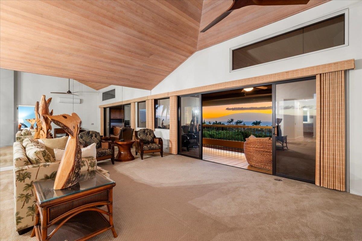 Positioned at the quiet end of a cul-de-sac within The Masters at Ka'anapali Hillside, Residence 3304 enjoys a commanding elevated setting where the land falls away toward the Pacific, creating a dramatic sense of openness and privacy. Framed by mature tropical landscaping, the residence captures sweeping ocean vistas and expansive multi-island views that stretch to the horizon, accompanied by year-round sunsets. This upper-level townhome features the largest two-bedroom floor plan in the community, a layout that is rarely offered and highly sought after for its generous proportions and thoughtful separation of space. With approximately 1,850 square feet of interior living area and a private entrance, the home lives more like a single-family residence than a condominium. The main living area is bright and open, highlighted by soaring ceilings, an oversized dining space, and wide sliding glass doors that extend seamlessly onto a large covered lanai–ideal for outdoor dining, entertaining, or simply taking in the panoramic island and ocean views. Both bedrooms are spacious ensuite retreats, each designed for comfort and privacy. One suite opens to its own private lanai with stunning ocean and island vistas, while the second bedroom is thoughtfully positioned away from the primary suite, creating an ideal layout for guests or dual primary living. Two assigned parking spaces add convenience, while the gated, pet-friendly community spans over 37 acres of beautifully maintained grounds. Residents enjoy access to resort-style amenities including swimming pools, hot tubs, tennis courts, and on-site security. The Masters is also a golf-cart-friendly community, allowing owners to travel easily throughout the Ka'anapali Resort–whether heading down to the beach, the golf courses, or nearby dining and shopping–fully immersed in the relaxed, connected resort lifestyle that defines this iconic destination. Located just minutes from world-renowned beaches, championship golf, luxury resorts, and Whalers Village, Masters 3304 offers a rare opportunity to own one of the most spacious and well-positioned two-bedroom residences in one of West Maui’s most prestigious gated enclaves.