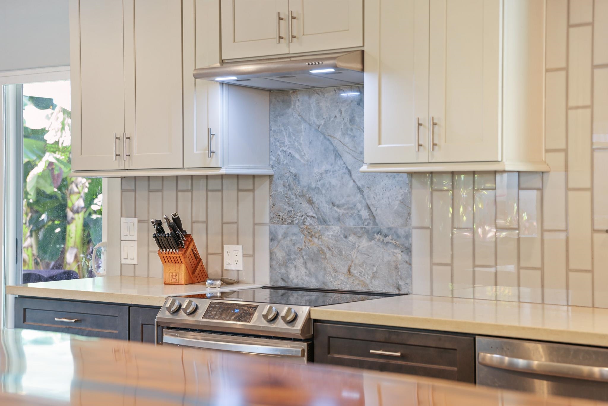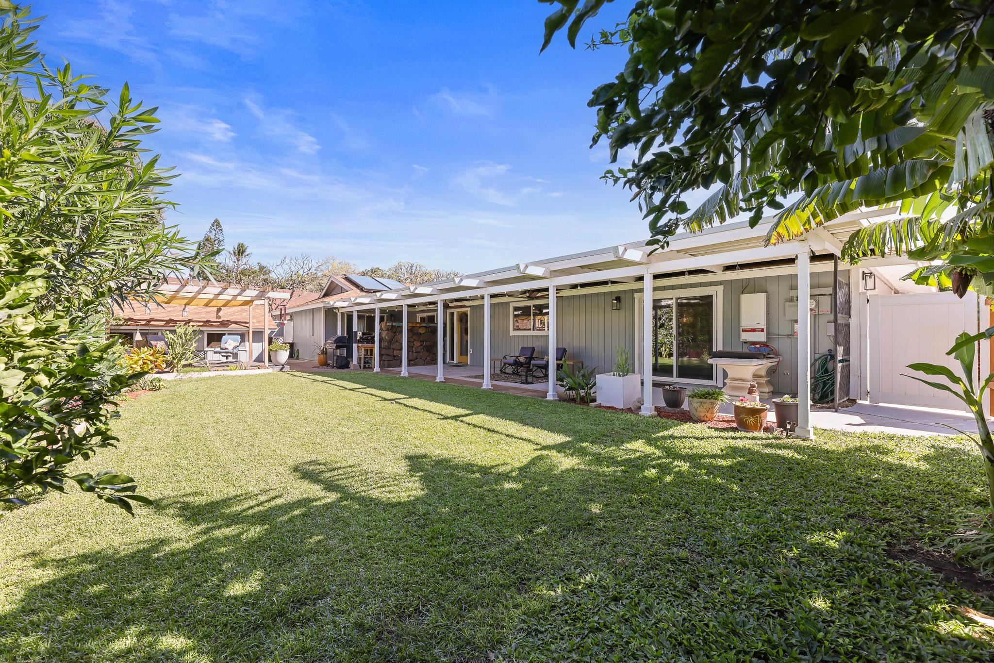 A South Maui Sanctuary . . . An elegantly remodeled single level home situated in the heart of Kihei with a lush garden setting on a quiet cul-de-sac suitably fenced for pets and privacy. The extensive covered lanais are perfect for family and entertaining. The gourmet kitchen is fantastic. The 26 owned PV solar panels are an economic advantage with the 5 split A/C units. This is an opportunity to own a very special 4 bedroom residence.