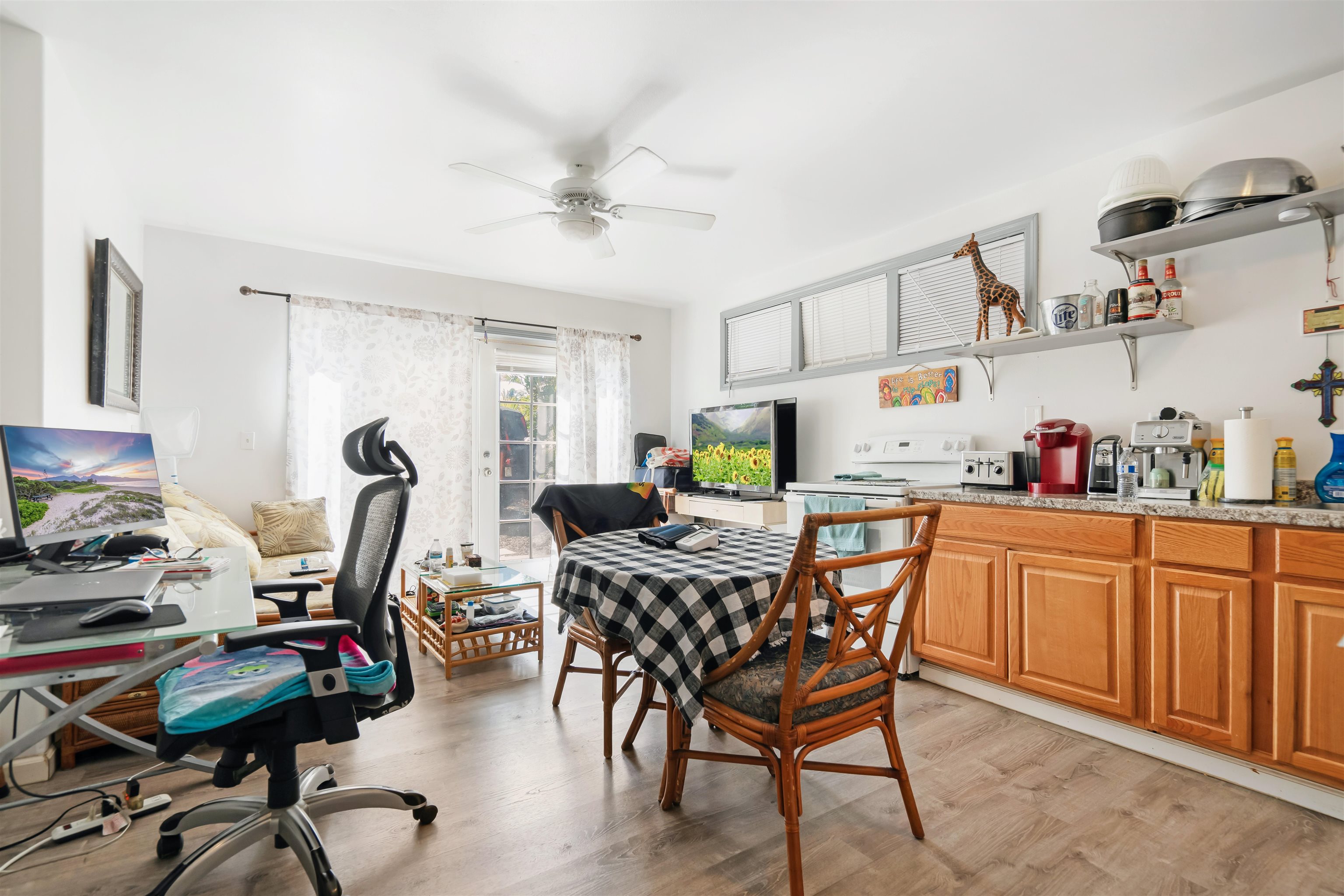If you have a large family or are seeking lucrative rental income, this serene cul-de-sac home in Mahinahina is a must-see. The property features three distinct living spaces, each with its own private entrance. The upstairs residence is a spacious 4-bedroom, 3-bathroom unit w/ with a fully equipped kitchen. Enjoy breathtaking ocean and mountain views from the expansive lanai–perfect for relaxation, barbecues, and whale watching–this space brings in $6,000 monthly. Additionally, there is a charming 2-bedroom, 1-bathroom unit with a kitchenette, which brings in $3,200 per month. The cozy 1-bedroom, 1-bathroom space which rents for $2,400 per month. In summary, this home brings in $11,600 per month in gross rental income. Conveniently located near West Maui Airport, Kaanapali Resort, and Lahaina, this home offers the potential to live comfortably while offsetting expenses with rental income. Units are currently being rented with "tenants at will." This property is being sold fully furnished, excluding some personal items. Don’t miss out on this unique opportunity.