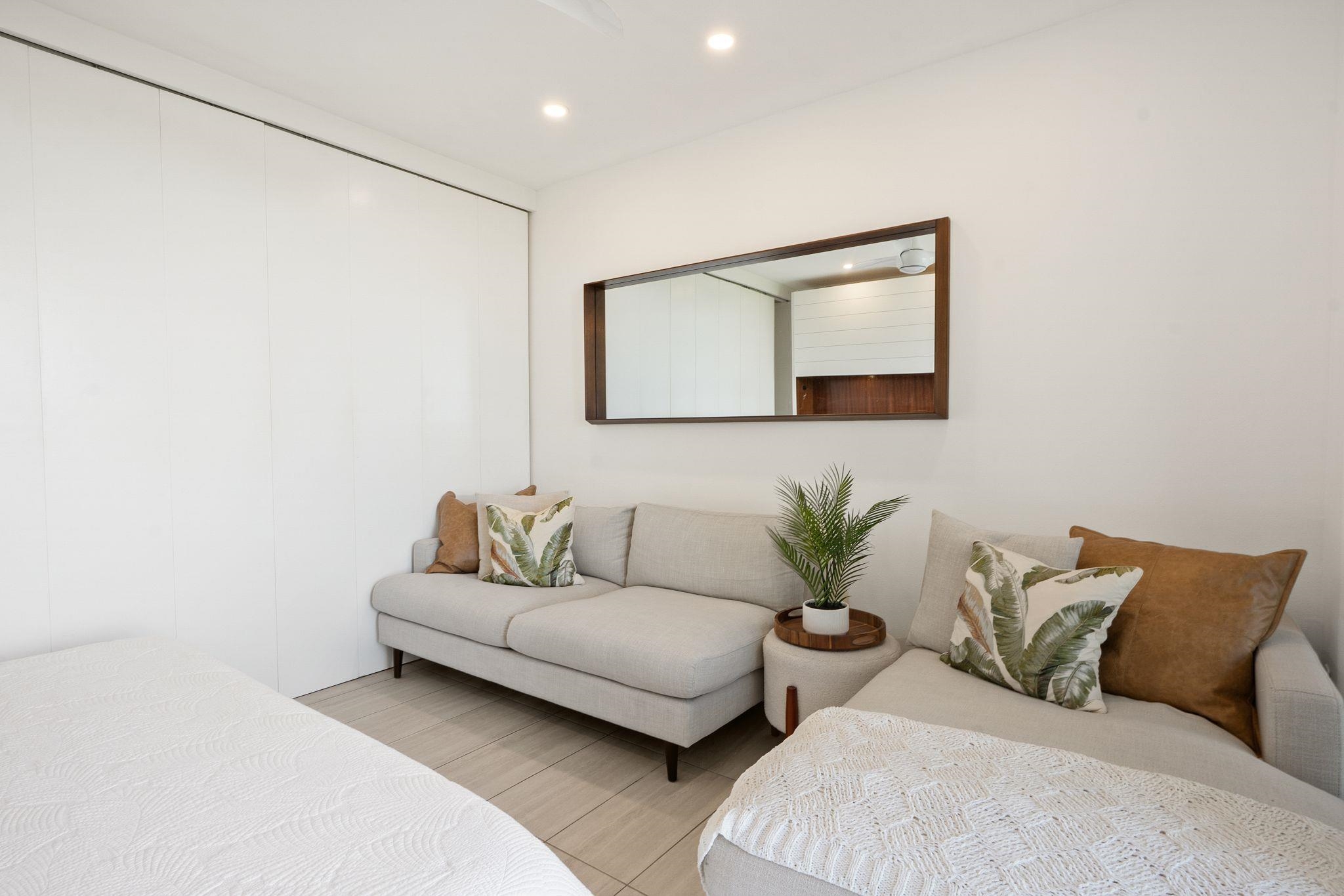 Stunning ocean and fairway views. Ground floor lanai flowing out to spacious grass area. Upgraded custom woodwork includes sapele kitchen, front entry cabinet, bathroom vanities, and closet build outs. Includes a unique additional custom shiplap murphy bed wall unit with cabinets and pull-out panels to create a third bedroom in front room for guests. Optional custom sapele murphy bed in second bedroom. Soundproofing added on both adjoining walls and in ceiling in front room and kitchen. New recessed lighting and ceiling fans. Full remodel in 2019 and new custom tile showers (2025). Upgraded split A/C with additional third unit in second bedroom. Bosch kitchen appliances and LG washer and dryer. Tile floor throughout. All new window coverings. Current cost for upgrades would be in excess of $350,000. Pet friendly complex. Tranquil pool area that includes a gym, community center, and barbeques. Short stroll down the golf course to local dining, shops at Wailea and premier beaches. Monthly HOA fee of $1289.00 includes water, sewer, trash, landscaping, and property maintenance. All comments, data is provided by seller or seller's representatives. Buyer to confirm all & hold all parties harmless from any discrepancy data in the mls and advertising. Limited Service—Data Entry Addendum signed by seller/s must be signed by buyer/s with Purchase Contract.