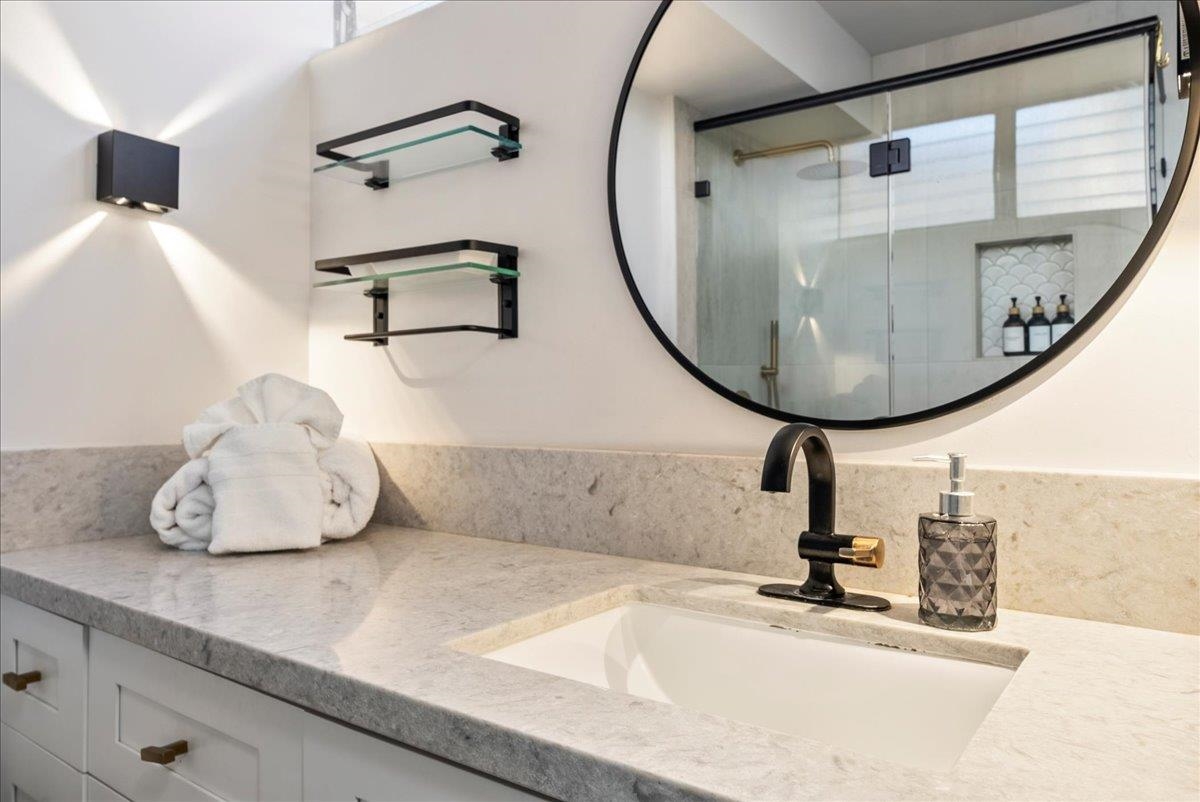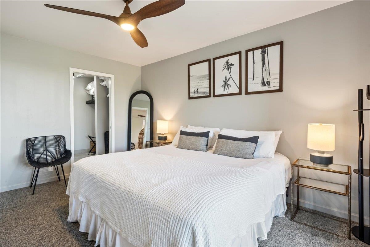 Welcome home to Haleakala Shores A-303, where island living blends seamlessly with comfort and flexibility. This spacious 2-bedroom, 2-bath condo is tastefully furnished with a clean, elegant aesthetic that feels both relaxed and inviting. Large windows in the living room fill the space with natural light, creating a bright and welcoming atmosphere throughout. The primary bathroom has been beautifully remodeled and features a custom tiled shower, stone countertop, and subtle gold accents that add a refined, upscale touch. Step out onto the lanai to enjoy the ocean view, Kihei’s sunny weather, and gentle island breezes. Air conditioning for year-round comfort, while a full-size washer and dryer and a covered, deeded parking stall add everyday convenience. Just across the street, Kamaole Beach III is great for seasonal whale watching and memorable sunset strolls. Haleakala Shores also offers resort-style amenities, including a pool and BBQ area. Wailea is only a short drive away, with its renowned beaches, shopping, dining, and world-class golf courses. The condo comfortably sleeps six, including a sleeper sofa in the living room, making it well suited for full-time living, a second home, or a Maui getaway.