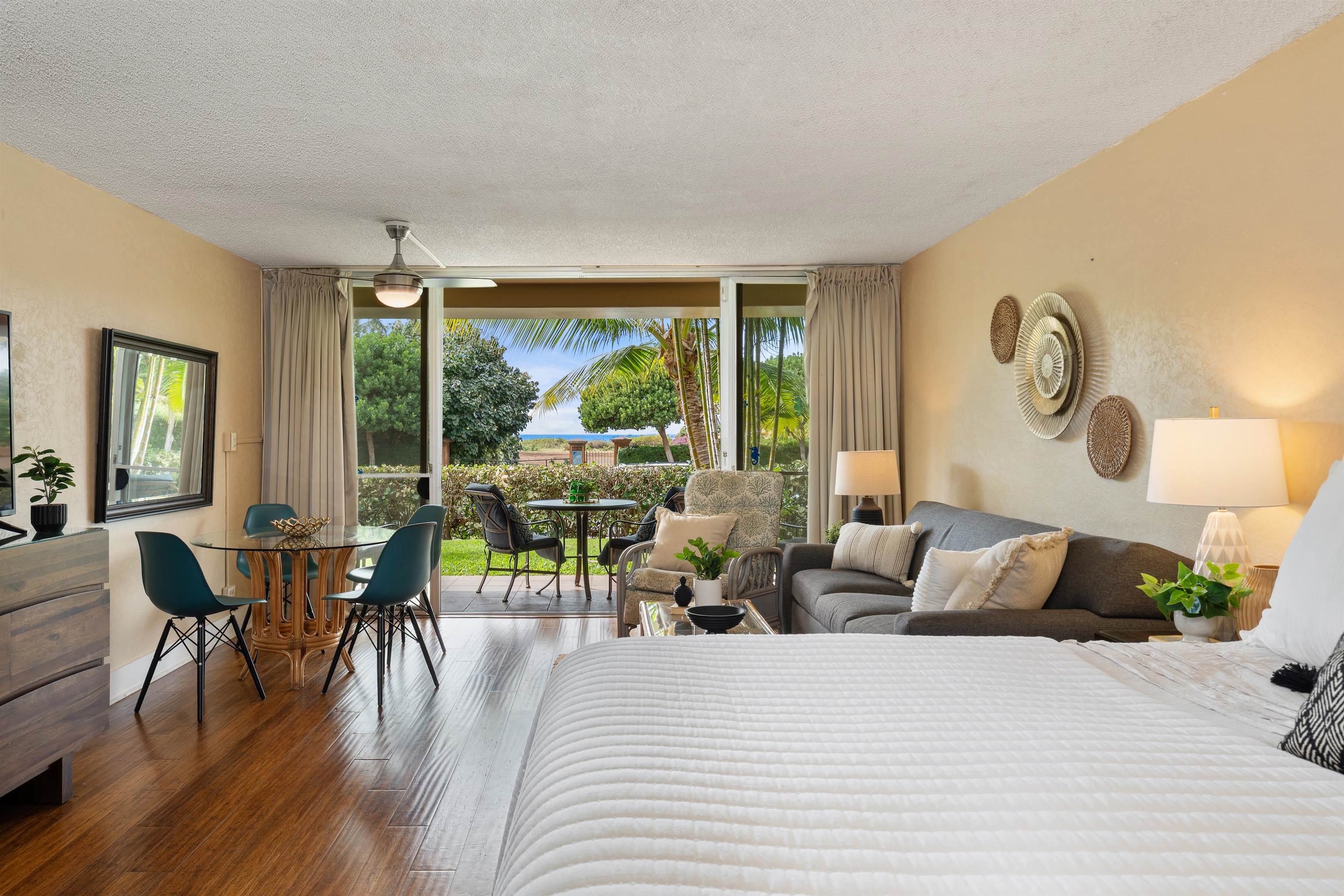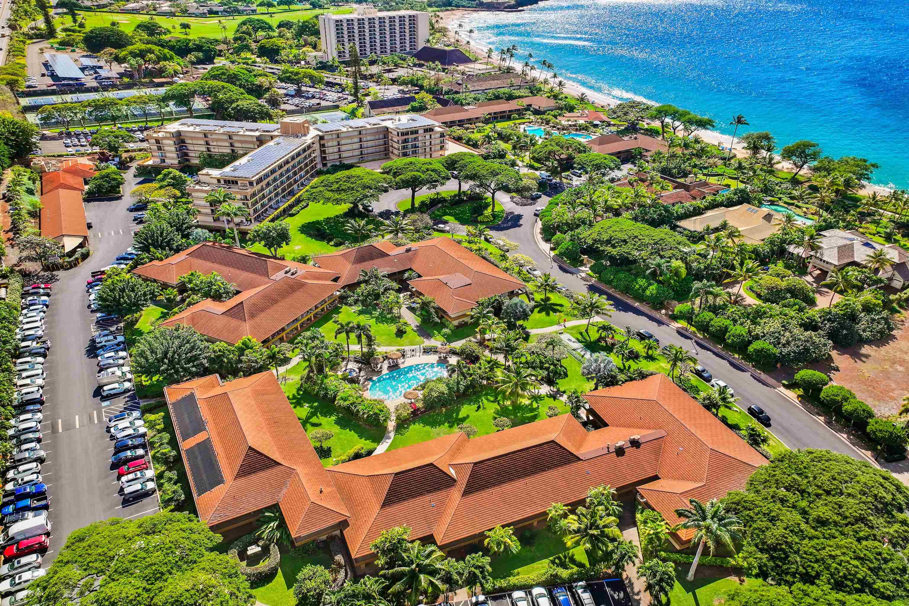Beautiful turn-key studio with a partial ocean view in the highly sought after low-rise Coconut Building at Maui Kaanapali Villas resort. Step outside and relax on your lanai. Maui Kaanapali Villas offers timeless Hawaii charm and a premier beachfront setting with direct beachfront access and amenities including two swimming pools, hot tubs, an on-site spa, fitness center, shuffleboard, outdoor BBQ areas, and Castaway Cafe, an oceanfront bar and restaurant. Convenient parking and concierge services enhance the ease of ownership, whether used as a personal retreat or a vacation rental opportunity. Ideally located in the heart of Kaanapali on Kaanapali Beach, close to golf, dining, and shopping–this is Maui resort living at its best.