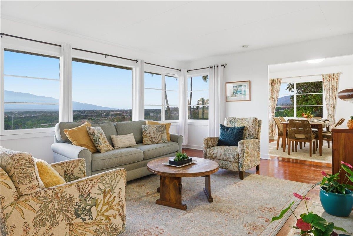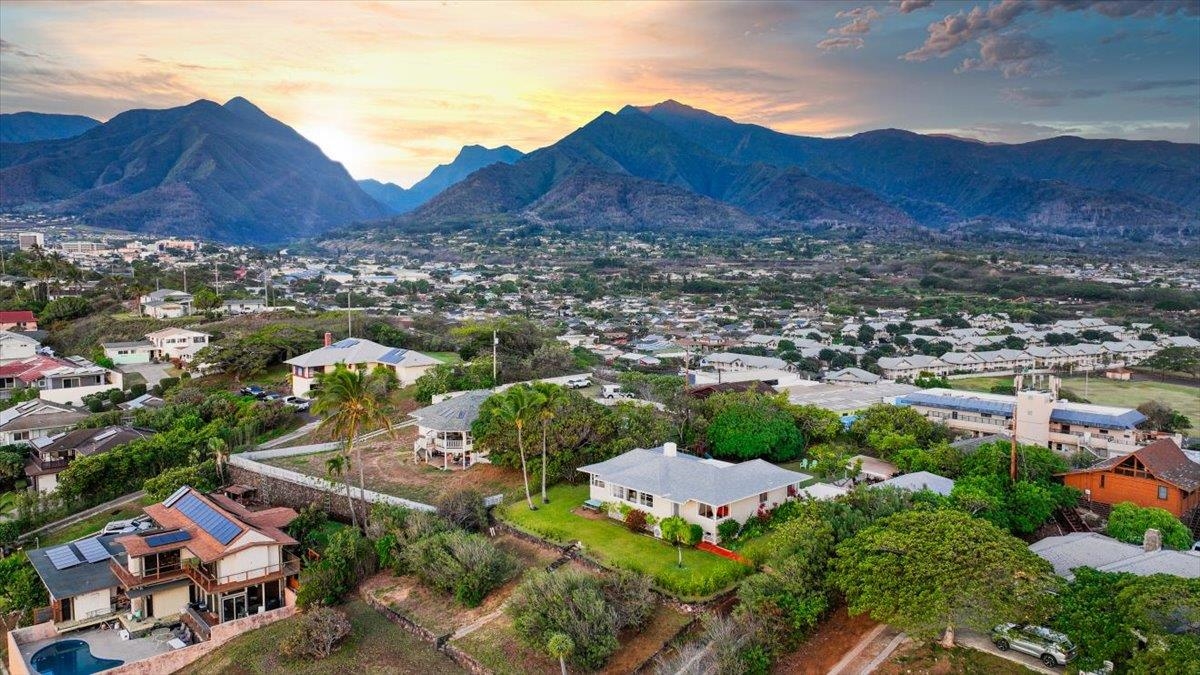 Embrace the essence of old Hawai‘i in this extraordinary legacy estate, cherished by one family for over 74 years and now offered for the very first time. Perfectly positioned in a sought-after Old Sand Hills, this rare half-acre sanctuary captures the island’s most captivating vistas – radiant Haleakala sunrises, sweeping mountain panoramas, shimmering ocean views, and the ever-changing colors of 'Iao Valley at sunset. Framed by mature coconut palms, mango and plumeria trees, and flourishing tropical gardens, this impeccably maintained single-level plantation-style residence exudes warmth and authenticity. Crafted with beautiful red cedar and accented by tile and soft carpeting, the home features two bedrooms and one and a half baths, plus an inviting fireplace that brings comfort and character. Expansive lawns and shaded lanai spaces create a natural flow from indoor charm to outdoor island living – an entertainer’s dream surrounded by privacy and beauty. A detached and private cedar cottage offers flexibility for extended family, guests, or income potential. Cottage features high ceilings + ocean views. Separate garage and workshop provide ample space for creative pursuits or storage. Every structure boasts a new roof, newer appliances, individual electric meters, and a thoughtfully maintained irrigation system that keeps the grounds lush year-round. Bedrooms and living areas of home + cottage feature new split system AC units. Located just minutes from excellent schools, Maui Memorial Hospital, the Maui Arts & Cultural Center, lively shopping and dining, the Maui Tropical Plantation, and Keopuolani Regional Park – and only 15 minutes from the airport – this property blends convenience with serenity. Zoned R-3 and free of HOA restrictions, this is a true Hawaiian treasure – a timeless estate where history, nature, and possibility converge. Lot A subdivided and R-3 is also available under MLS 408565