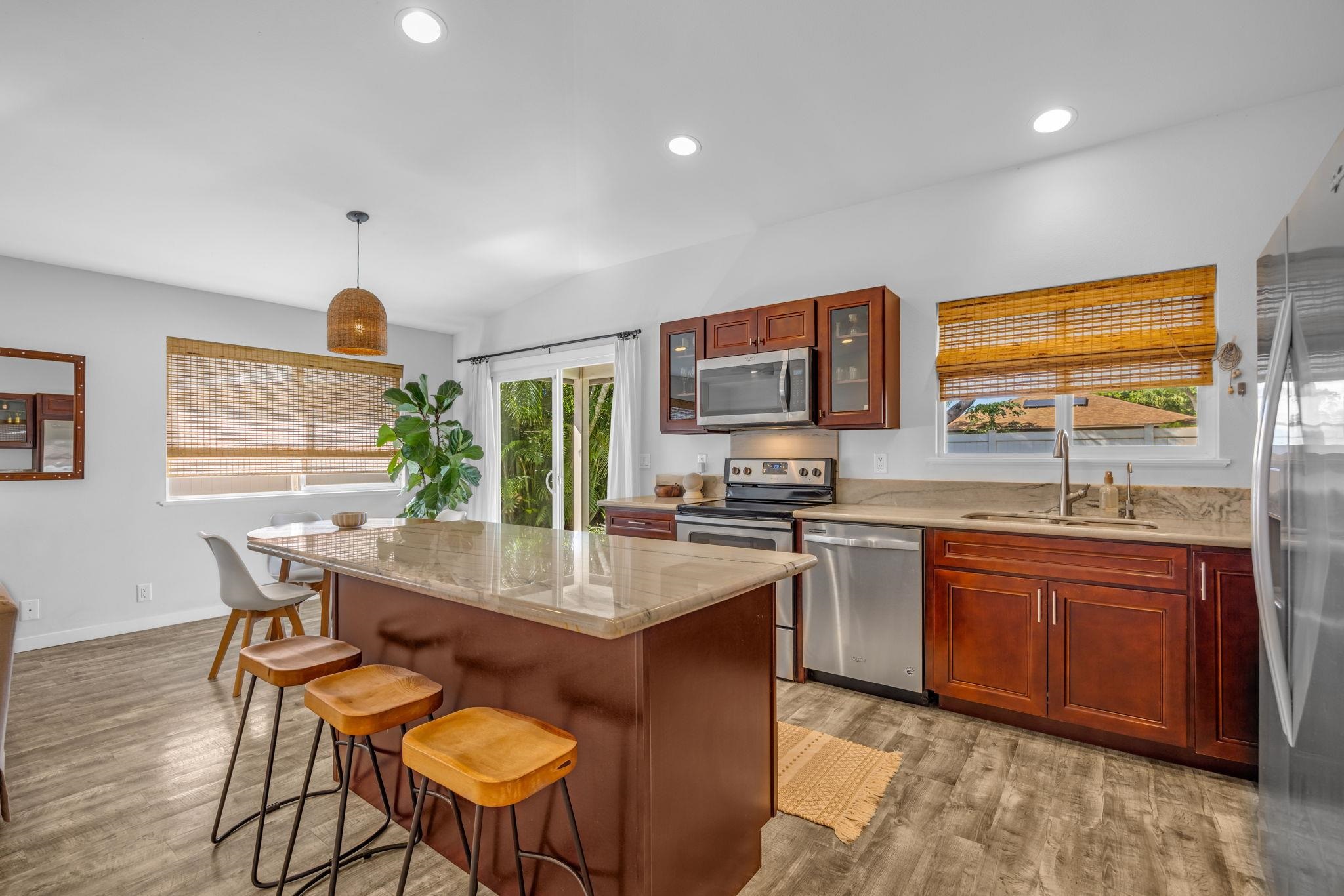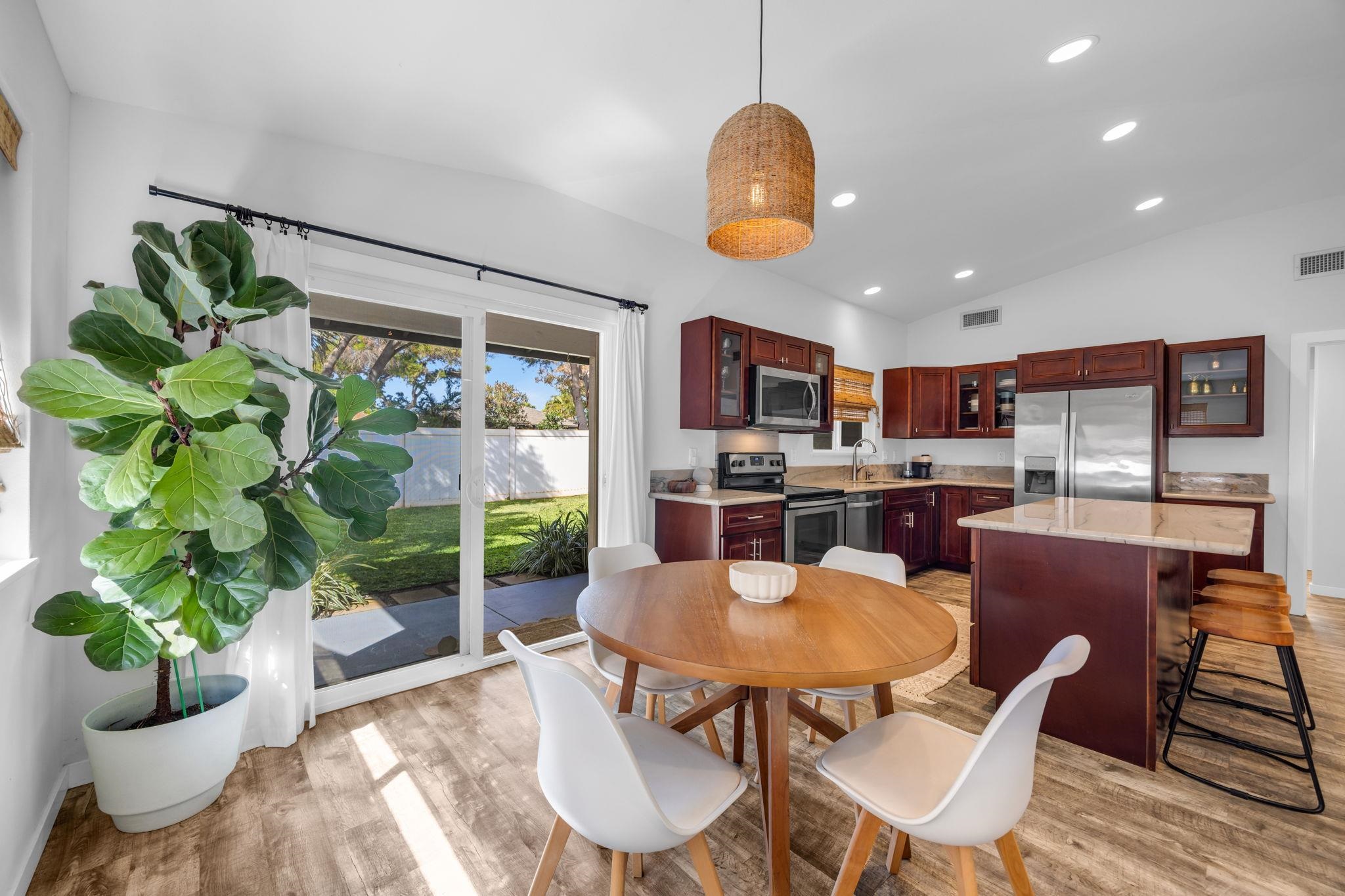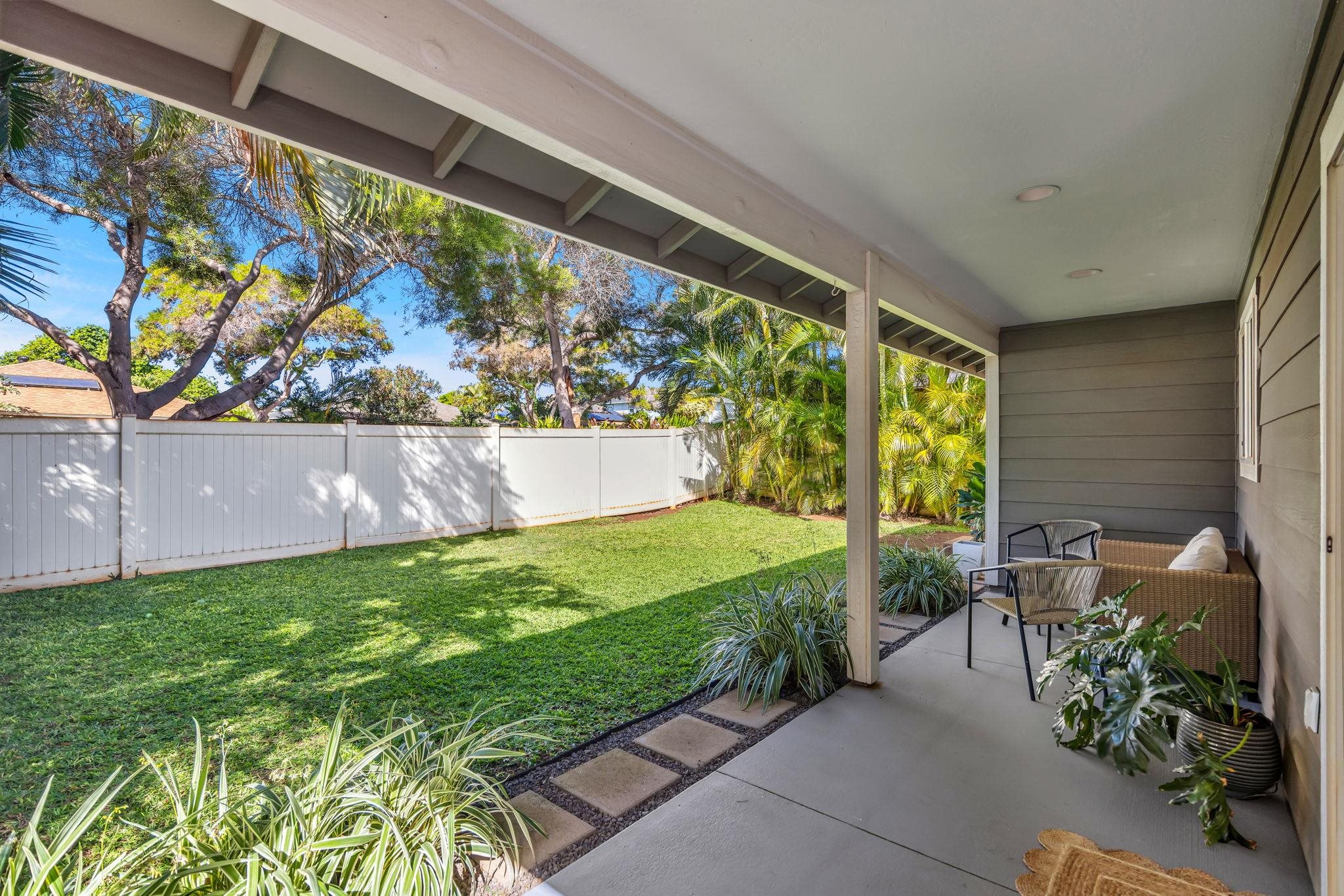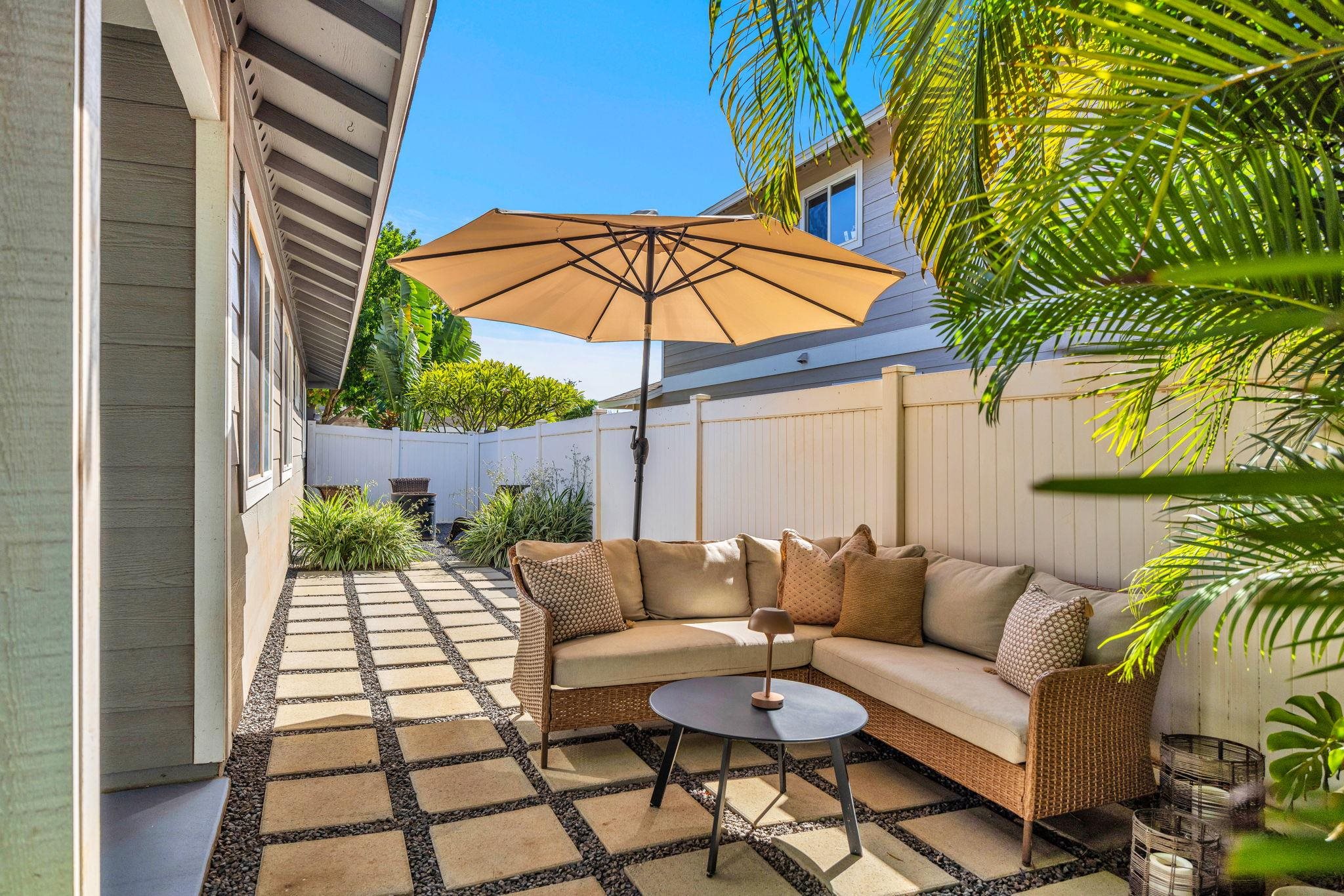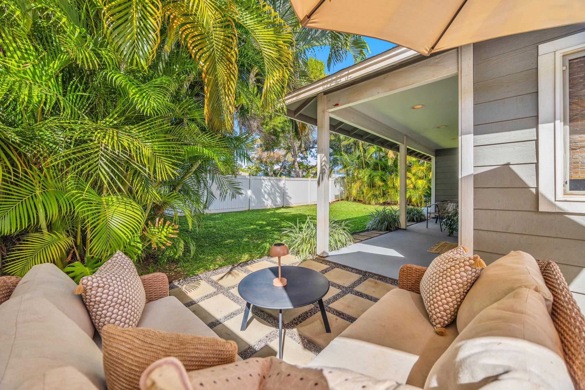 Welcome to 210 Luakaha Circle in the heart of Kihei. This beautifully remodeled 2-bedroom, 2-bath home offers stylish living space, and is thoughtfully updated. The interior design is a true highlight, featuring a modern, fresh aesthetic with clean lines and a bright, inviting feel throughout. The open-concept living area flows seamlessly into a well-appointed kitchen and dining space, creating an ideal layout for everyday Maui living. Both bedrooms are generously sized, complemented by two full bathrooms that offer comfort and privacy. Step outside to a private backyard retreat with a well-designed lounge area-perfect for relaxing, hosting friends, or enjoying Maui's lifestyle. This added outdoor living space enhances the home's functionality and island appeal. Located in a desirable Kihei neighborhood close to beaches, shopping, dining, and schools, this move-in-ready home is ideal as a primary residence or second home. Seller's are offering the home completely furnished and turnkey. Call your favorite REALTOR® today for a showing!