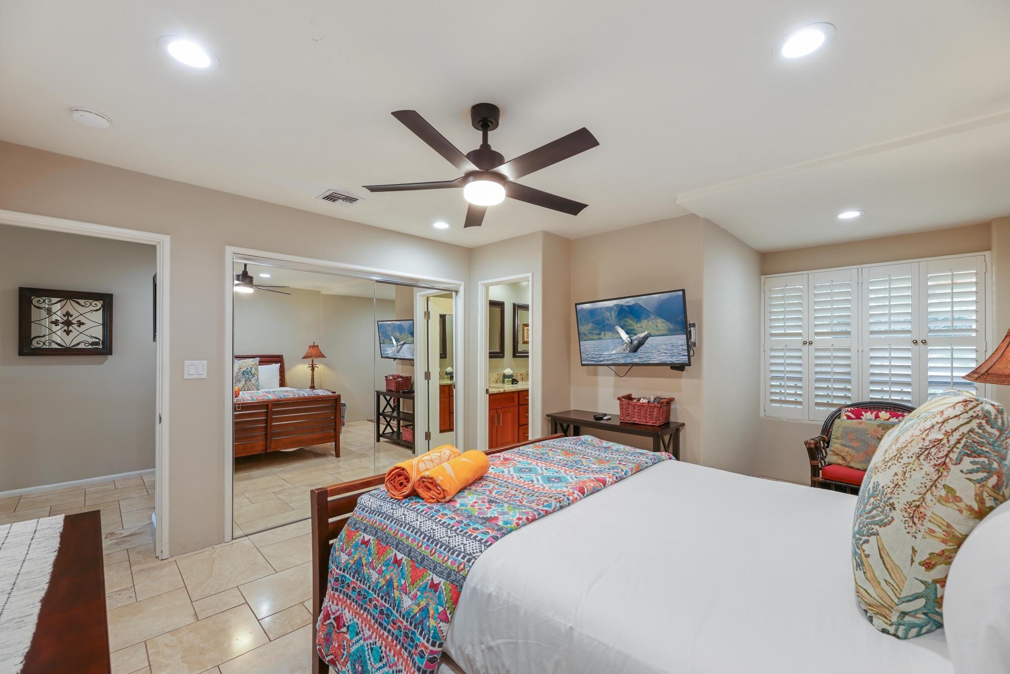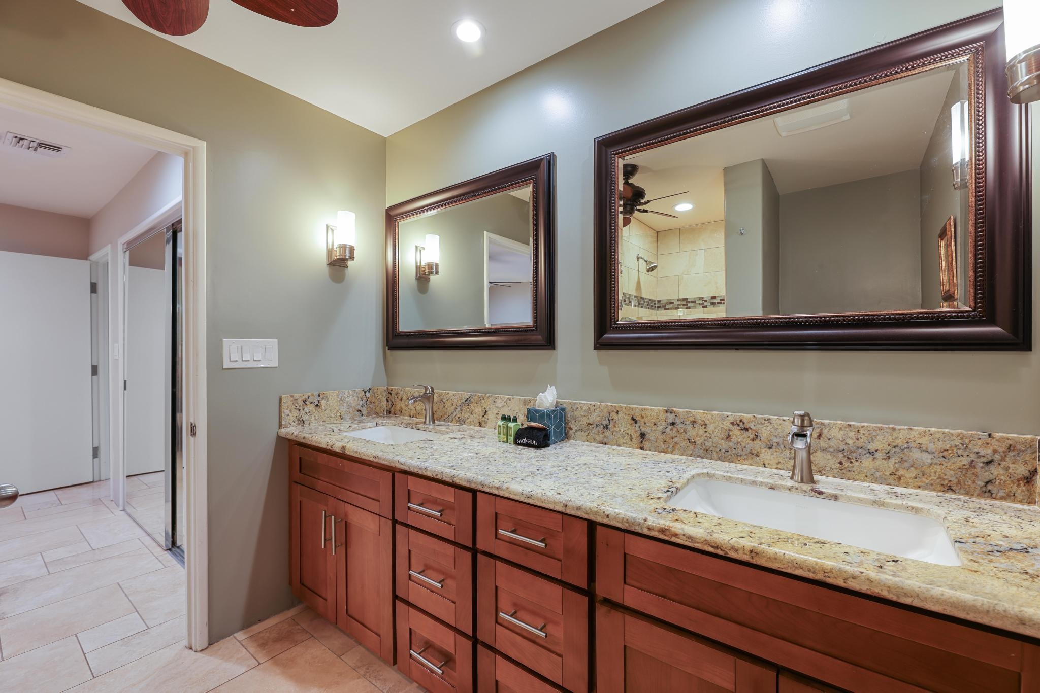 Kaanapali Royal L-201 - Located in the heart of the Kaanapali Resort on West Maui, this delightful two-bedroom, two-bath single-level condominium offers comfort, convenience, and a prime resort lifestyle. The unit features tiled flooring throughout, exquisite granite countertops, stainless steel appliances, and updated cabinetry with glass display shelving. Large patio doors fill the living space with natural light and open to an extended lanai with pleasant ocean-facing views. The primary bathroom is well appointed with double-sink vanities and walk-in showers accented by custom layered tilework. A full-size washer and dryer add everyday convenience. Situated on the second floor, the unit offers direct access to the parking area without the need to go up or down stairs. The property is set along the 16th hole of the Kaanapali Royal Golf Course and includes a gated entrance, swimming pool, clubhouse, barbecue areas, and tennis courts. Just a short distance to world-famous Kaanapali Beach and Whalers Village shopping and dining, this is one of the most desirable locations in Kaanapali. Ideal for full-time living or a part-time residence. Currently approved for vacation rentals, subject to potential future changes under Bill 9.