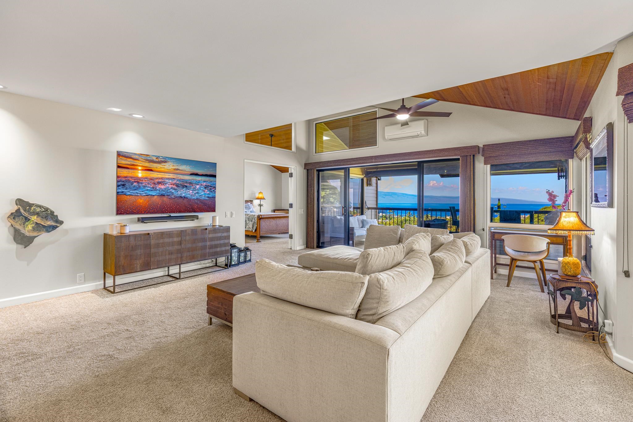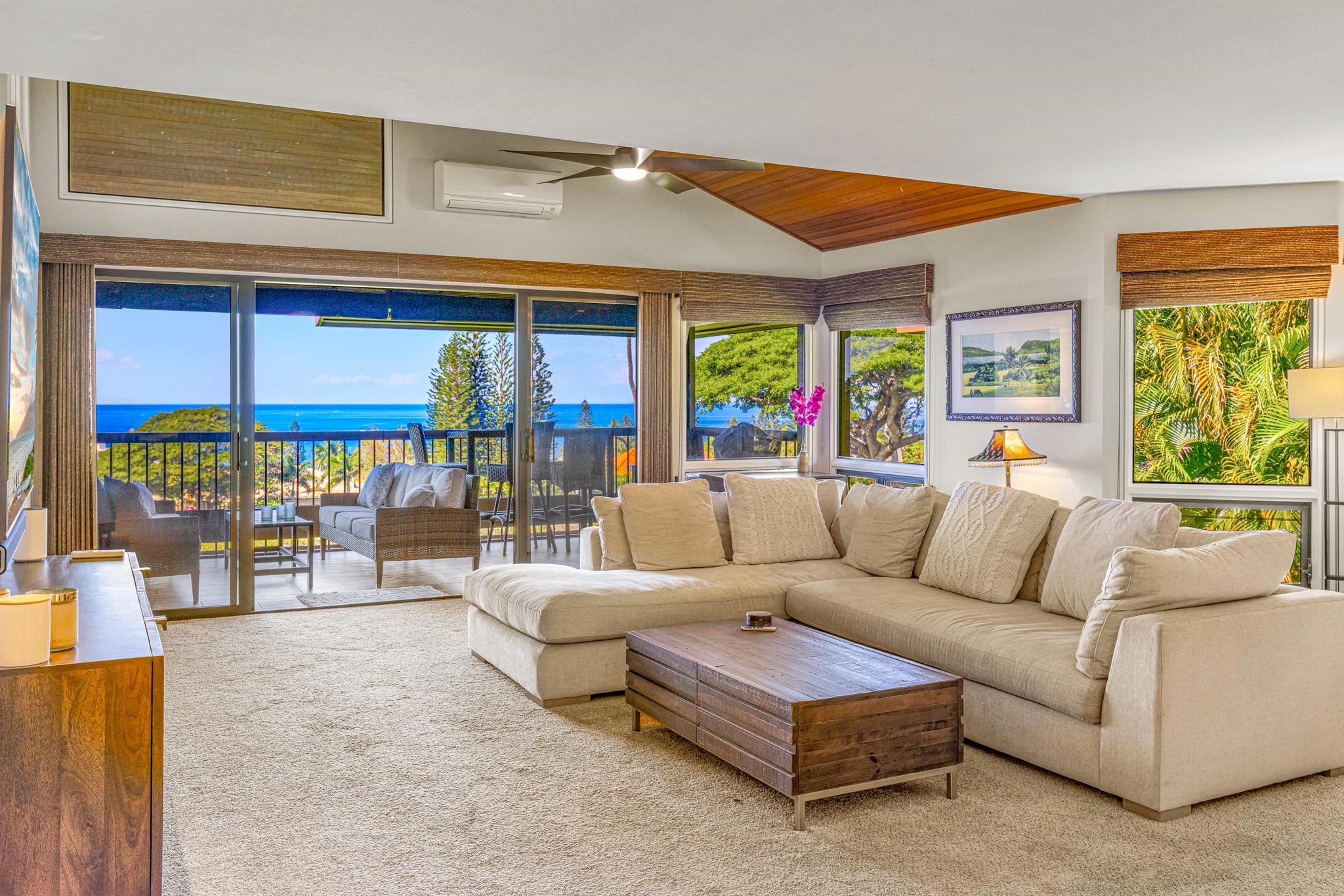 Welcome to The Masters at Kaanapali, one of West Maui’s most cherished communities, renowned for its sweeping ocean views, lush tropical landscaping, and tranquil, low-density setting. Enjoy sparkling pools and tennis/pickleball courts, or visit the orchard stand or herbal garden all immersed in Maui’s natural beauty. Perched on the upper corner Unit 2902 embodies the essence of island living. Vaulted ceilings and skylights flood the home with natural light, creating an airy, uplifting atmosphere throughout. Thoughtfully and beautifully updated in 2020, the residence blends modern design with effortless comfort. The open-concept layout features a spacious kitchen with ocean views, a luxurious primary suite, and an expanded walk-in closet complemented by a skylit bathroom. Step onto the lanai and take in a breathtaking 180-degree panorama stretching across the Kaanapali Golf Course, the Pacific Ocean, and the neighboring islands of Molokai and Lanai. Here, sunsets and rainbows are more than a view – they are a daily experience. Peaceful, elegant, and surrounded by nature, this is Maui living at its finest.