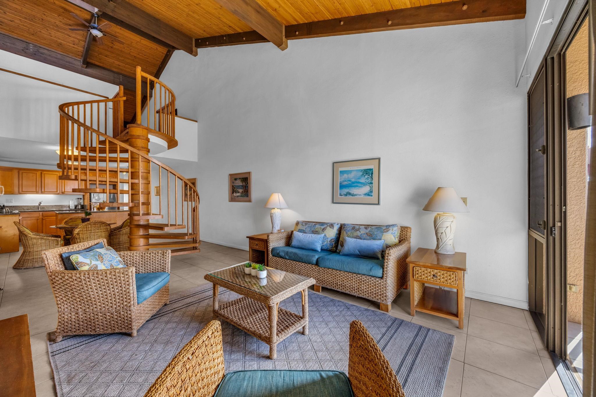 Enjoy island living at Kamaole Sands Unit 3-403, a top-floor 2-bedroom, 2-bath condo offering approximately 1,188 sq. ft. of living space. Located in the desirable Building 3, this unit features a nice ocean view along with beautiful views of the pool and lush tropical grounds from the private lanai-perfect for relaxing and enjoying the island atmosphere. The spacious floor plan provides comfort and flexibility, whether as a full-time residence, second home, or vacation getaway. Kamaole Sands is a popular resort-style community situated across from Kamaole Beach Park III and offers a large swimming pool, hot tubs, tennis courts, exercise room, BBQ area, and beautifully landscaped grounds, all just minutes from Kihei's beaches, shopping, and dining.