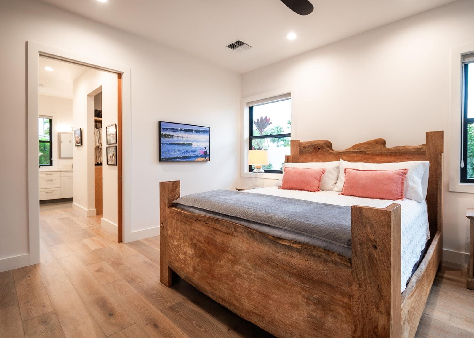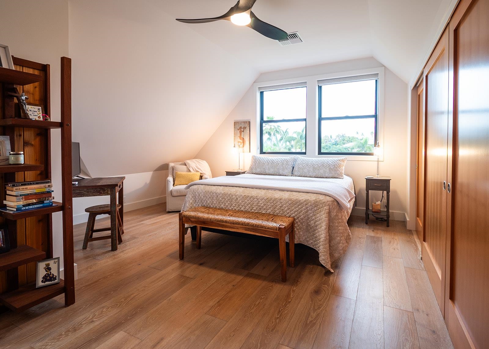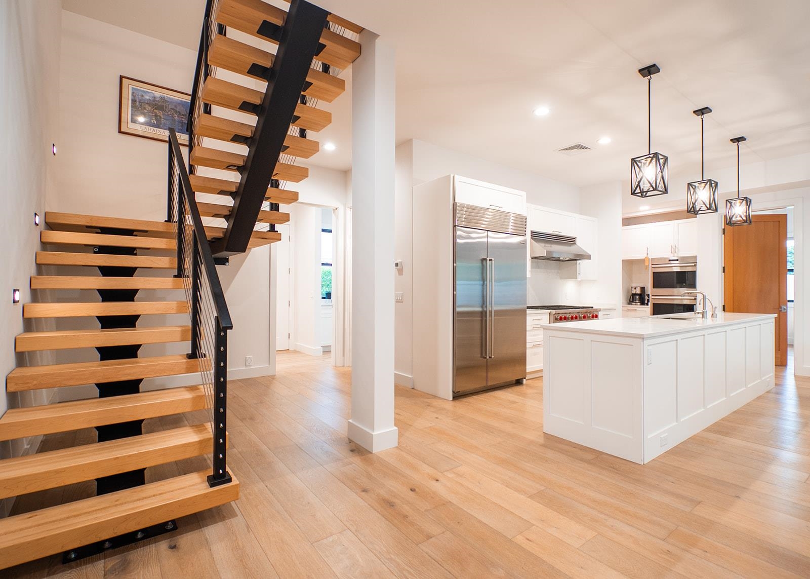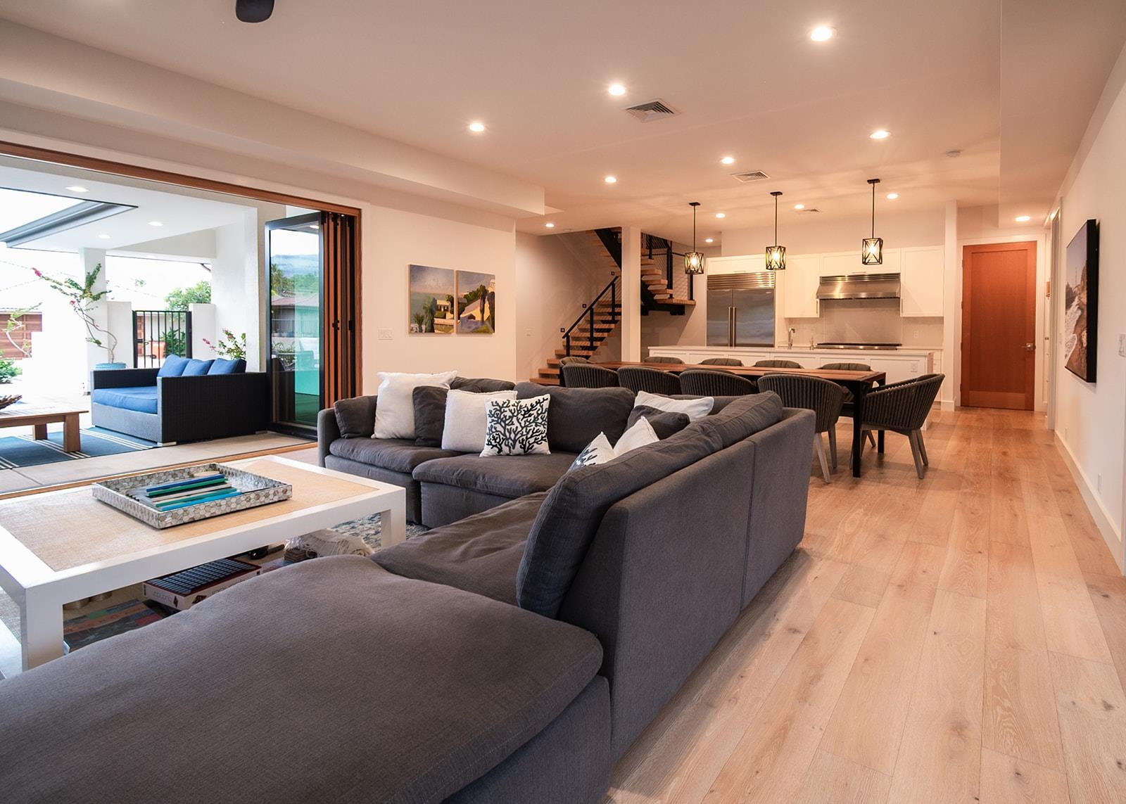 Welcome to 132 Ho'olapa, a spectacular custom-built showpiece in arguably Kihei's most sought-after neighborhood. Designed for both comfort and effortless gathering, this 4-bedroom, 3.5-bath home offers a highly desirable layout with the primary suite on the main level and seamless indoor/outdoor living at its finest. Located on one of Kihei's quietest streets, Ho'olapa delivers a level of calm and privacy that's hard to find. And with the close proximity to Keawakapu Beach around the corner, this is the kind of location buyers wait for-peaceful, prime, and perfectly positioned. Step into the expansive great room where dramatic 16-foot Andersen bi-fold doors open wide to your poolside retreat-featuring a statement-size 8'x8' hot tub, perfect for lounging, dining, and embracing the Maui lifestyle. Just steps from the pool, a built-in Valoriani professional grade, Italian pizza oven, fired by kiawe wood, creates an unforgettable setting for hosting friends and enjoying evenings under the stars. Inside, every detail is elevated with luxury finishes including Wolf & Sub-Zero appliances, custom cabinetry with soft-close doors and drawers, and stunning quartz countertops. Engineered wood flooring flows throughout, while a beautiful floating staircase leads upstairs to three spacious bedrooms, offering plenty of room for everyone. Additional highlights include multi-zone A/C for custom comfort, plus owned photovoltaic solar with Tesla batteries for energy efficiency and peace of mind. Call your favorite REALTOR® to schedule a private showing today.