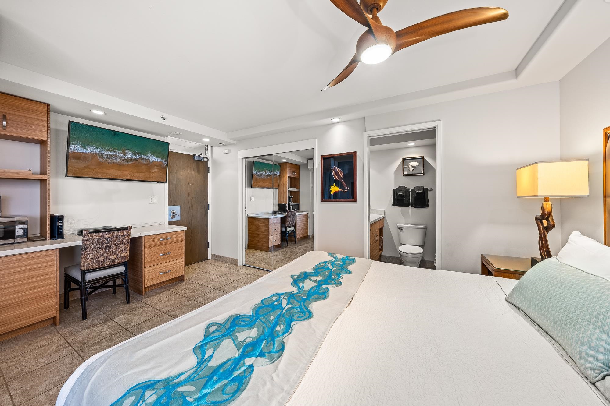 Enjoy spectacular Ocean, Molokini, Kahoolawe, and Upcountry views from this beautifully renovated two-bedroom, two-bath, HOTEL ZONED, Mana Kai unit #707, overlooking Keawakapu Beach -- arguably the best beach on Maui! This is an OPPORTUNITY -- the Seller has decided to make available TWO ADJACENT 7TH FLOOR UNITS (#s 706 and 707) ON THE OCEAN HALF OF THE BUILDING!! Watch the whales during whale season from your living area, BOTH bedrooms, kitchen, and spacious lanai! The unit was completely renovated in 2017, which included new tile flooring, cabinetry, countertops, ceilings, fans, appliances, showers, furnishings, split-system A/Cs in both the A and the B unit, and more! The positioning of this building, out on the point and well-away from the road, provides amazing ocean views without road noise! The white sandy beach also serves as a picturesque path along the ocean and past the Wailea beachfront hotels, restaurants, and shopping. Once you arrive at the Mana Kai, you never need to leave, as there are many onsite amenities including 808 General Store, an inviting beachfront pool, kayak rentals, a beautiful gym, and a business center. The Mana Kai is truly a special place.