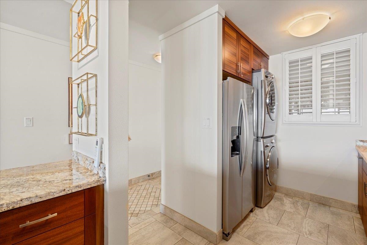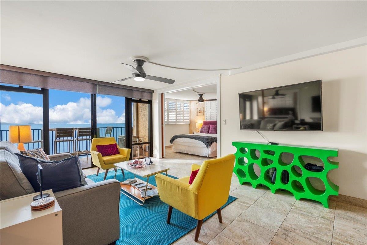 Oceanfront living at its finest, with endless sparkling ocean vistas. Experience the pinnacle of oceanfront living in this exquisitely remodeled beachfront sanctuary. Kanai A Nalu #317 is a rare third-floor corner villa that offers a breathtaking, 180-degree unobstructed panoramic view of the Pacific Ocean, Maalaea Bay, and the majestic Haleakala volcano. This 2-bedroom, 2-bathroom residence has undergone a comprehensive high-end renovation, featuring custom cabinetry, elegant granite countertops, premium stainless steel appliances, and stylish tile flooring throughout. The open-concept living area is enhanced by special custom-installed windows and a Fleetwood screen door system, designed to maximize natural light and capture the soothing tropical tradewinds. The thoughtful design extends to the private master suite, which boasts rare side windows providing dual-aspect ocean views–a luxury unique to this corner location. Both bathrooms are meticulously appointed with modern finishes and walk-in showers, while the convenience of an in-unit, full-size washer and dryer adds to the home's functionality. Beyond the interior, the resort-style grounds offer a solar-heated beachfront pool, manicured tropical gardens, and a community BBQ area perfect for al fresco dining. Ideally situated in the peaceful Maalaea village, you are just steps away from the soft sands of Sugar Beach and within easy walking distance of the Maalaea Harbor, the Maui Ocean Center, and local dining. Whether you are watching humpback whales from your private lanai or enjoying the central location for island-wide exploration, this turnkey leasehold property embodies the ultimate Maui lifestyle. This is a Leasehold property that expires in 2066.
