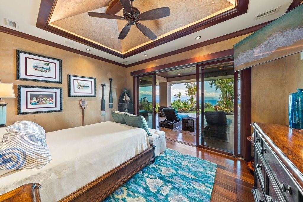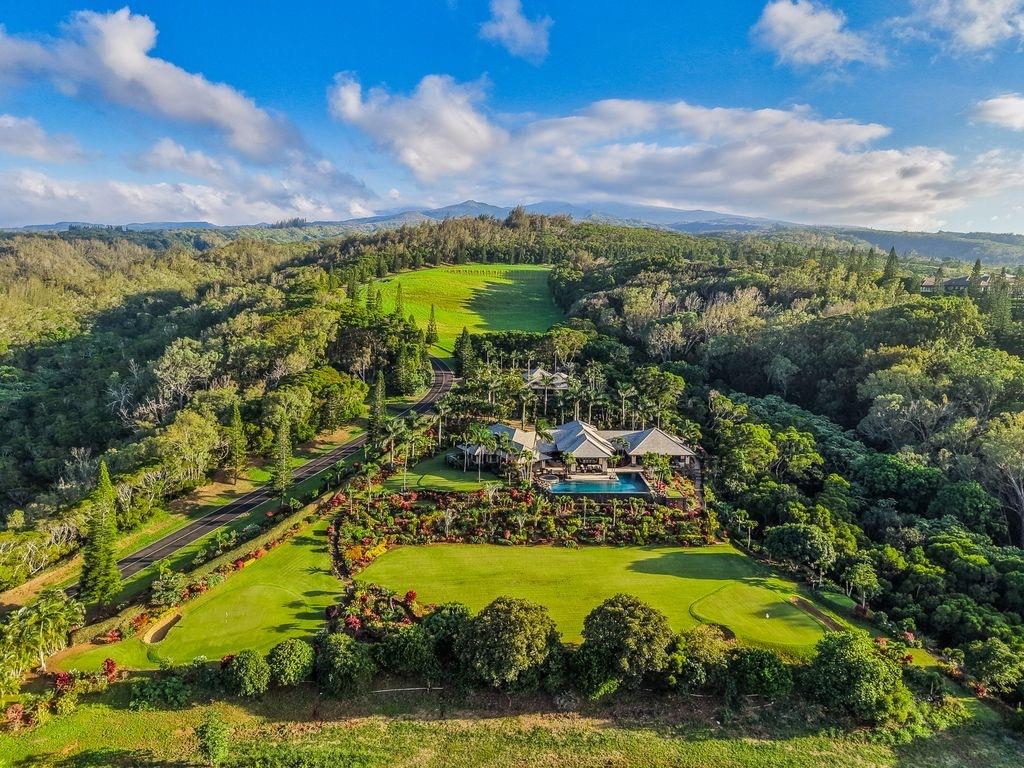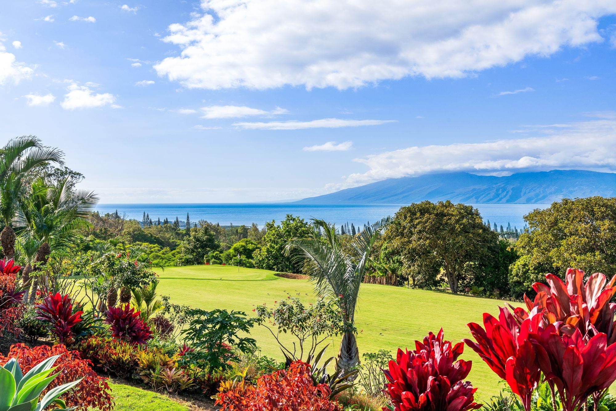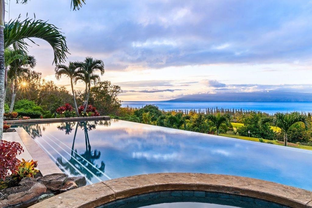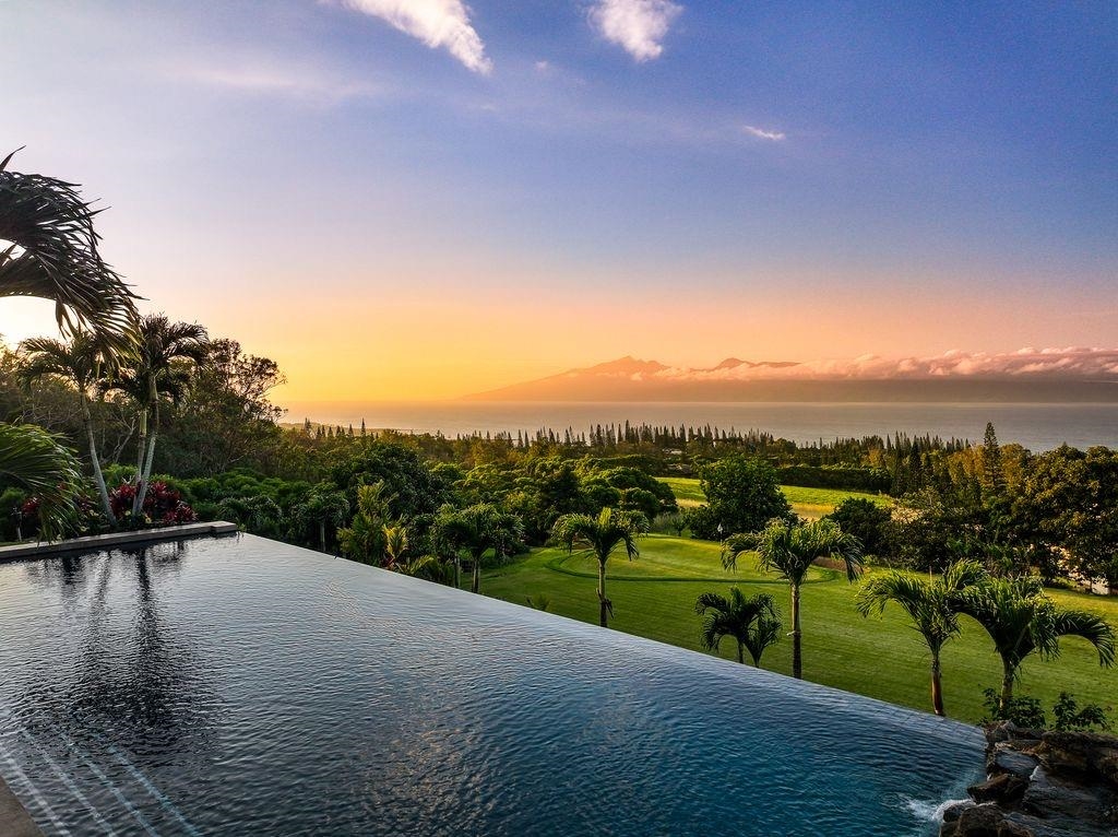 A rare offering in Kapalua’s coveted Honolua Ridge, this private estate commands sweeping ocean vistas with Moloka'i island as a breathtaking backdrop, complemented by views across the renowned Kapalua Golf Courses. A sculptural Wyland piece welcomes you at the entry, setting the tone for a residence defined by artistry, scale, and thoughtful design. Perched above West Maui’s coastline on a generous, gently sloping lot, the home is designed to embrace Maui’s signature indoor-outdoor lifestyle, with expansive living spaces flowing seamlessly to multiple covered and uncovered lanais, a resort-style pool, and lush tropical gardens.The main residence features a chef’s kitchen complemented by an additional prep kitchen, ideal for refined daily living and elevated entertaining. Rich acacia wood floors, custom wood detailing, and carefully selected finishes reflect a commitment to craftsmanship and timeless island elegance throughout. A detached 2-bedroom, 2-bath ohana offers exceptional versatility for hosting guests, extended family, or creating a private retreat. From golden sunsets and panoramic sea views to the serenity of surrounding golf and coastal landscapes, this fee-simple estate delivers privacy, space, and enduring sophistication in one of West Maui’s most prestigious enclaves.