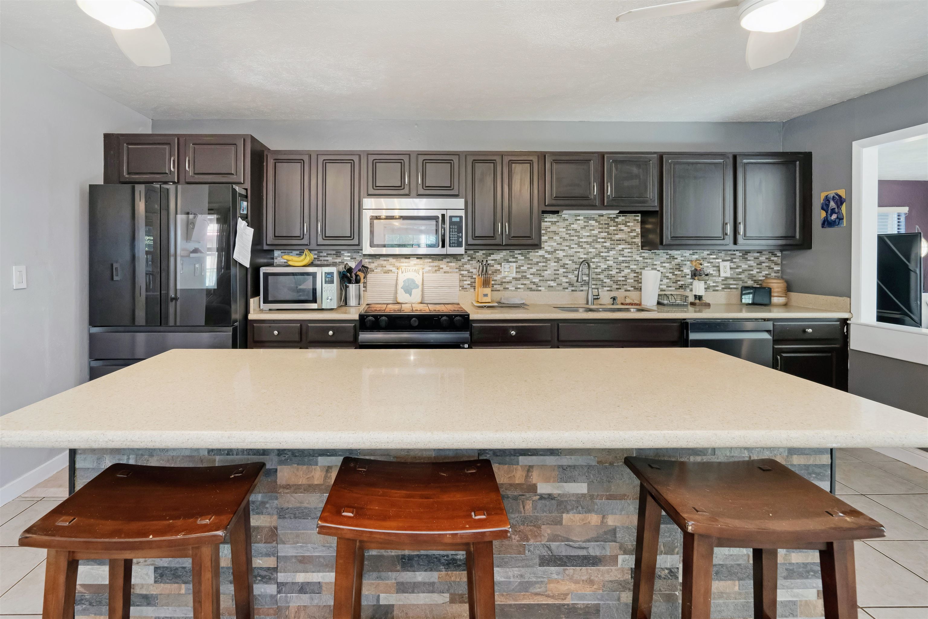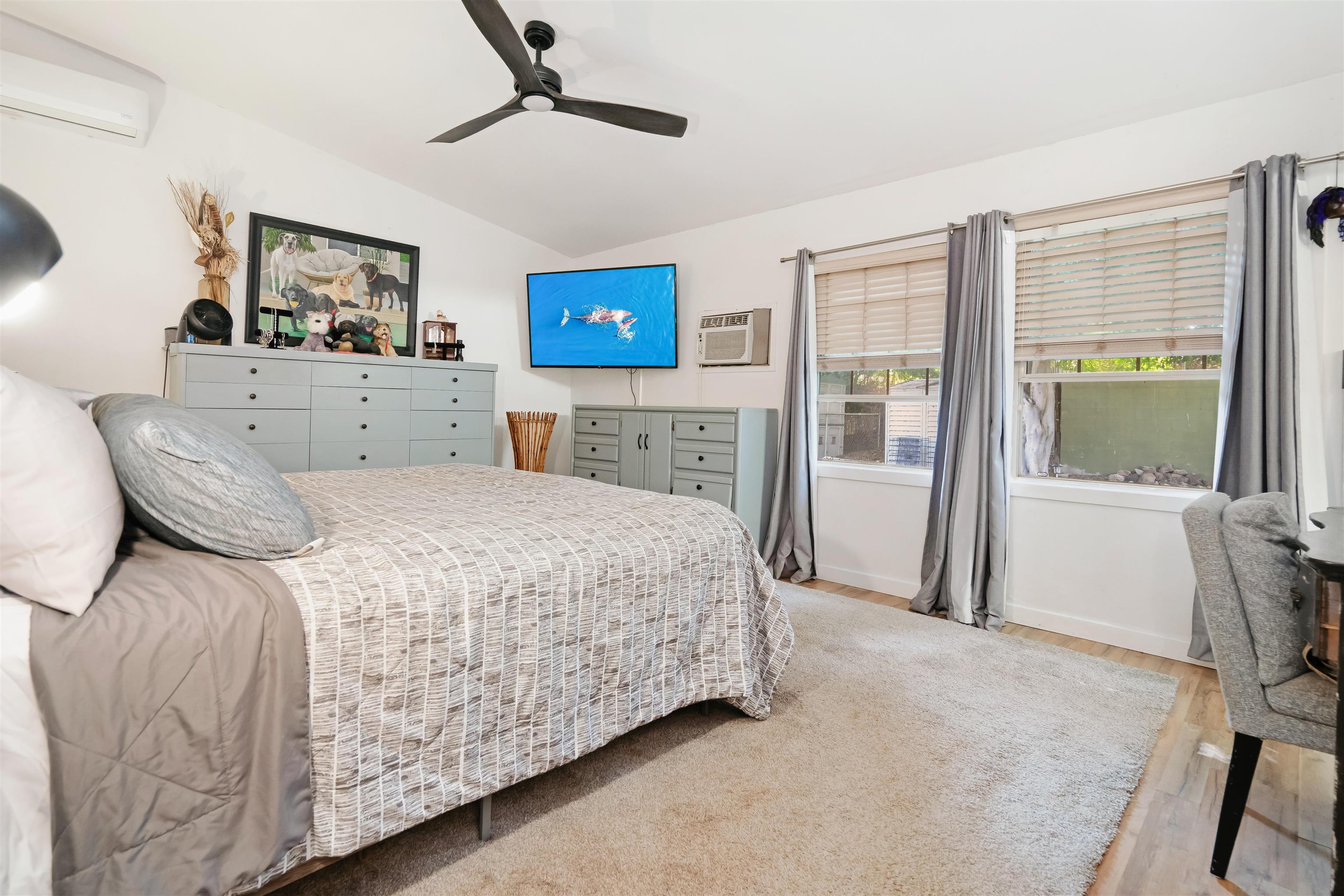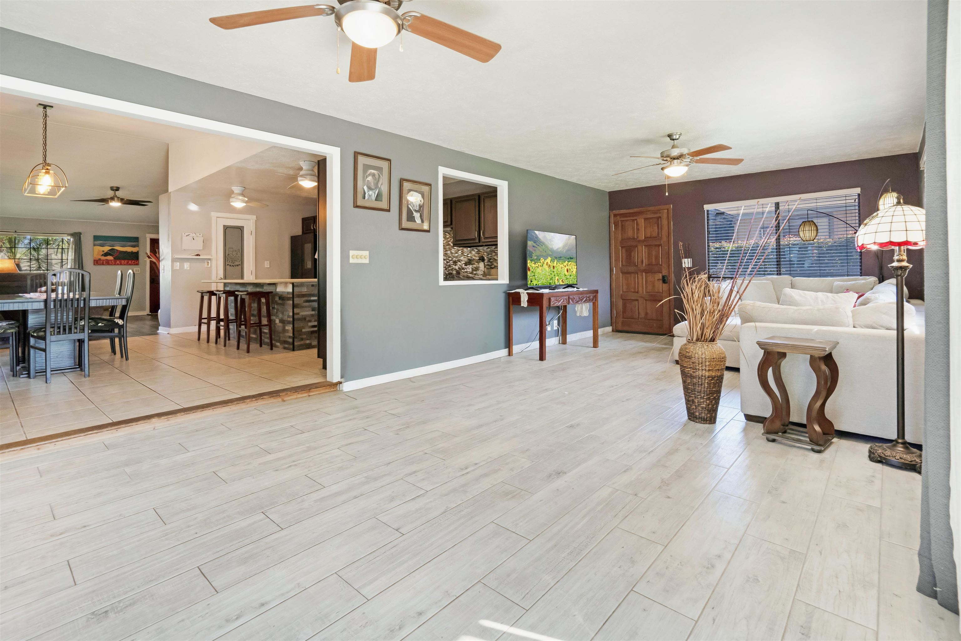 This spacious and beautifully updated single-level home features 4 bedrooms, 2 baths, plus a huge family room with a separate entrance–offering endless possibilities for extended living, a home office, or guest suite. The open layout boasts vaulted ceilings and a large kitchen that flows seamlessly into the dining and living areas. Recent upgrades include remodeled kitchen and bathrooms, updated flooring, a new split A/C system for the main living area, and all-new appliances, including a stove, internet-linked refrigerator, dishwasher, washer and dryer, and hot water heater. The home sits on a quiet, lightly traveled cul-de-sac with a fully fenced yard, mature banana and nectarine trees, and ample storage. Enjoy a generous 528 sq. ft. two-car garage and a spacious primary suite with its own new split A/C system and a walk-in shower. Conveniently located near central Kihei, close to Kalama Park, shops, and restaurants. Only about 20 minutes to OGG Airport, making travel quick and easy. Move-in ready and full of potential–this South Kihei gem is a must-see! No HOA!