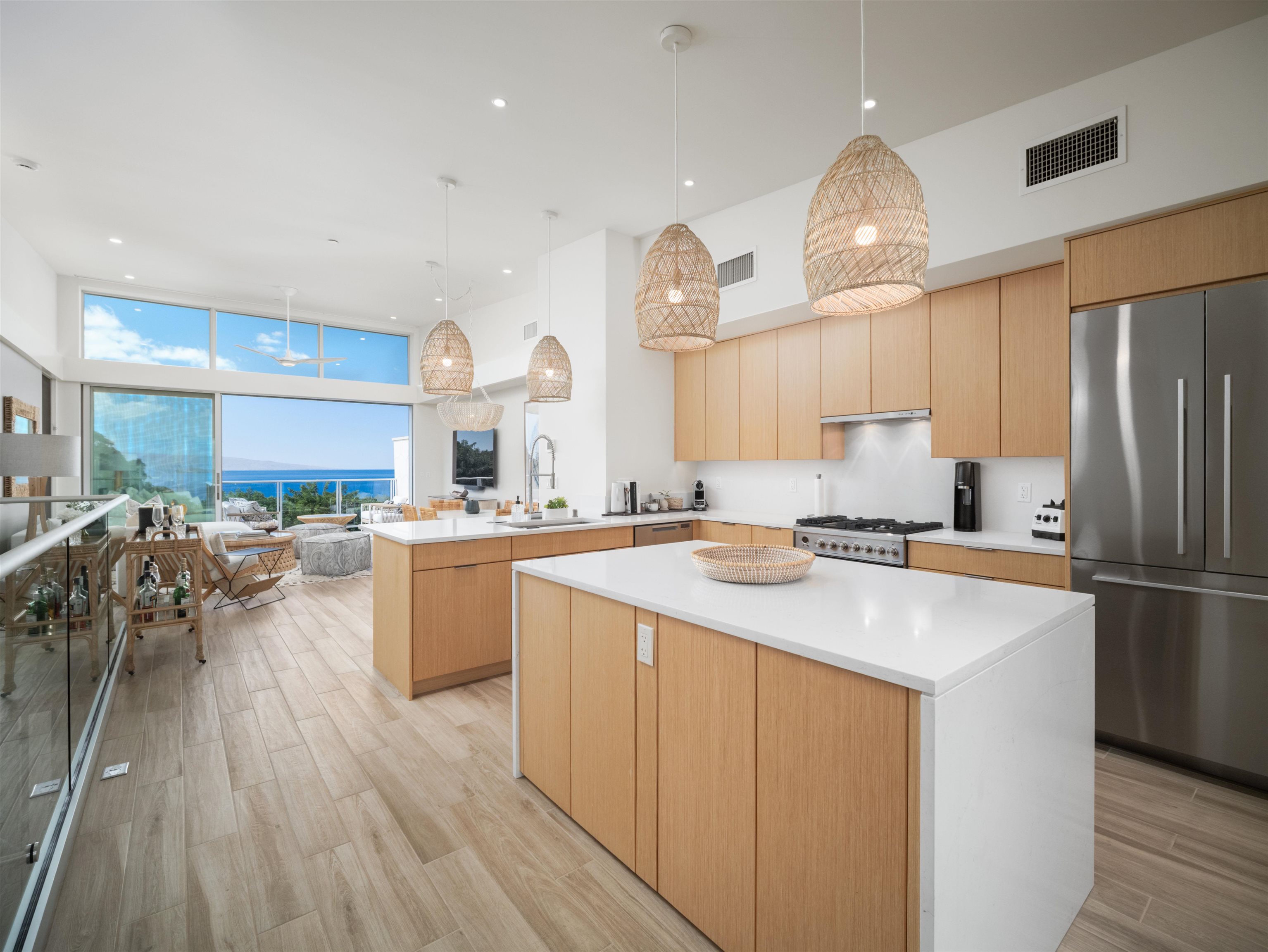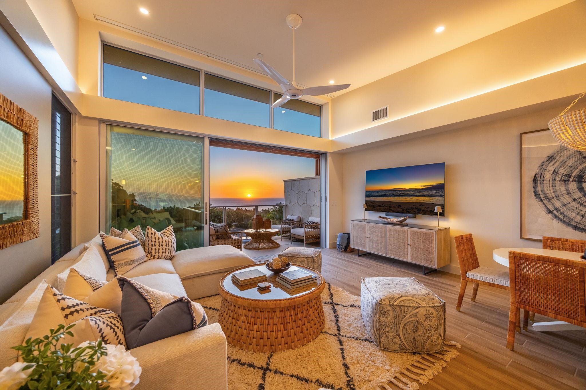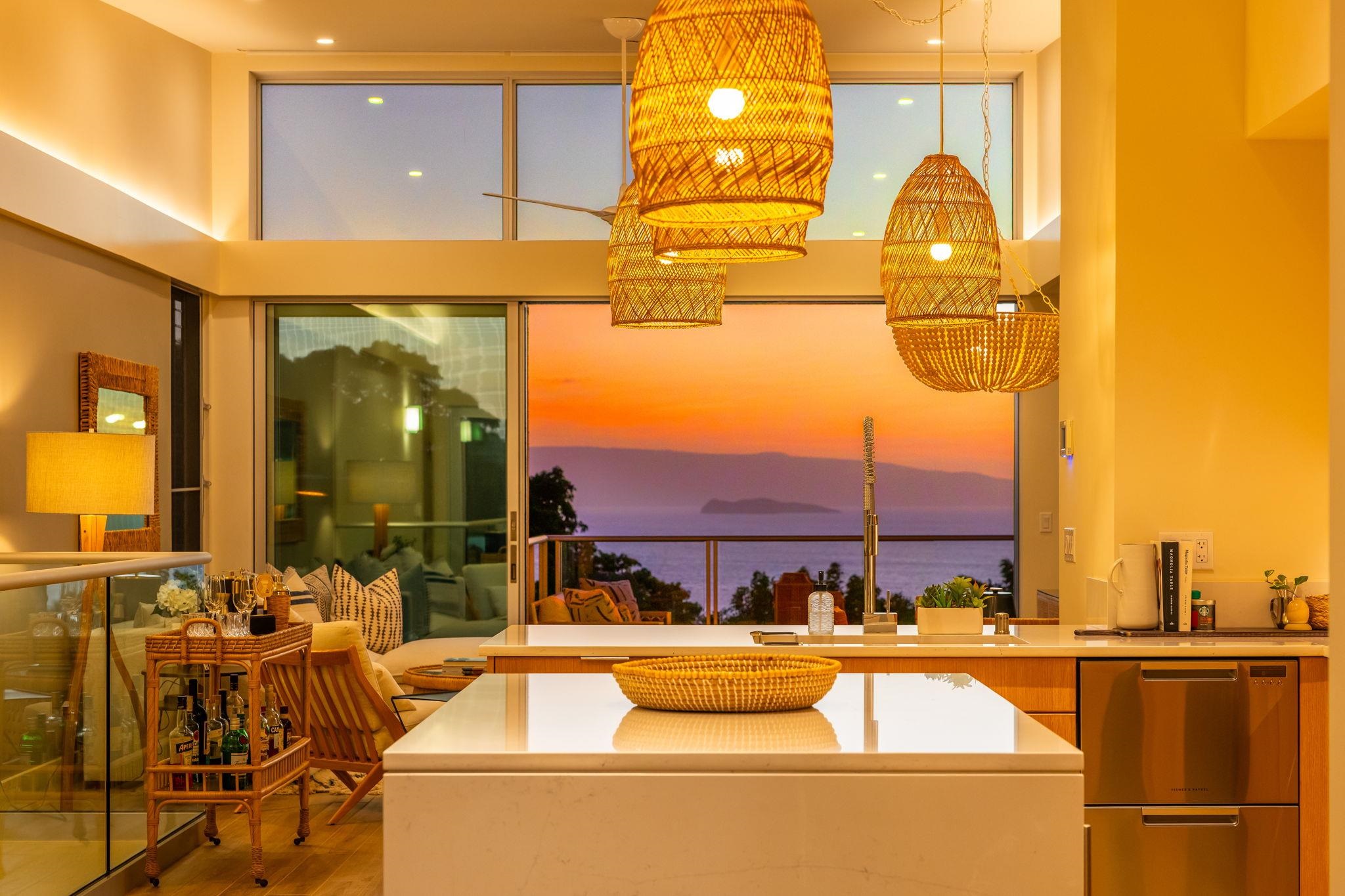 Makalii at Wailea 17B is a standout villa commanding the premier ocean-view position in the entire development, offering unobstructed, sweeping vistas of the Pacific, Molokini, and Kahoolawe. Elevated and ideally oriented, this residence captures Maui’s most iconic sunsets and seasonal whale activity from the comfort of home. Equally impressive is the interior, where impeccably curated, fashion-forward décor elevates the living experience. Clean lines, layered textures, and a sophisticated neutral palette create a modern island aesthetic that captures quintessential luxury island living. The open-concept living space offers abundant natural light, with expansive glass doors framing the ocean and extending living areas onto generous lanais for seamless indoor-outdoor flow. This three bed, three bath “Casita” floor plan is the largest available at just over 1800sf with garage and lower-level primary suite for maximum privacy. Set within the coveted, low-density Makalii at Wailea community, 17B offers privacy, architectural distinction, and resort-style living with immediate proximity to Wailea’s top beaches, golf, dining, and shopping options. This is a rare opportunity to own the best views in the complex paired with designer-level interiors–a truly turnkey Wailea retreat sold fully furnished!