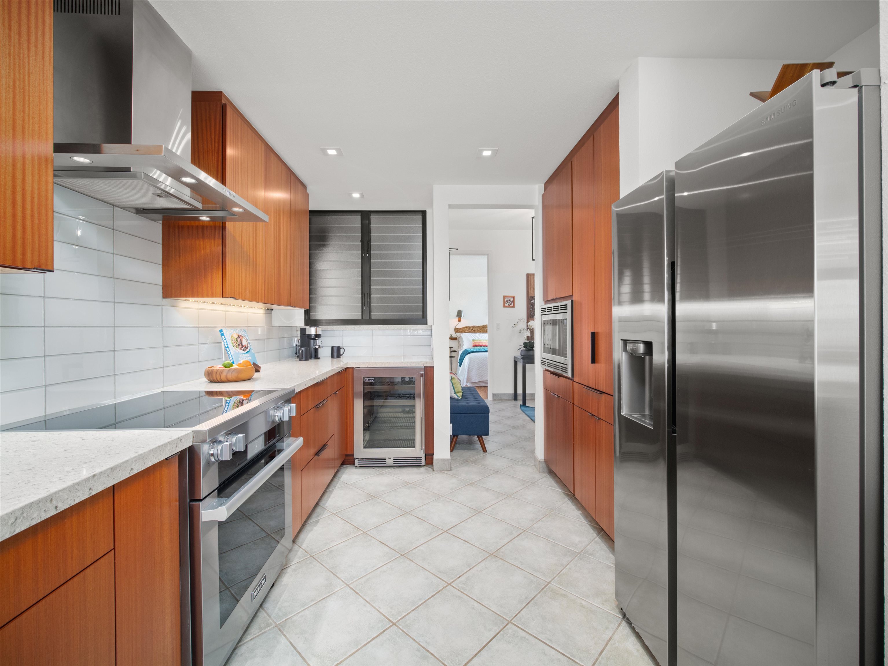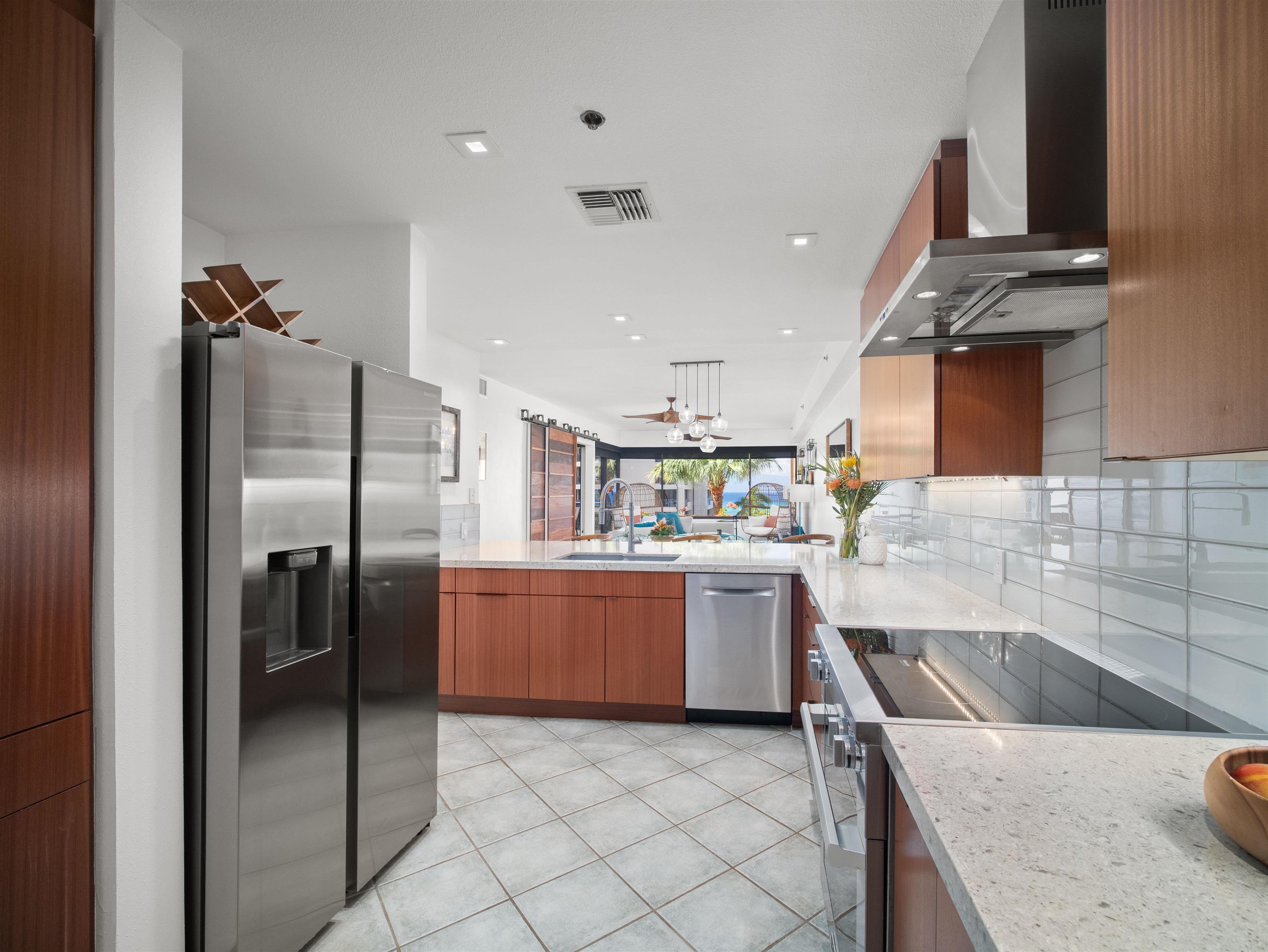 HOTEL ZONED with legalshort-term rental rights! This completely renovated, fully furnished 3-bedroom, 2-bathroom beachfront condo at Sands of Kahana offers the perfect blend of modern luxury West Maui resort living with regulatory certainty. This single-level, corner beachfront condo showcases breathtaking mountain, sunset, island, and ocean views of Lana'i and Moloka'i. Features of the high-end renovationinclude custom Sapele mahogany cabinetry, premium appliances—Miele induction range, Perlick dual-zone beverage center, Thermador microwave, and Bosch dishwasher—and finishes including custom solar shades, Cambria quartz kitchen counters, Mont Blanc quartzite tub surround, granite baths, italian ceramic, and Mercury Mosaic handmade ceramic tiles. Rare 4-ton Lennox Signature central air conditioning system (uncommon in West Maui condos) with smart Google thermostat provides exceptional year-round comfort when paired with silent Haiku fans. Accessibility features include elevator access, no stairs, open floorplan, widened doorways throughout, custom curbless shower with grab bars, and redesigned bathroom layouts for wheelchair accessibility - making this an ideal choice for multi-generational families or guests with mobility considerations. Perfectly situated between world-famous Ka'anapali and Kapalua beaches in the Kahana neighborhood, this turnkey property boasts an excellent 11-year vacation rental track record with strong occupancy and an established branded “Hawaiian Haven” rental business that owners are willing convey as part of the sale. The Sands of Kahana resort features an oceanfront pool, kids water playground, two hot tubs, recreation area, exercise room, putting green, lit tennis, pickleball, and basketball courts, and Captain Jack’s onsite restaurant. This unit includes a large external storage lockerconveniently located on the same floor, in addition to extensive locked owner’s storage in the unit. No requirement to use the front desk, giving flexibility to self-manage or contract with a managementcompany. This is the hotel-zoned Maui investment opportunity discerning and sophisticated buyers are seeking.