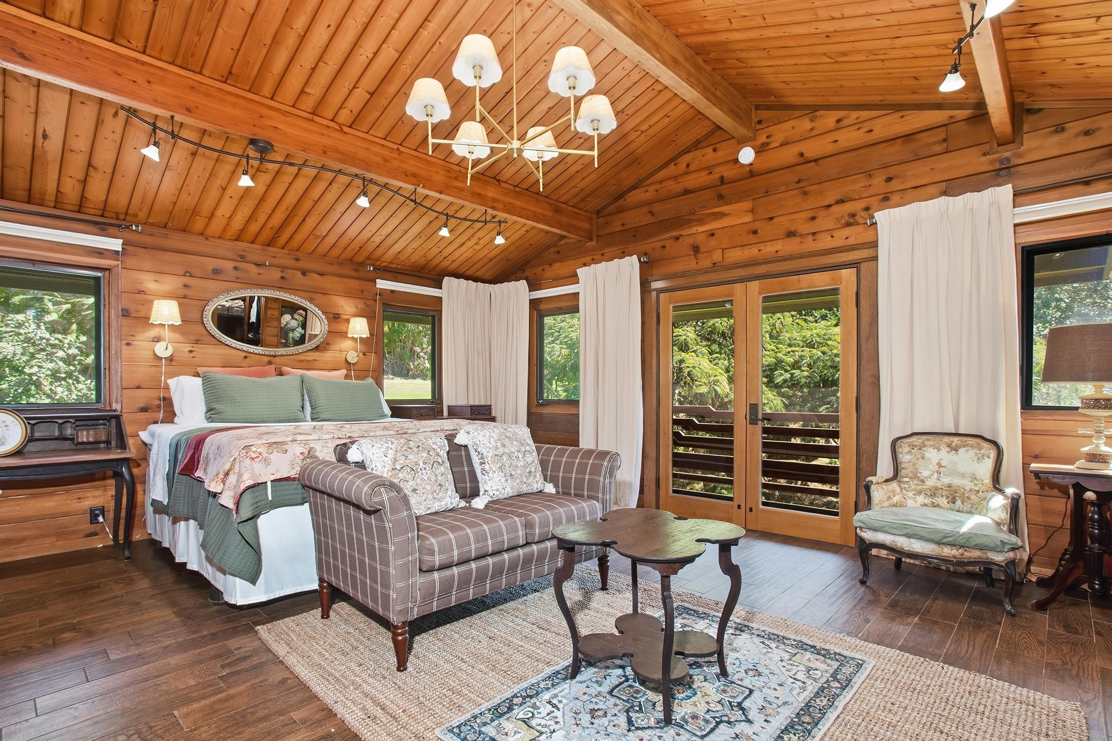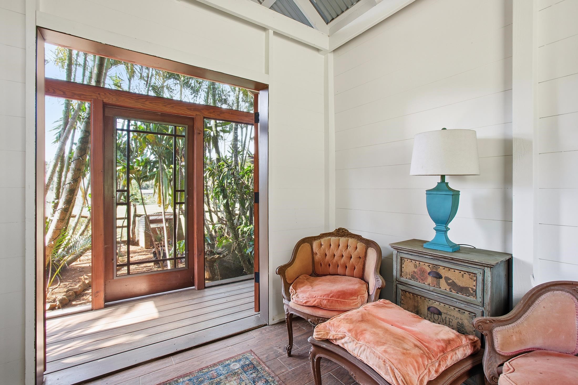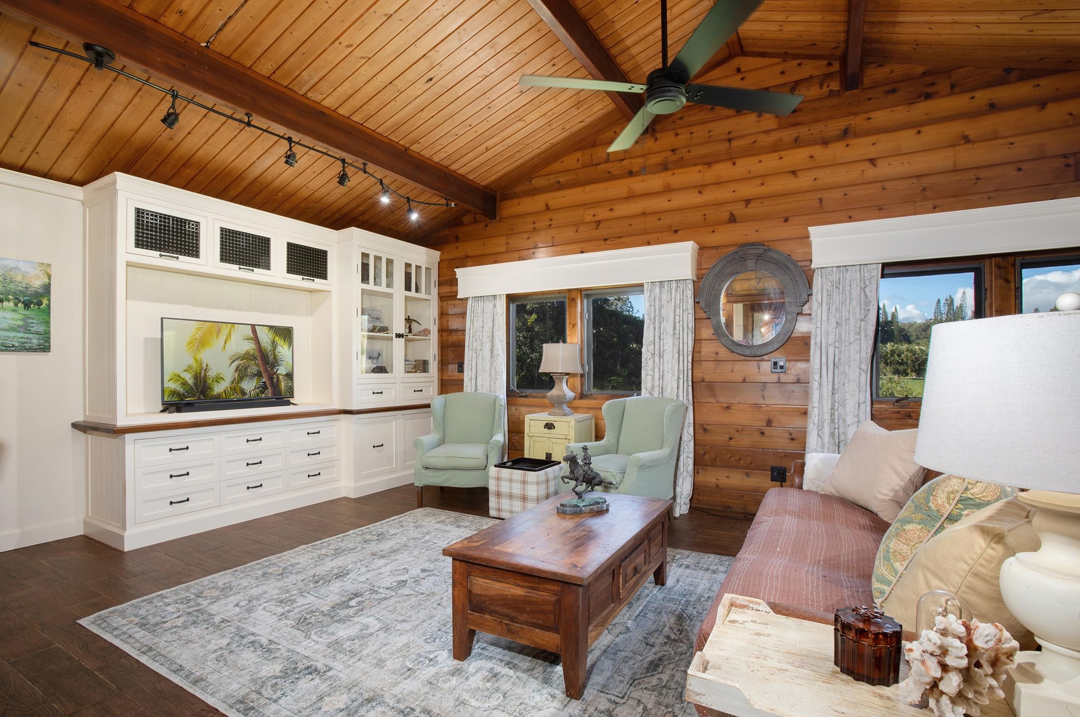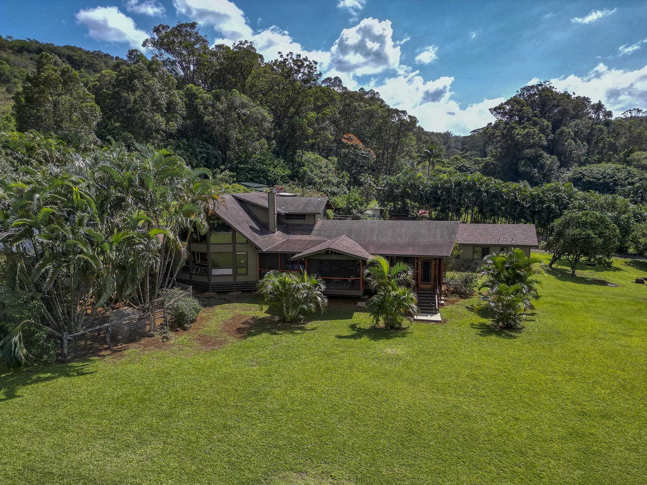 Set on over five private acres in one of Haiku’s most peaceful pockets, this exceptional cedar residence offers a rare blend of craftsmanship and true custom design. The 3-bedroom, 2-bath main home spans approximately 2,430 sq ft and is defined by soaring ceilings, rich natural materials, and an immediate sense of quality. The heart of the home is the chef’s kitchen, dining area, and inviting sitting space, opening to a screened-in lanai overlooking the property. The kitchen features an oversized Wolf range, warming drawers, wine refrigerator, reverse-osmosis water at the bar sink, and thoughtfully designed appliance garages. A great room provides a more formal setting with 20+ ft ceilings. Custom cabinetry and built-ins throughout reflect the work of a master woodworker, including special details such as a custom vanity base crafted from 1830s dining table legs. Privacy is exceptional, with a tall, mature areca palm hedge lining the perimeter. Additional structures include a 2,500 sq ft steel workshop with half bath and separate electric meter, a detached garage used as a 1-bed/1-bath residence, a second detached two-car garage with studio and loft, and a detached office. The established grounds feature a concrete driveway to all structures, fenced garden, fire pit, barn with tack room and chicken coop, and mature fruit trees. An exceptional Haiku offering–properties of this caliber and privacy rarely come to market. Private showings now available.