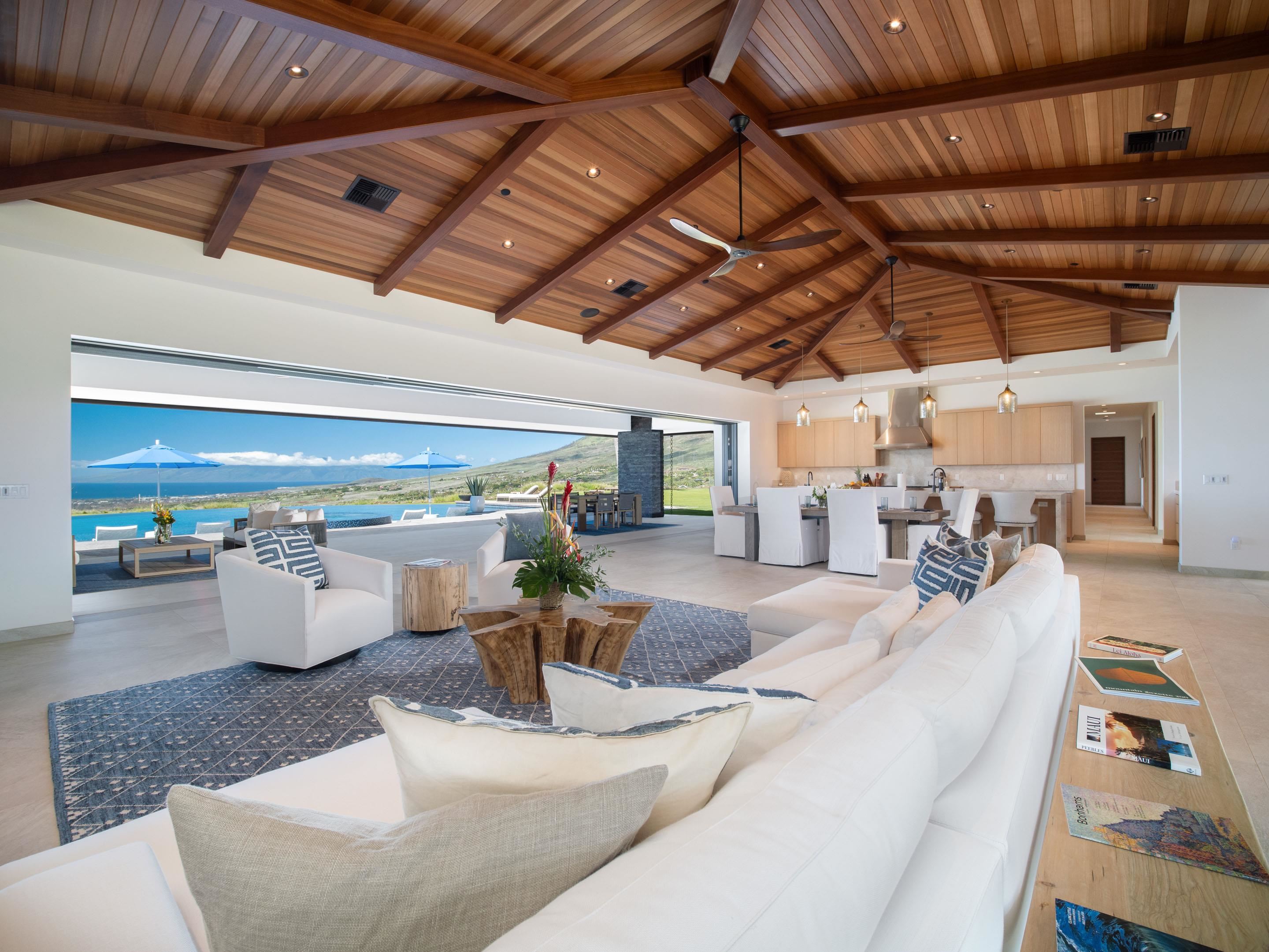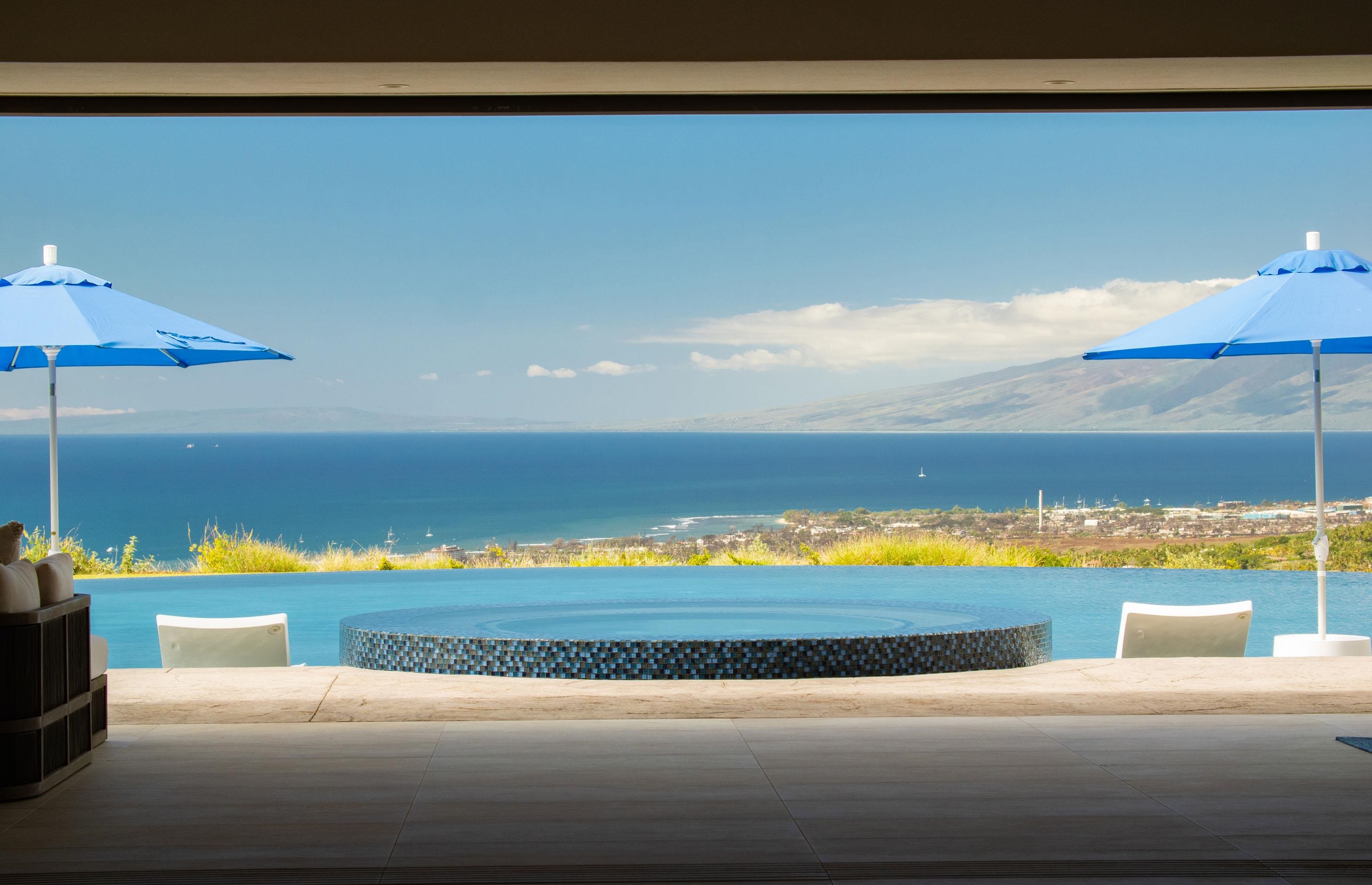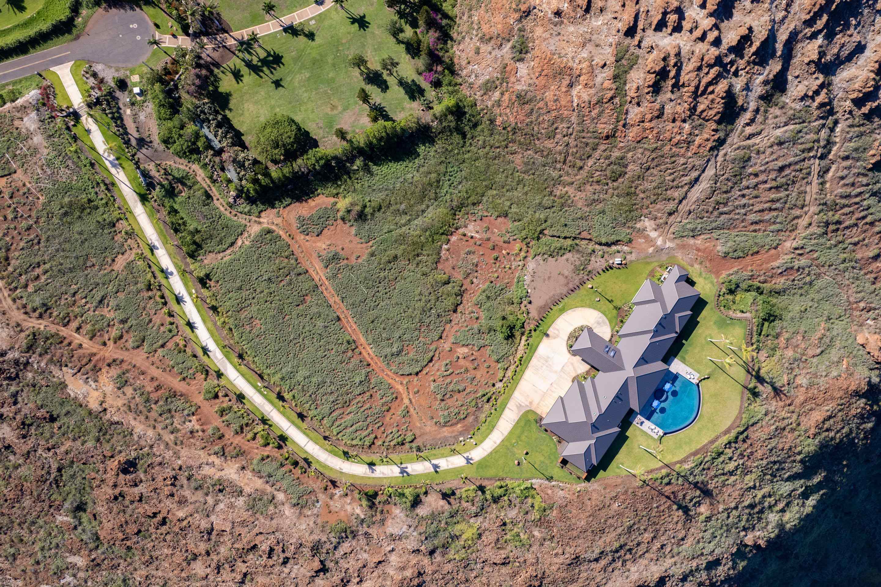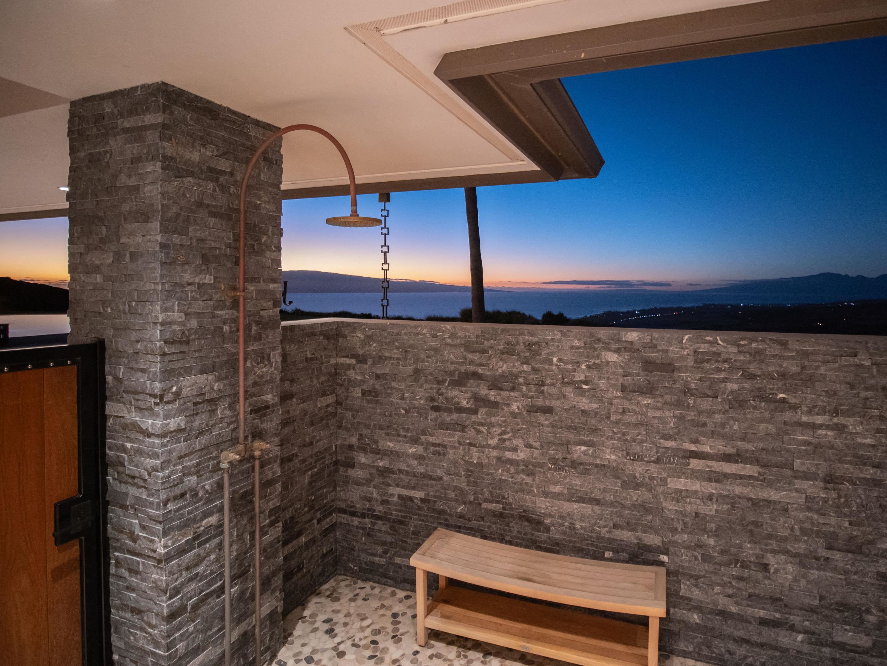 Commanding one of the largest and most remarkable panoramic ocean views anywhere in the Hawaiian Islands, the residence at 426 Wailau occupies a truly iconic location in the uppermost heights of Launiupoko. This 25 + acre, agriculturally-zoned mountain top retreat offers an exclusive Westward perspective of the Auau Channel that spans from Sweetheart Rock on Lanai almost completely to Elephant Rock on Molokai. After driving through the gated entrance you will feel the collective magnitude of the property and anticipate the comforts found inside this ambitious, newly-constructed residence. In the spring of 2023, after 18 months of construction, the renowned Imagine It Builders delivered a modern luxury masterpiece with 6,682 square feet of single-level interior living space designed to occupy two expansive wings as well as a central open living area and kitchen. The North Wing features the primary suite with not one, but two, full en-suite bathrooms, including a steam shower and soaking tub. The North Wing, connected to the 4 car garage, also features a powder room in the hall, a pantry, and laundry room. The South Wing features 4 bedrooms, all with ensuite baths, a fully outfitted gym, and a flexible room for entertaining complete with wet bar. From the living area, massive retractable sliding glass doors open up to almost 2,000 square feet of covered outdoor lanai space with a 70 ft wide pool and 12ft wide hot tub. An outdoor kitchen and bar complement the lanai while all of the bathrooms feature their own private, connected outdoor showers to rinse off when coming back into the home. Every material finish has been thoughtfully designed and impeccably constructed, it isn't hyperbole to say that there are simply too many amazing features to list in a few paragraphs. This is one you will have to see to believe!